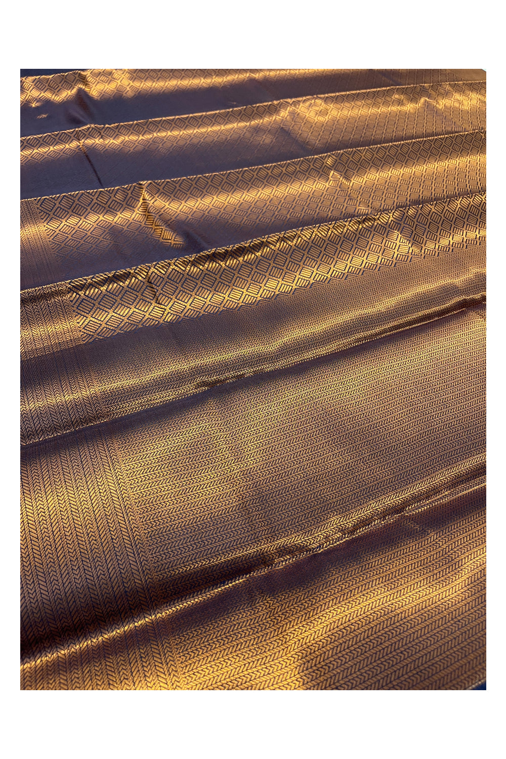 Violet with golden zari blended kanchipuram bridal silk saree crafted with intricate zari work The richly designed brocade blouse with big border adds a touch. Like every kanjivaram saree, this blended kanjivaram silk saree is too designed with heavy silk and the total saree look gives you a perfect traditional appearance for occasions and weddings.
