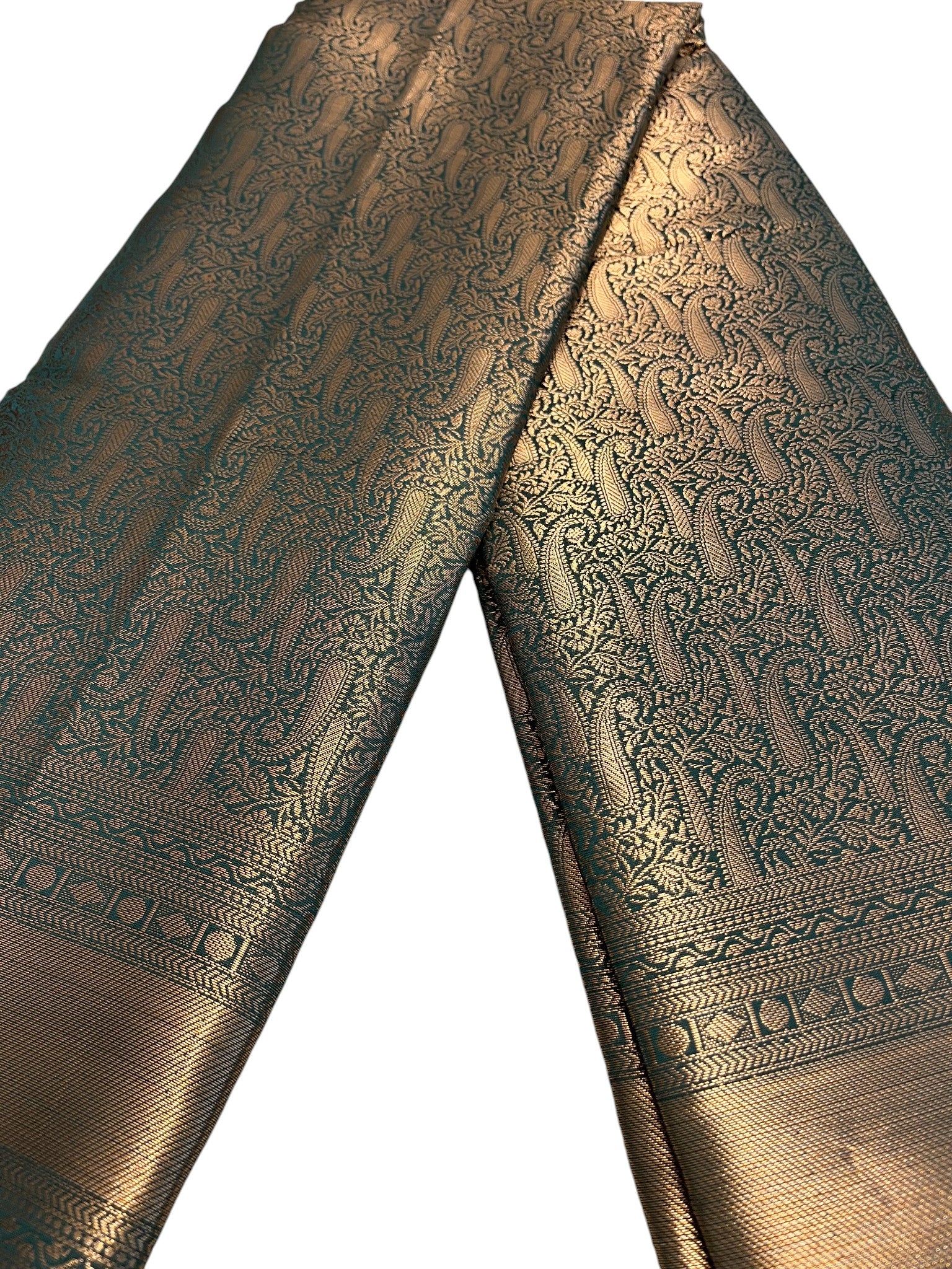 Brown with golden zari blended kanchipuram bridal silk saree crafted with intricate zari work The richly designed brocade blouse with big border adds a touch. Like every kanjivaram saree, this blended kanjivaram silk saree is too designed with heavy silk and the total saree look gives you a perfect traditional appearance for occasions and weddings.