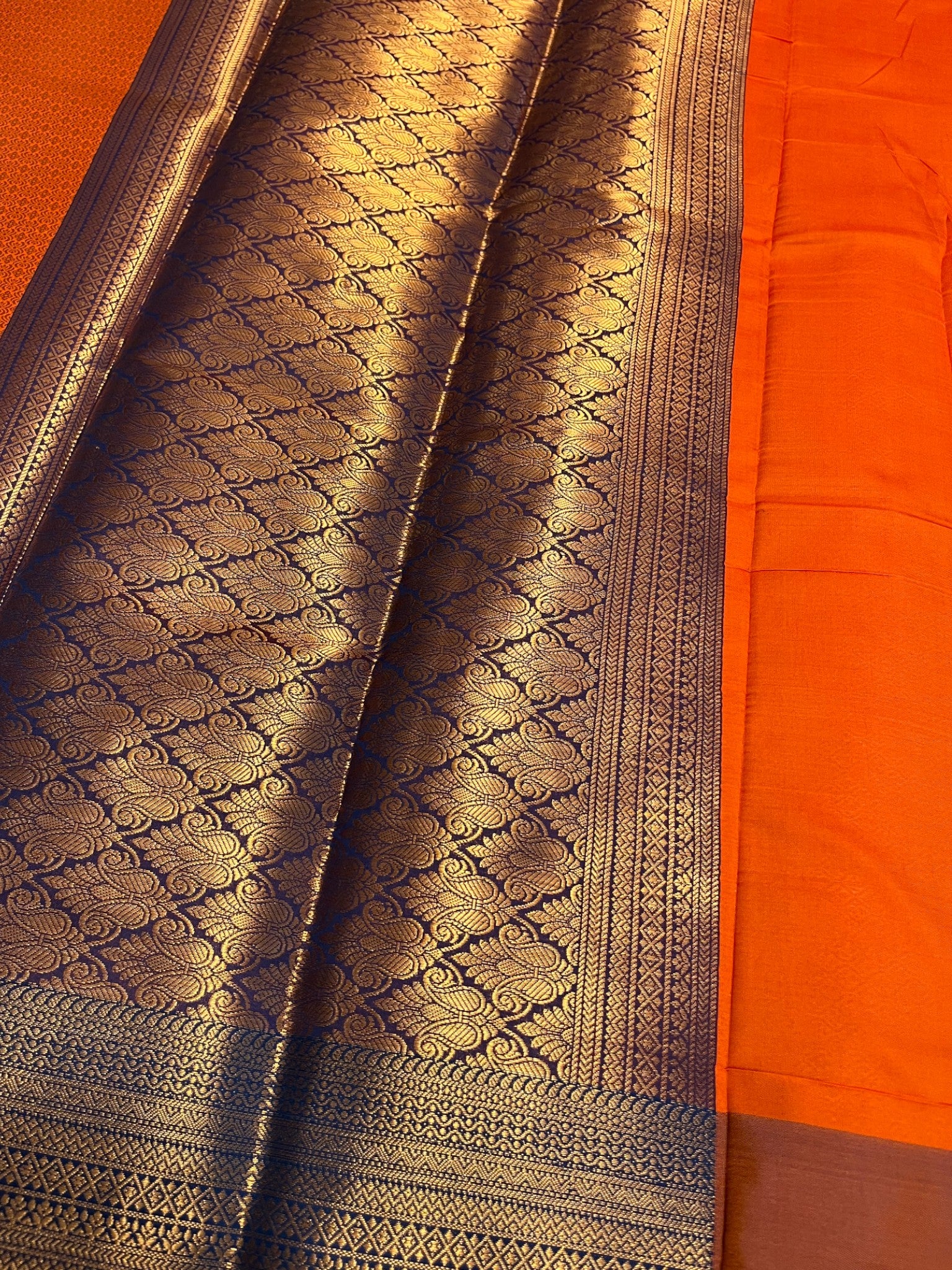 Southloom Premium Semi Silk Zari Work Brocade Saree in Bridal Orange with Matching Pallu