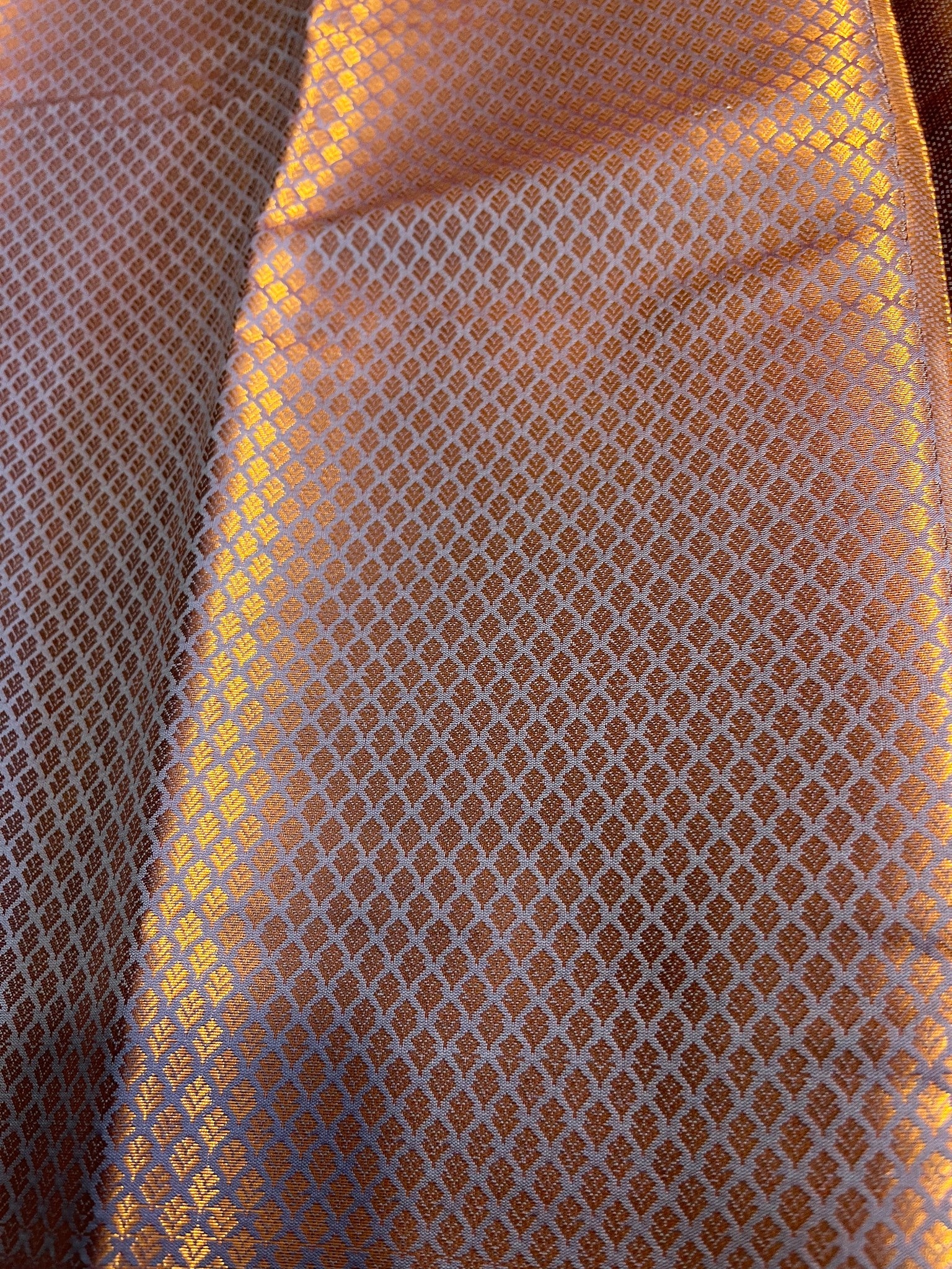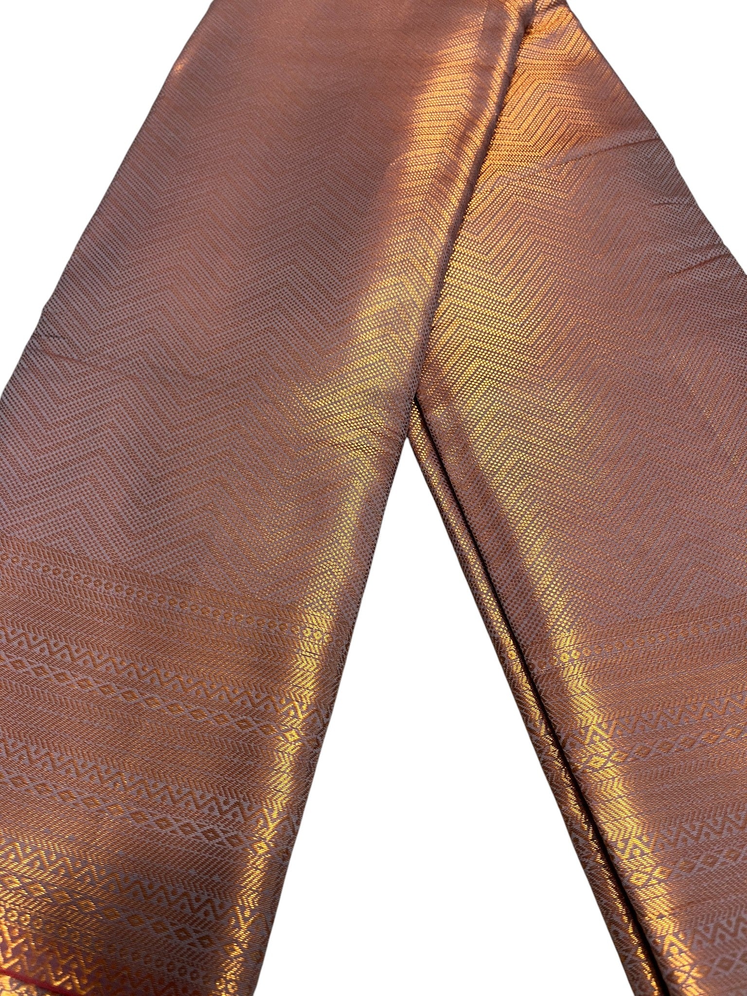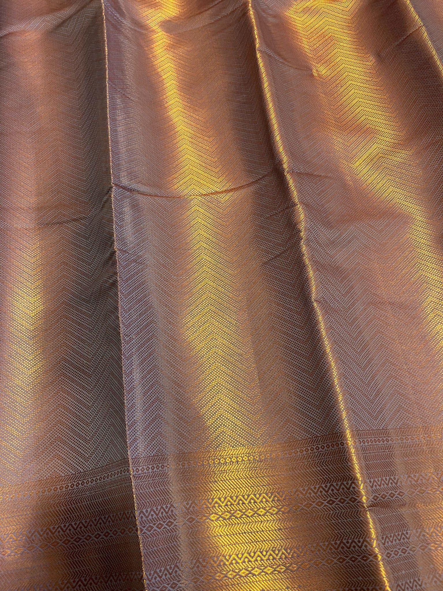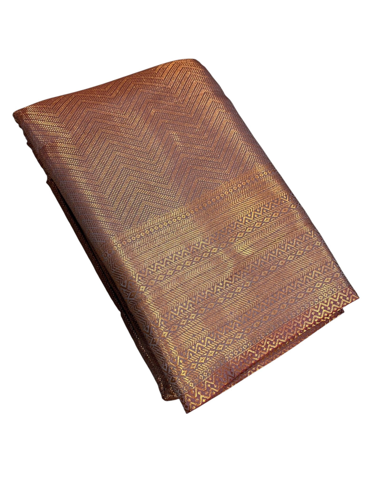 Brown with golden zari blended kanchipuram bridal silk saree crafted with intricate zari work  The richly designed brocade blouse with big border adds a touch. Like every kanjivaram saree, this blended kanjivaram silk saree is too designed with heavy silk and the total saree look gives you a perfect traditional appearance for occasions and weddings.