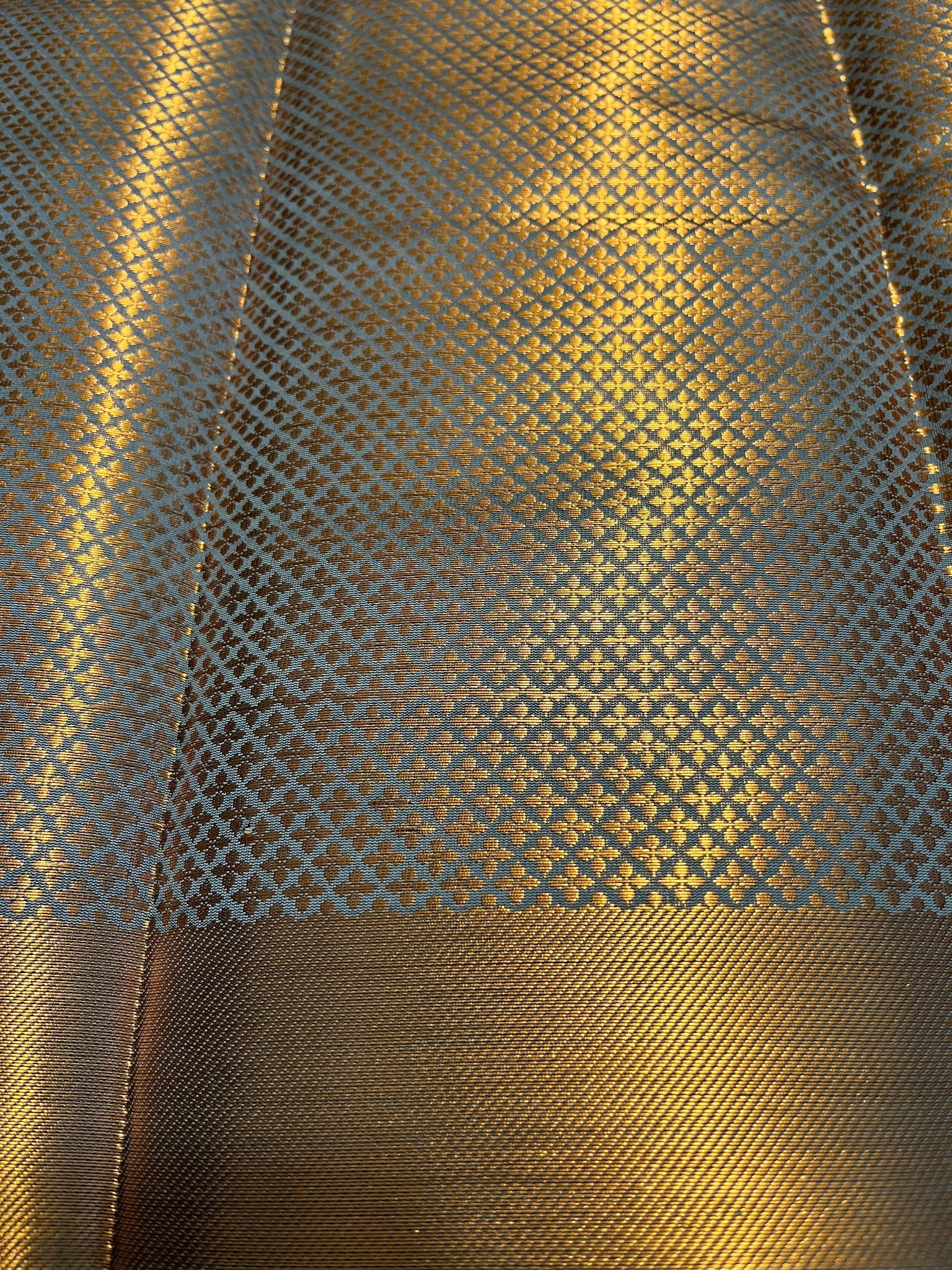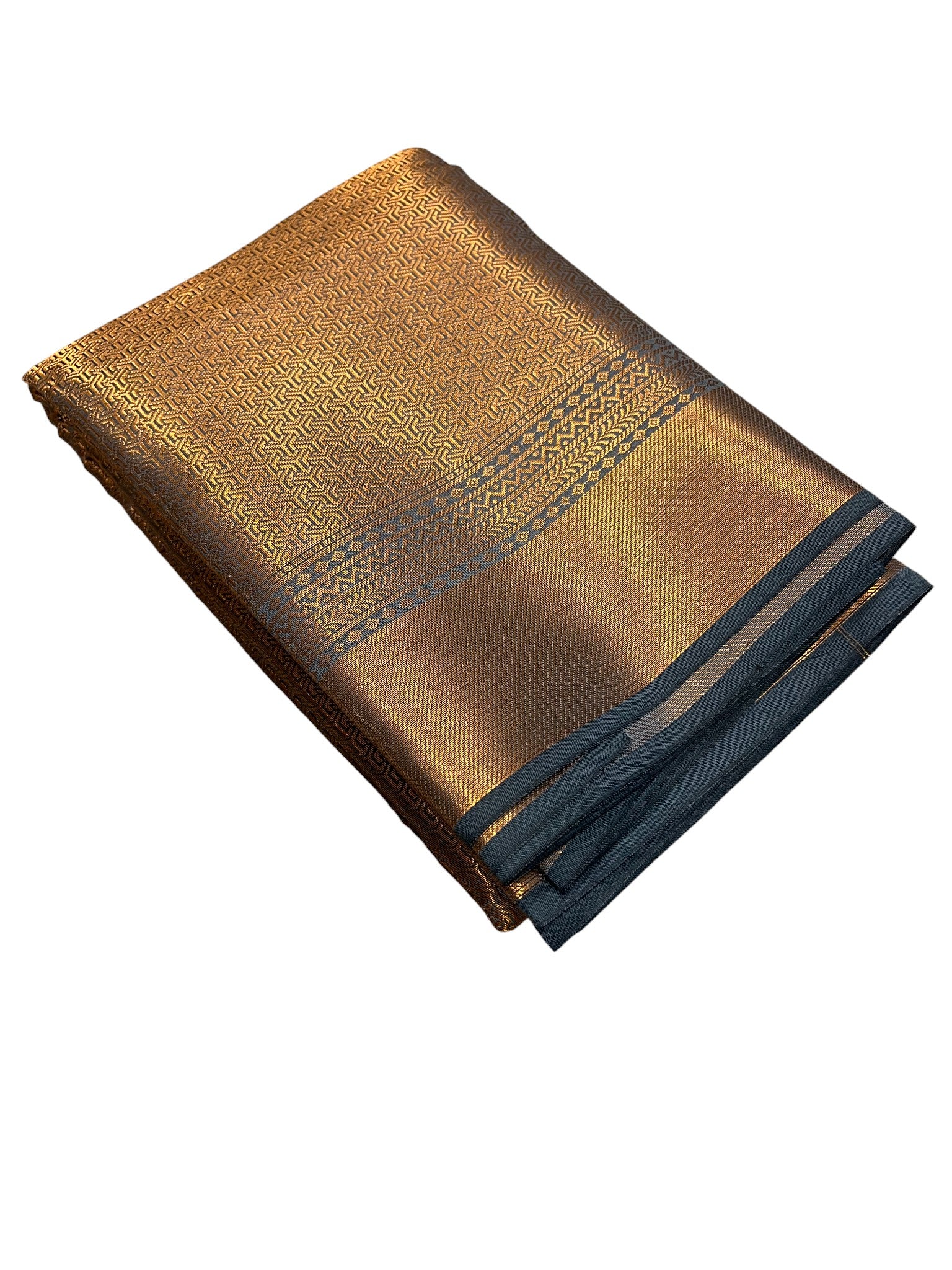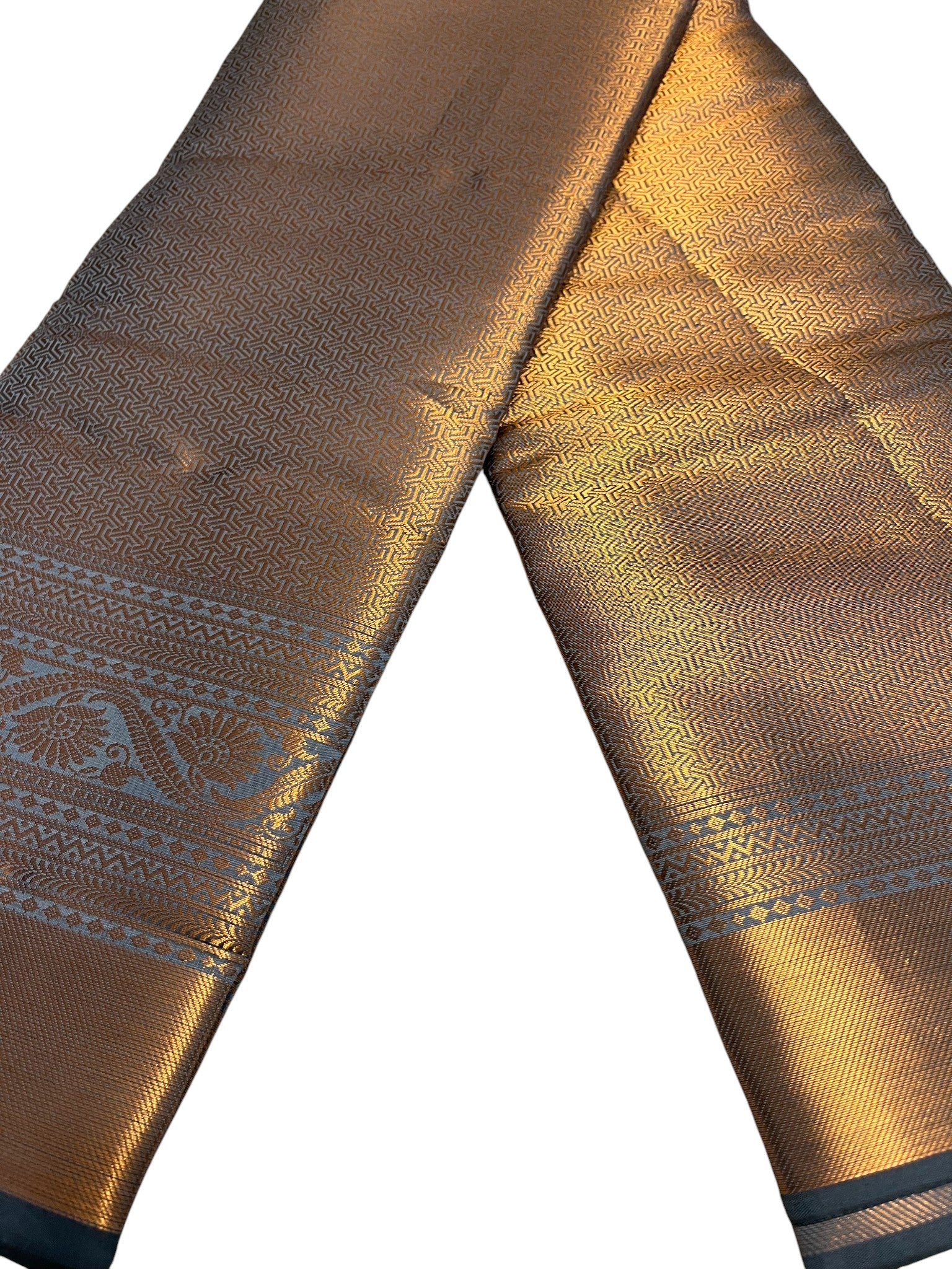 Brown with golden zari blended kanchipuram bridal silk saree crafted with intricate zari work The richly designed brocade blouse with big border adds a touch. Like every kanjivaram saree, this blended kanjivaram silk saree is too designed with heavy silk and the total saree look gives you a perfect traditional appearance for occasions and weddings.