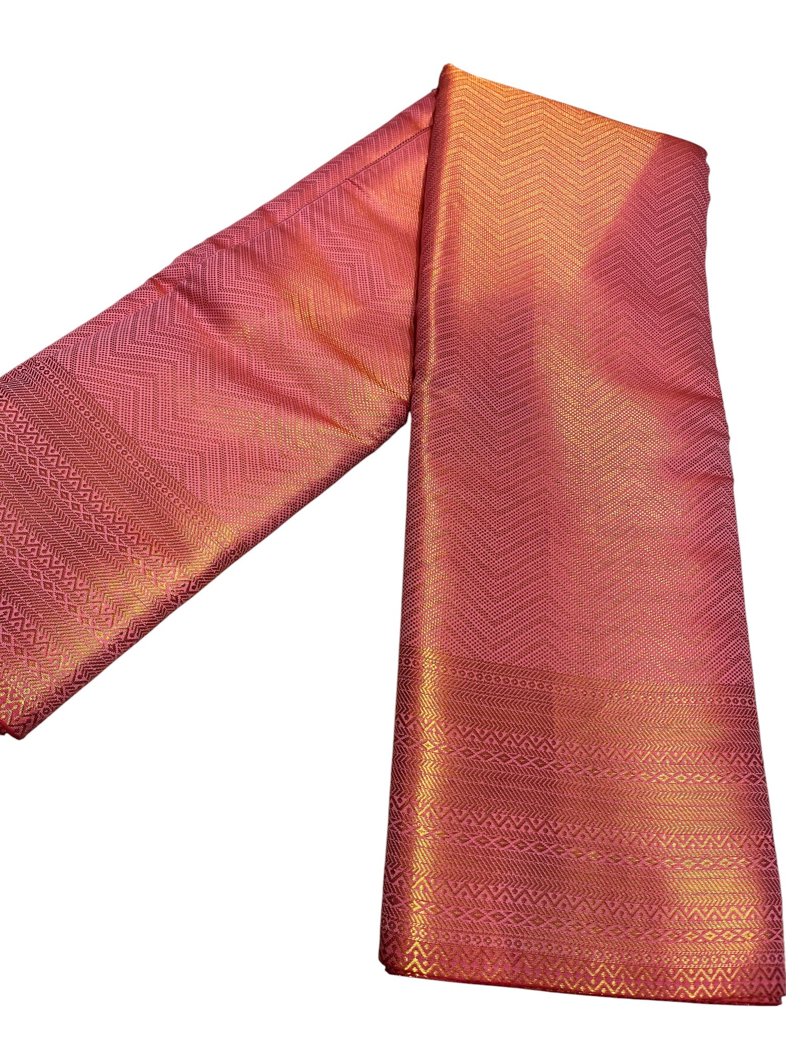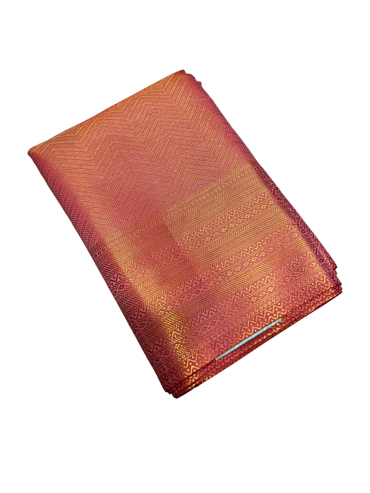 Brown with golden zari blended kanchipuram bridal silk saree crafted with intricate zari work The richly designed brocade blouse with big border adds a touch. Like every kanjivaram saree, this blended kanjivaram silk saree is too designed with heavy silk and the total saree look gives you a perfect traditional appearance for occasions and weddings.
