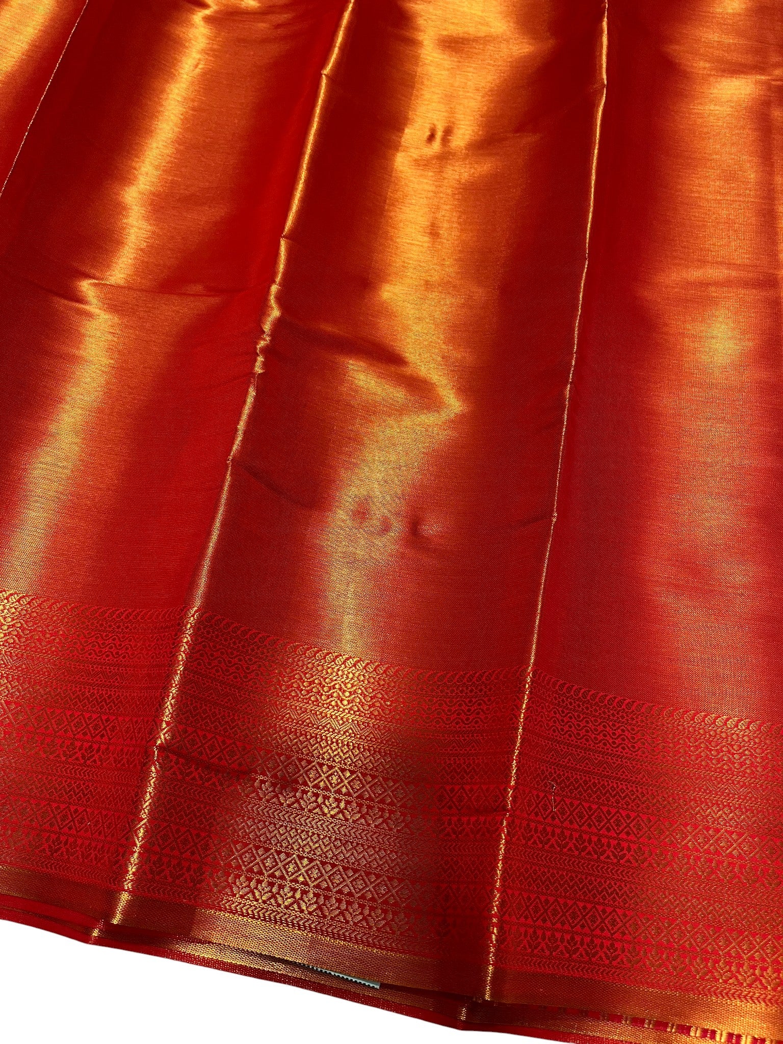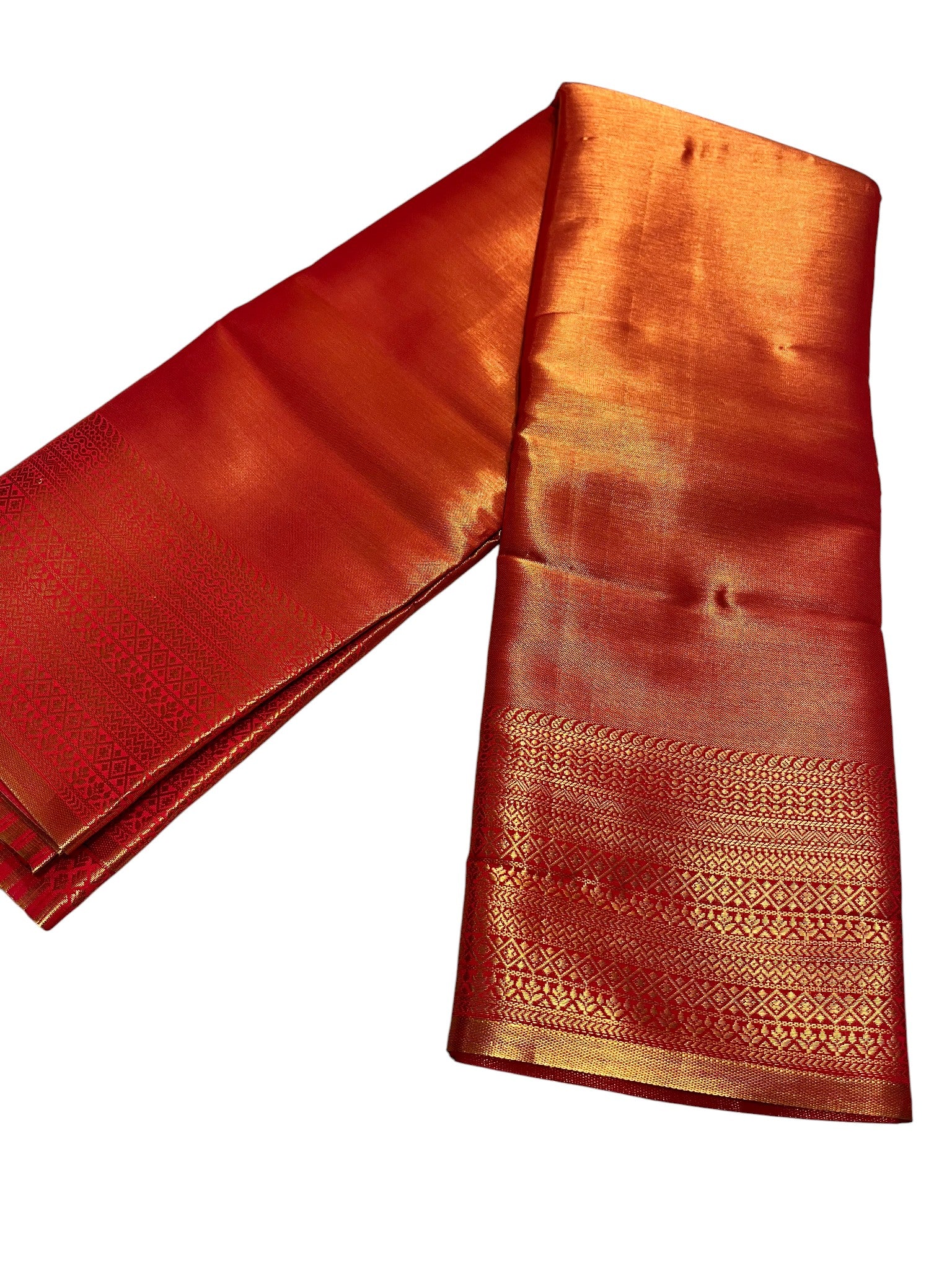 Brown with golden zari blended kanchipuram bridal silk saree crafted with intricate zari work The richly designed brocade blouse with big border adds a touch. Like every kanjivaram saree, this blended kanjivaram silk saree is too designed with heavy silk and the total saree look gives you a perfect traditional appearance for occasions and weddings.