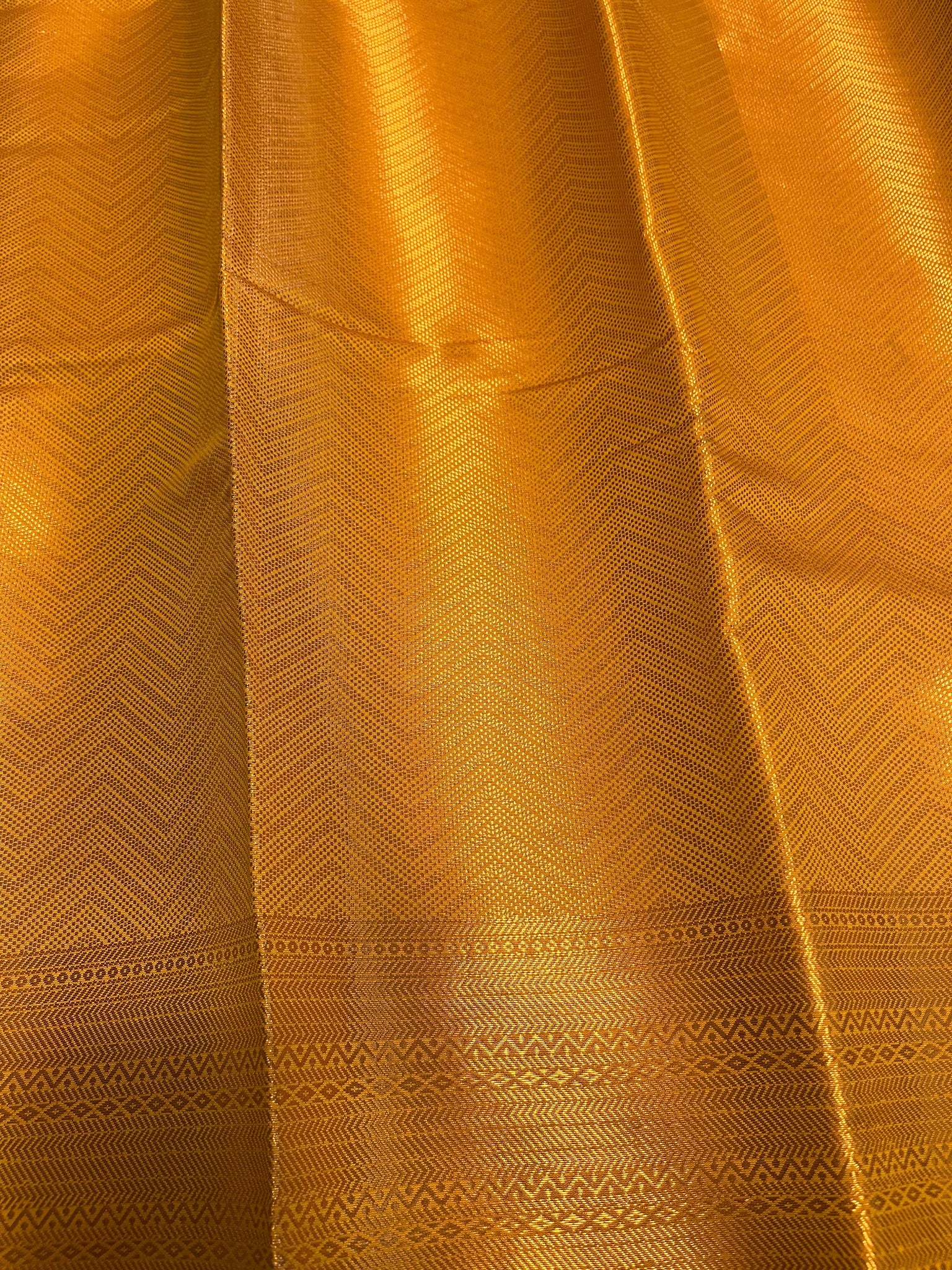 Brown with golden zari blended kanchipuram bridal silk saree crafted with intricate zari work The richly designed brocade blouse with big border adds a touch. Like every kanjivaram saree, this blended kanjivaram silk saree is too designed with heavy silk and the total saree look gives you a perfect traditional appearance for occasions and weddings.