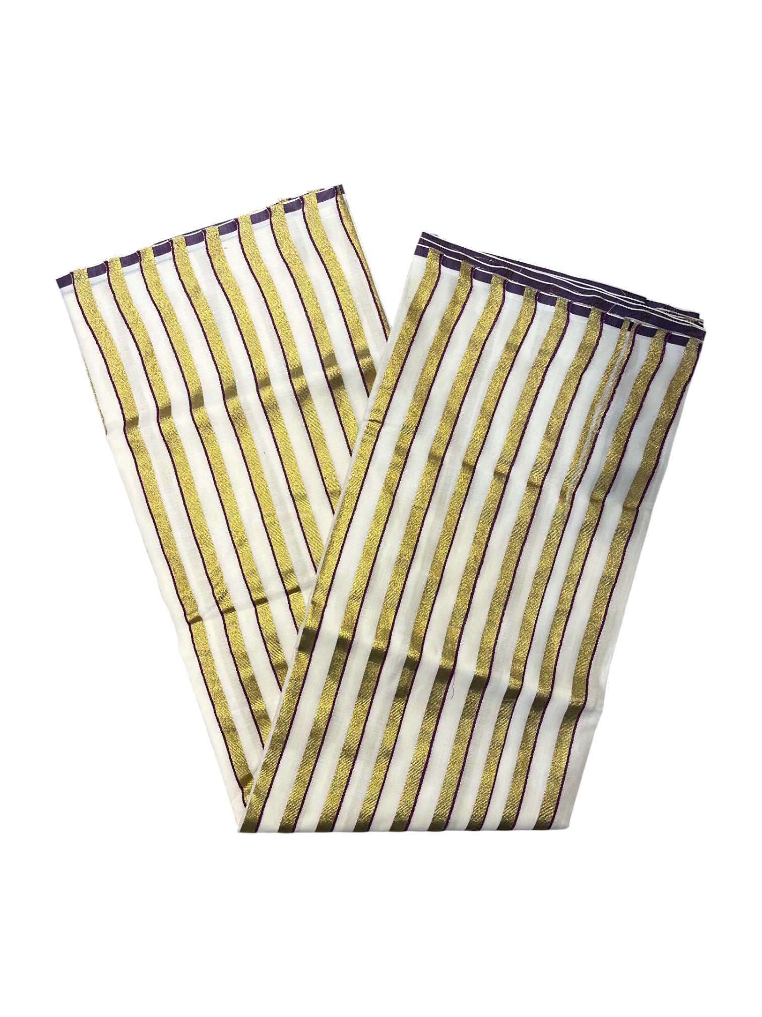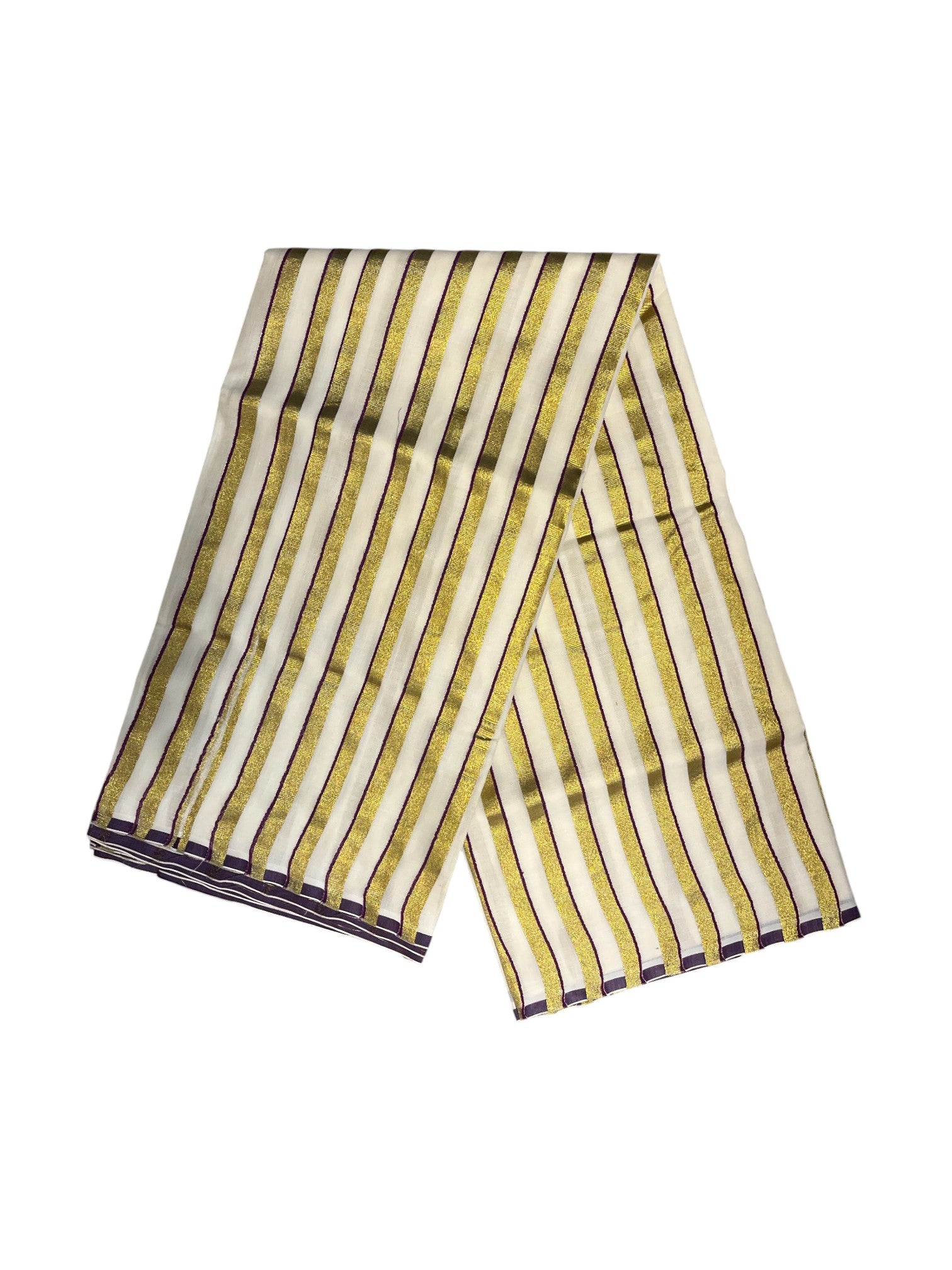 Southloom Puliyilakkara Purple and Gold Kasavu Kerala Saree with Woven Blouse