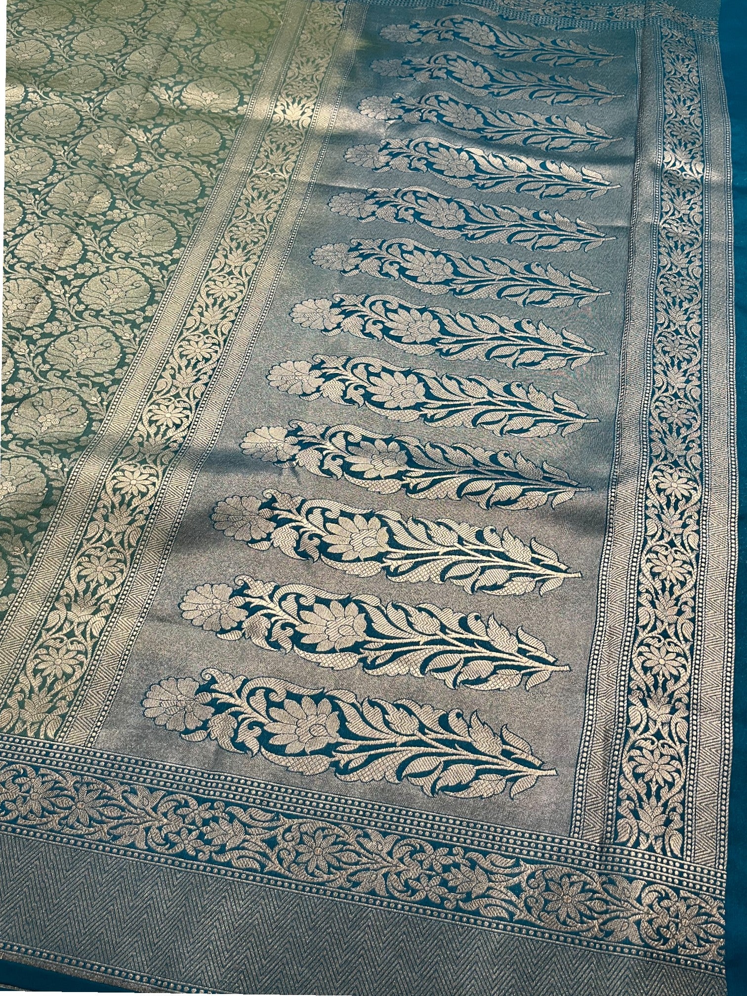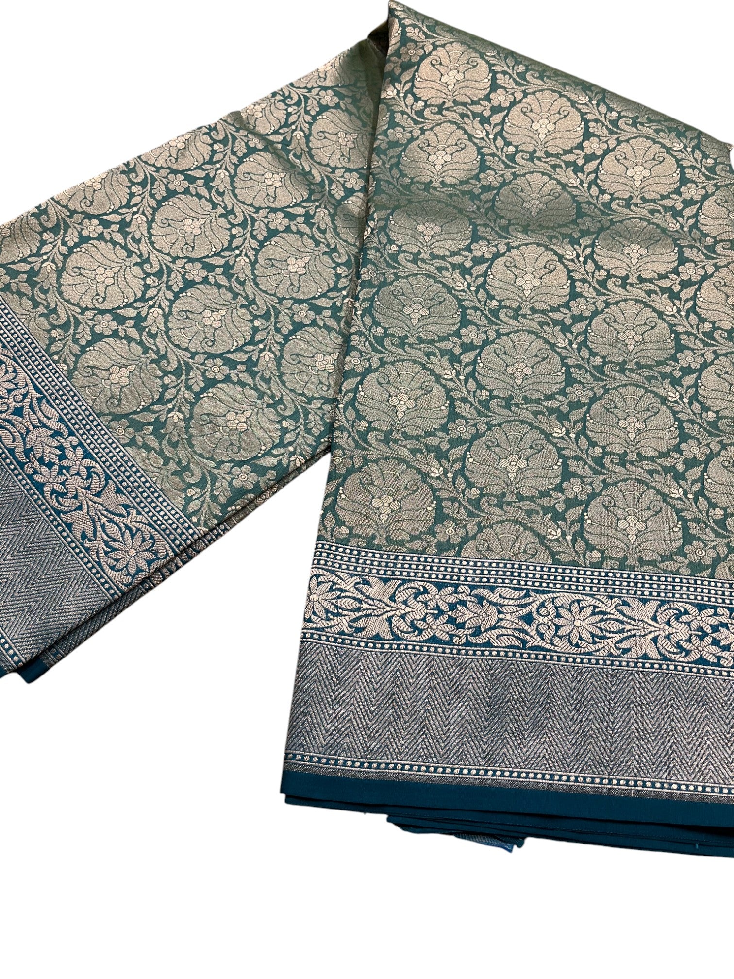 Southloom Pure Banarasi Silk Saree with Woven Work on Body and Borders (Blue)