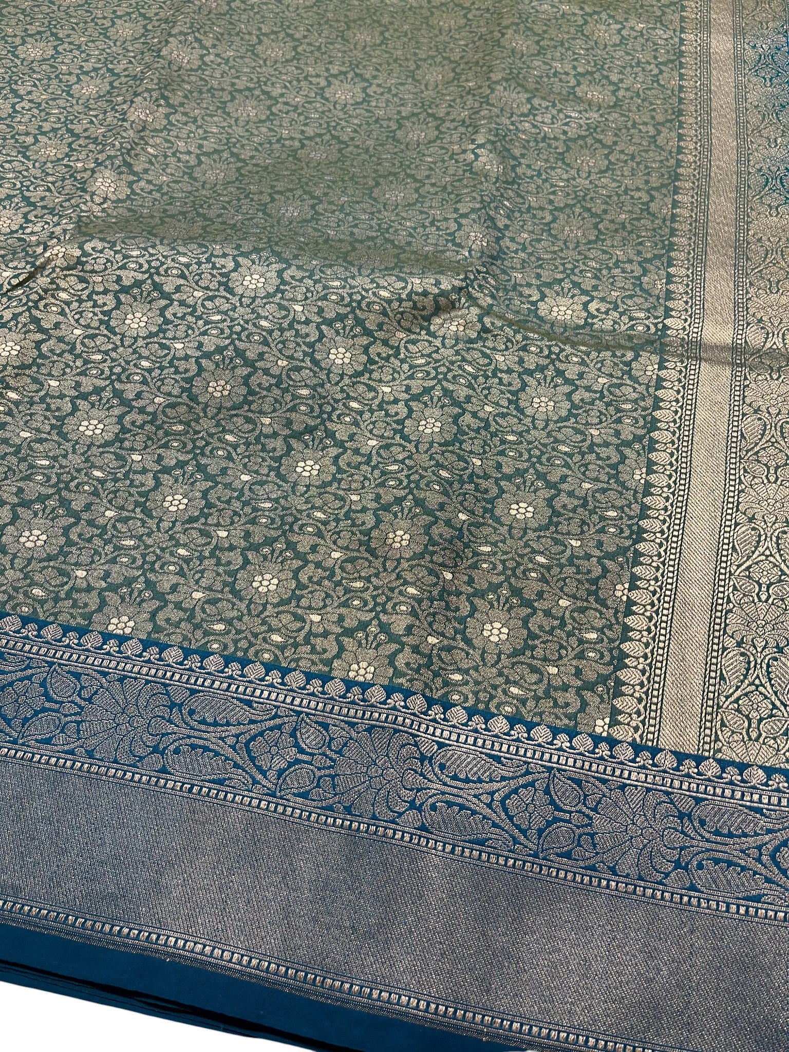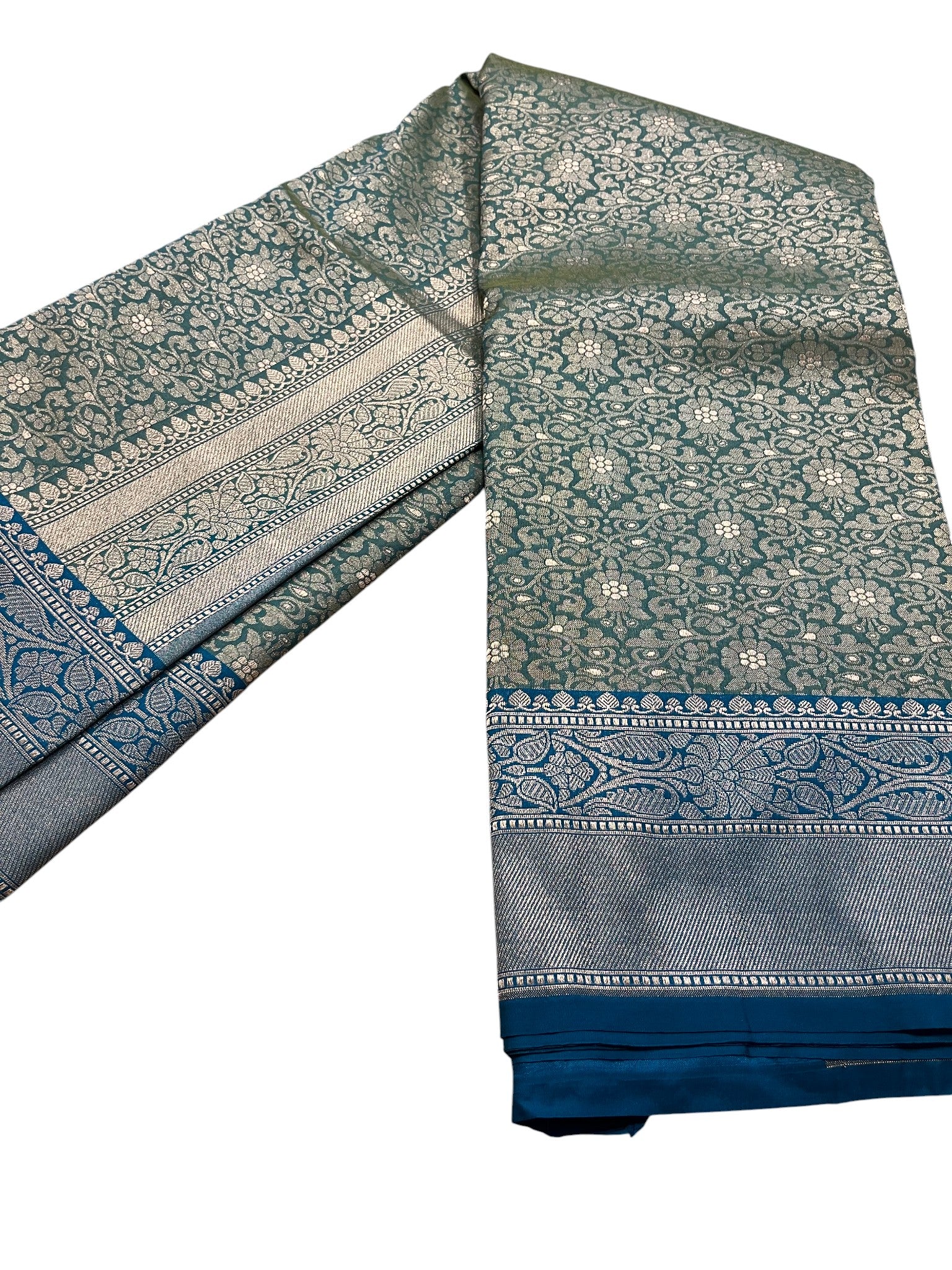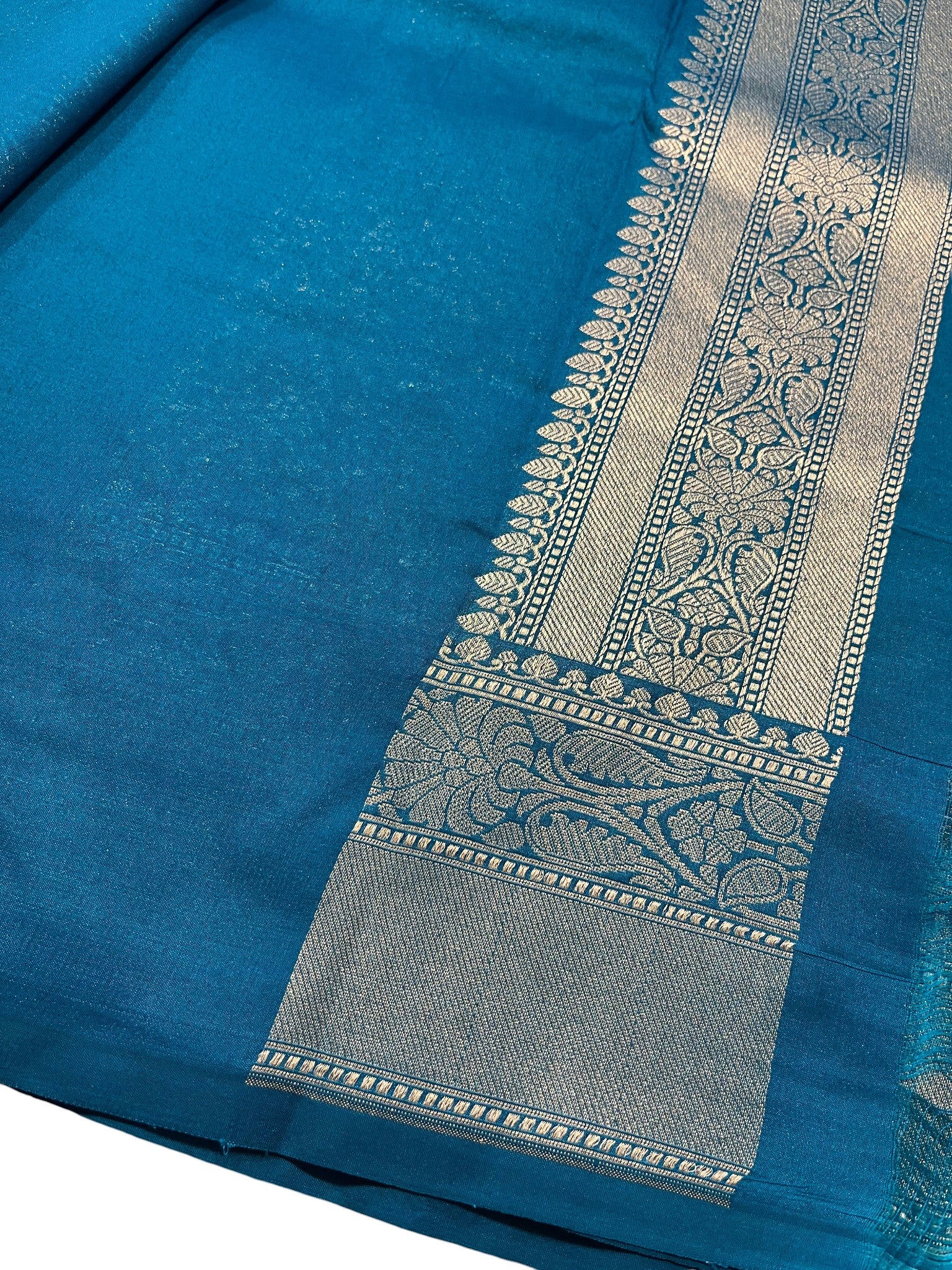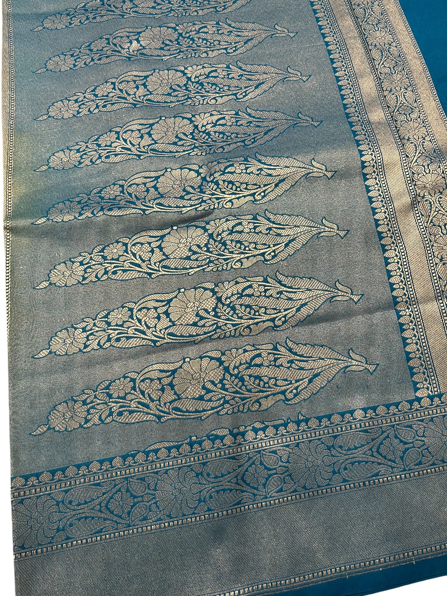 Southloom Pure Banarasi Silk Saree with Woven Work on Body and Borders (Blue)