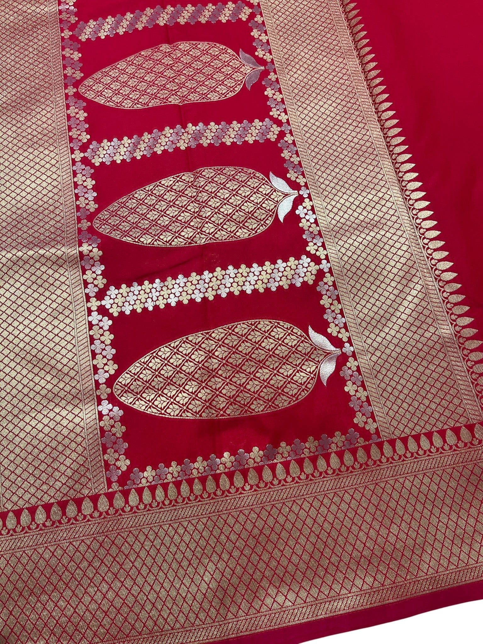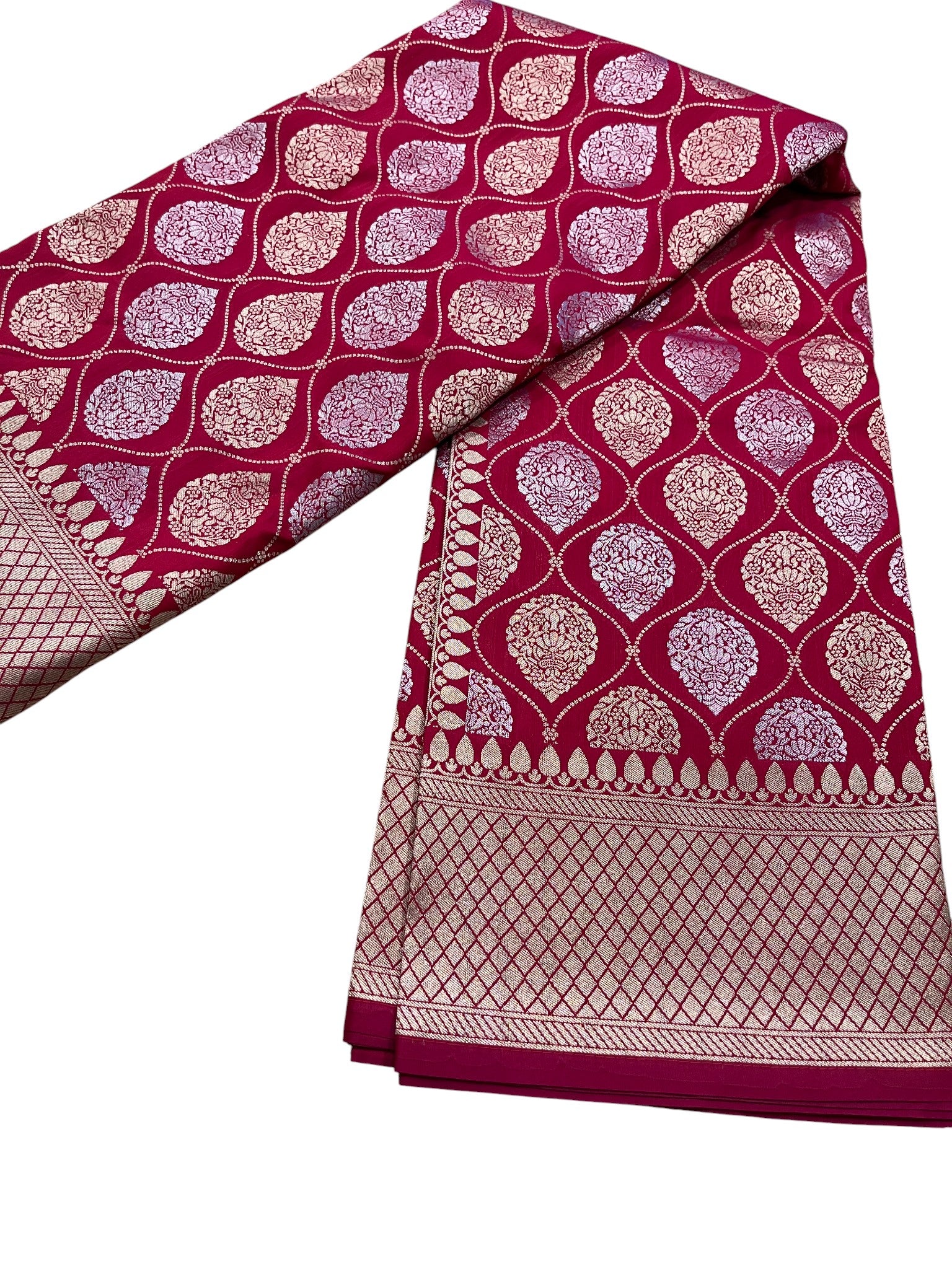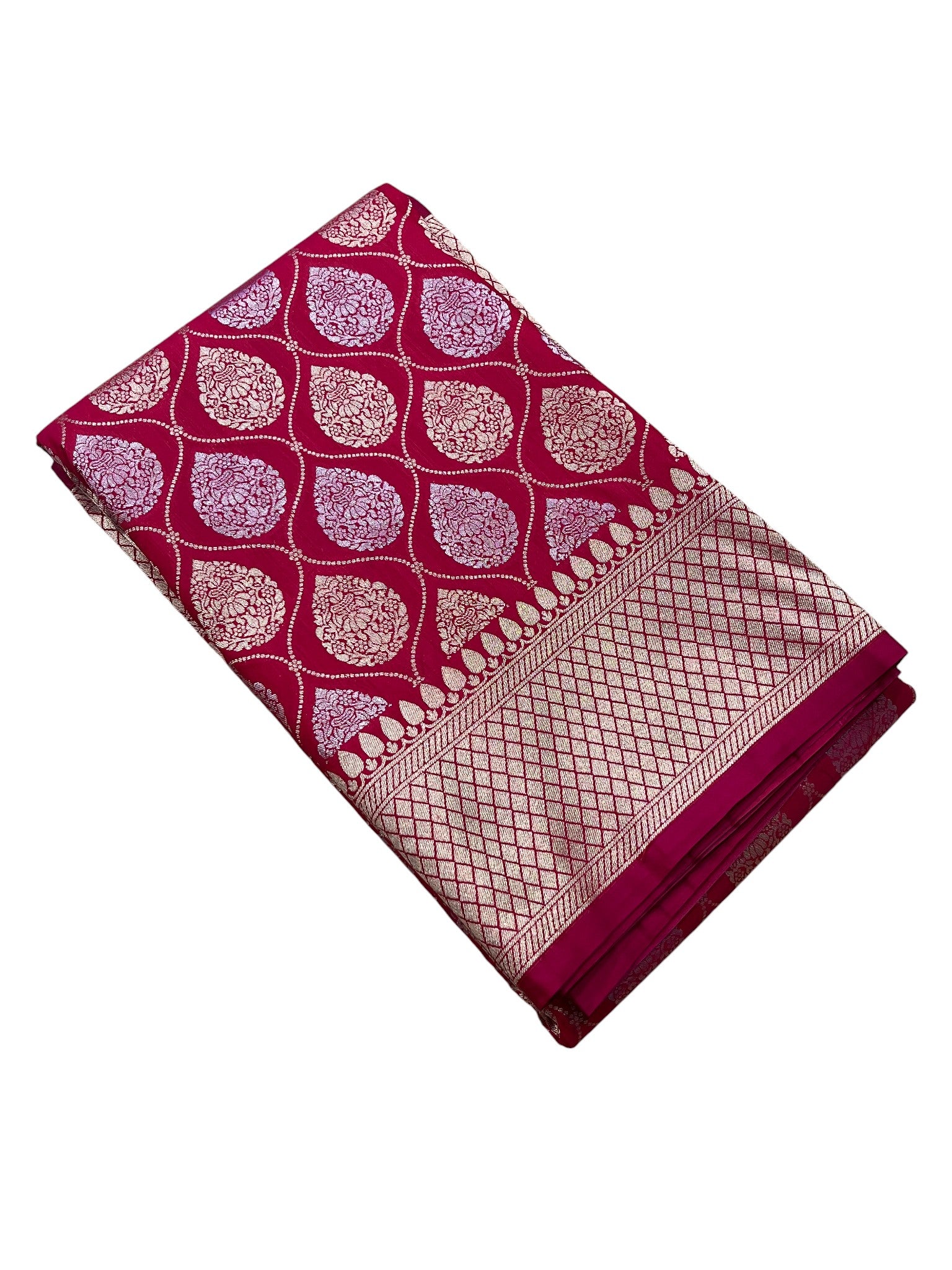 Southloom Pure Banarasi Silk Saree with Woven Work on Body and Borders (Magenta)