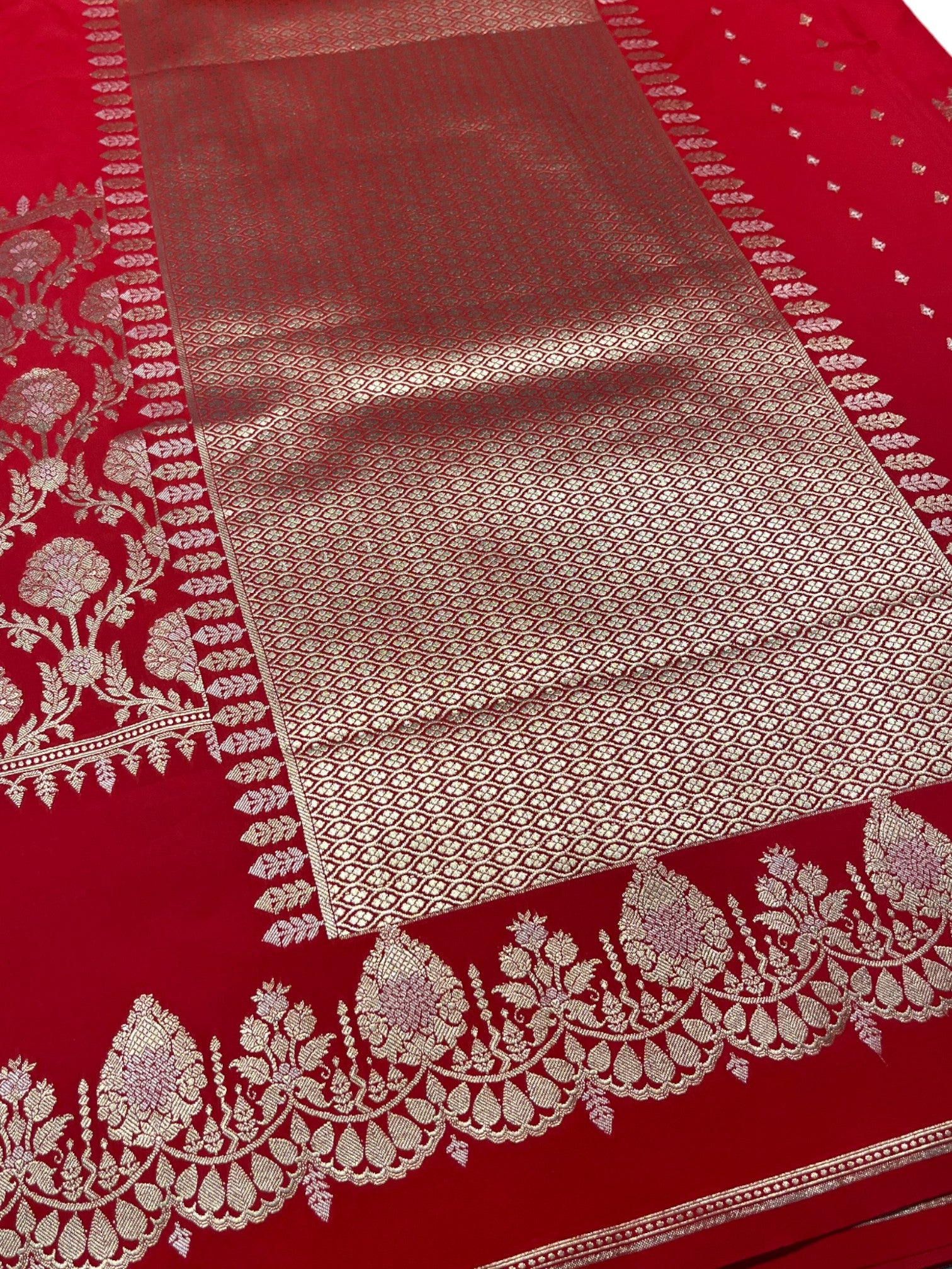 Southloom Pure Banarasi Silk Saree with Woven Work on Body and Borders (Red)