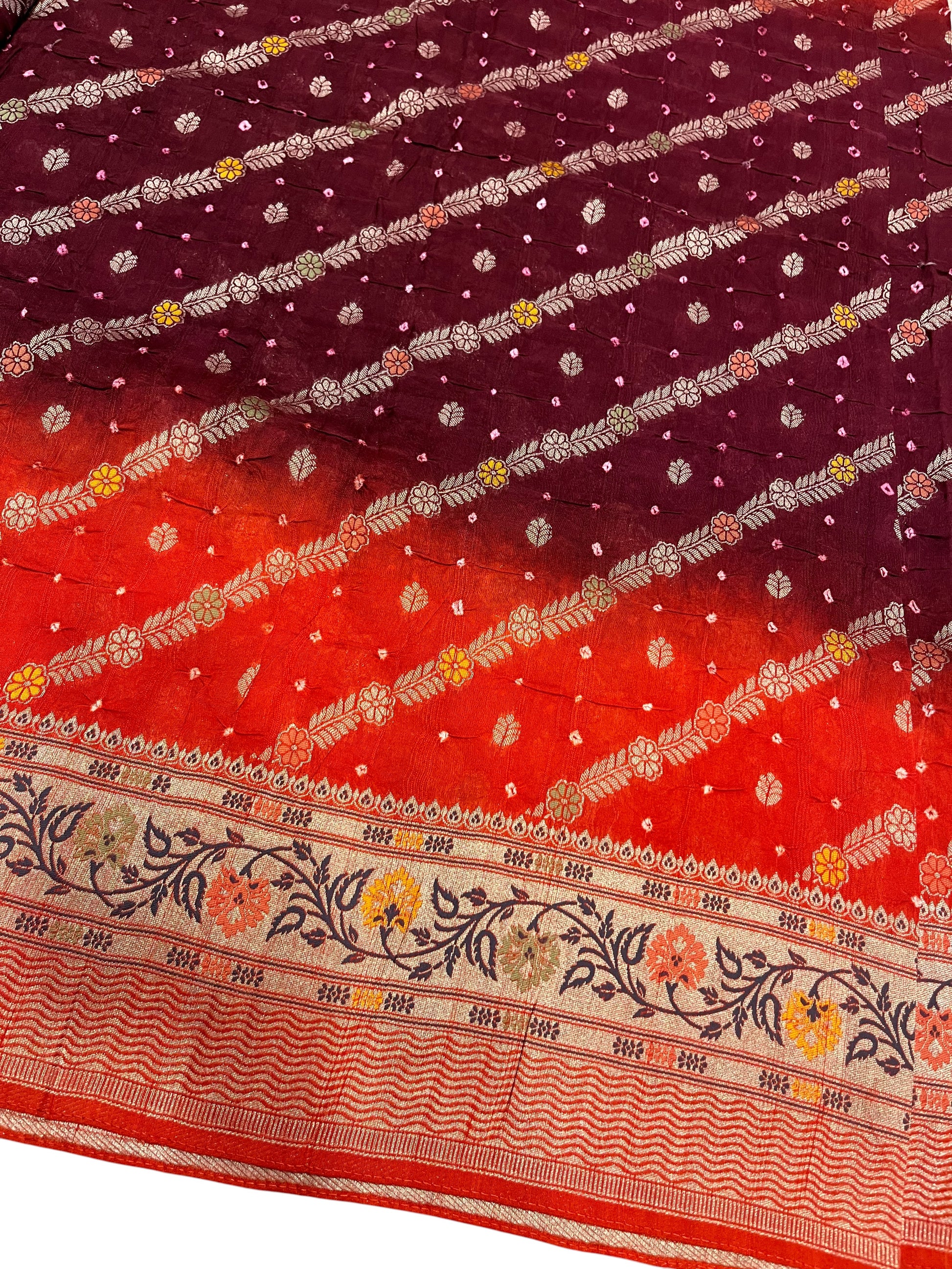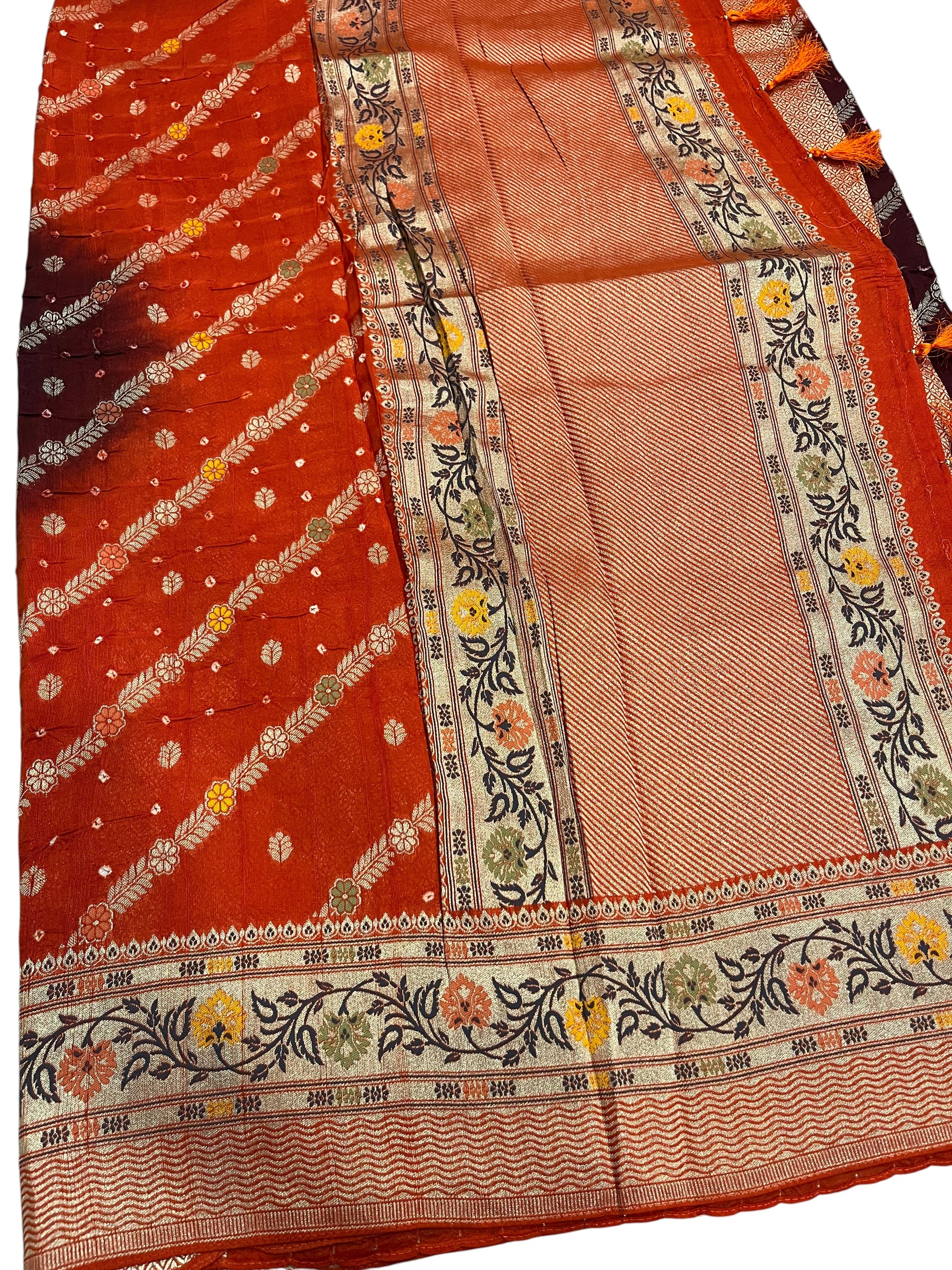 Southloom Pure Banarasi Silk Saree with Woven Work on Body and Borders (Orange & Brown)