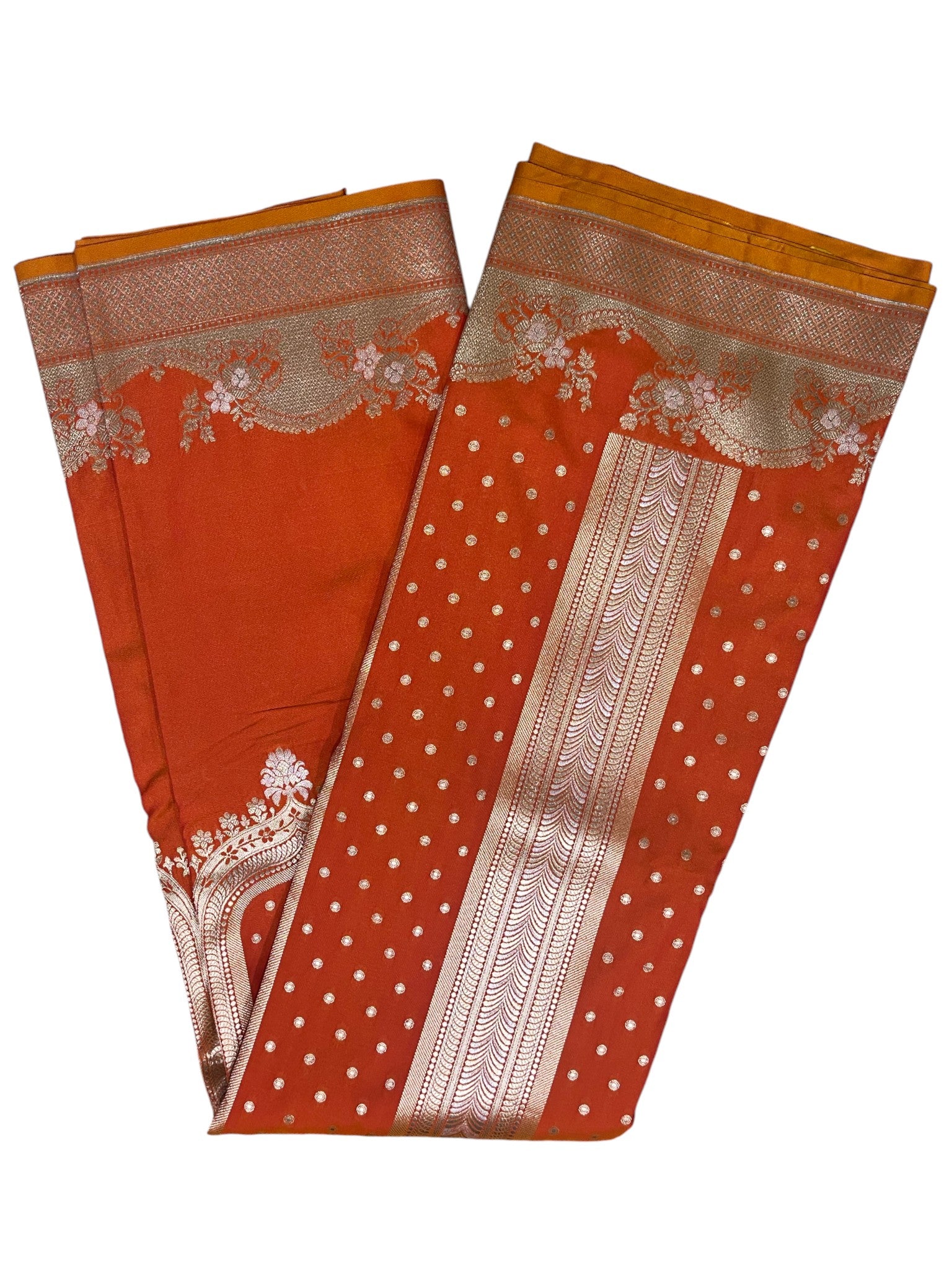 Southloom Pure Banarasi Silk Saree with Woven Work on Body and Borders (Orange)