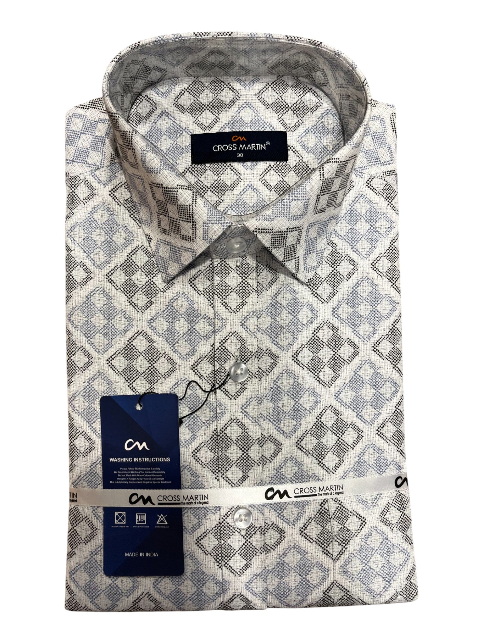 Southloom Pure Cotton Blue Printed Shirt (38 FS)
