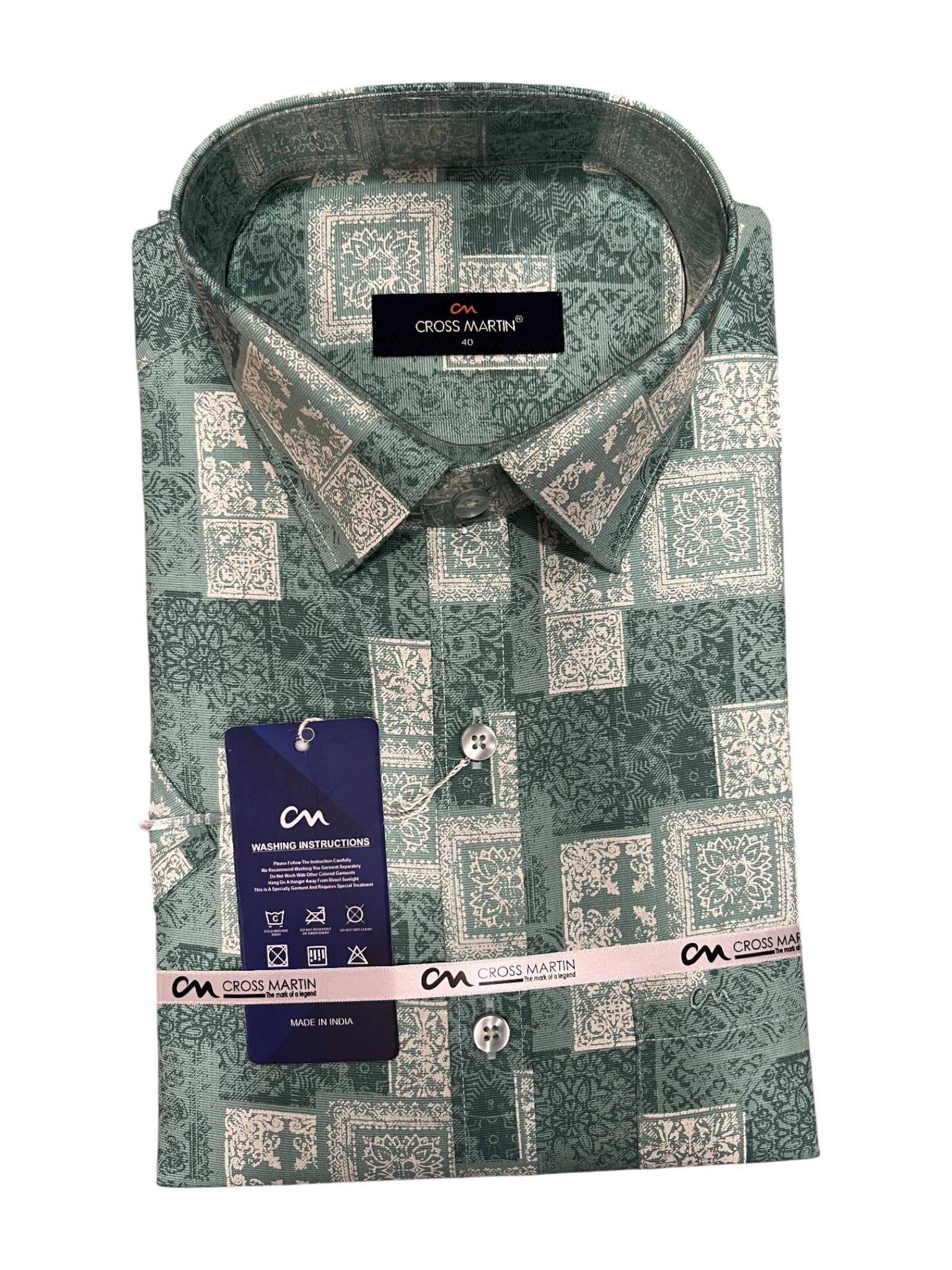 Southloom Pure Cotton Green Printed Shirt (40 HS)
