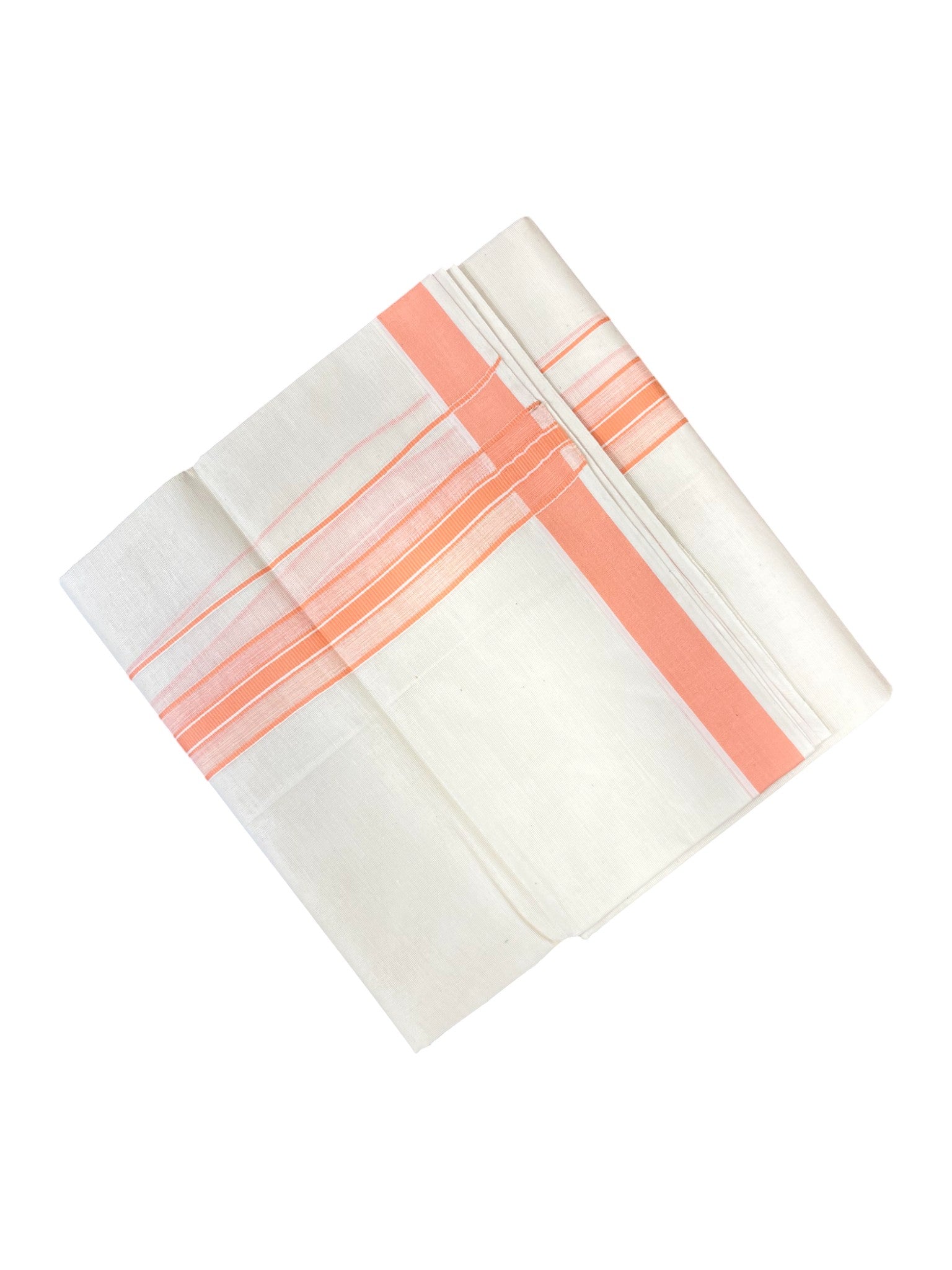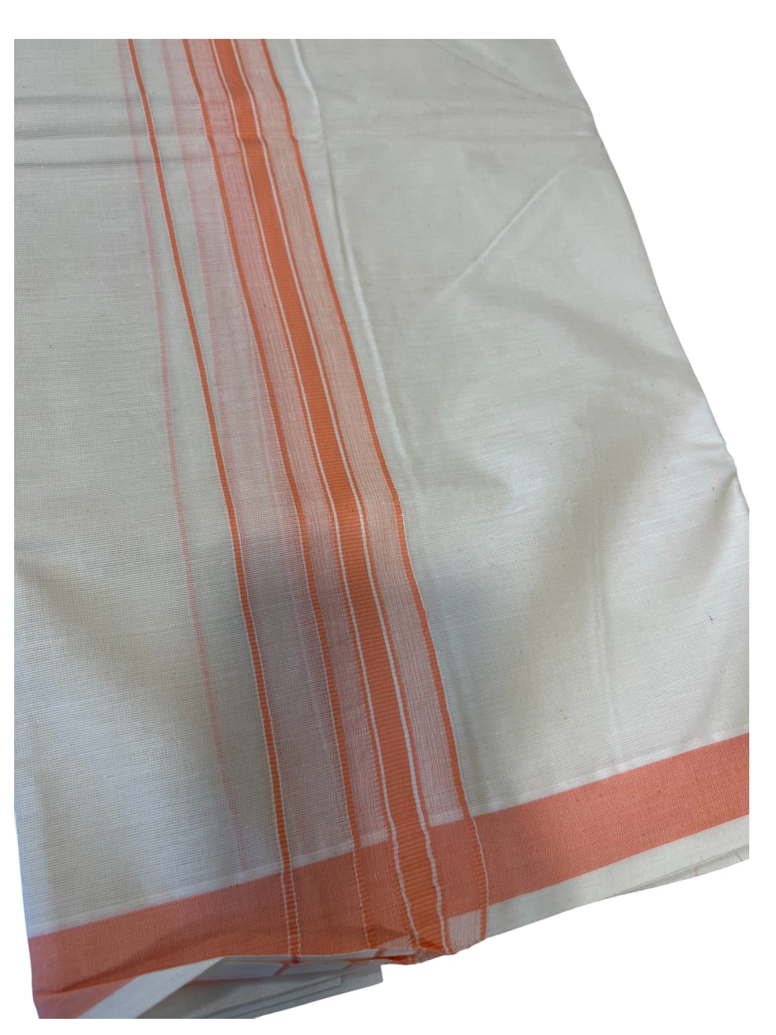Southloom Pure Cotton Double Mundu With White Lines & Orange Border (South Indian Kerala Dhoti)