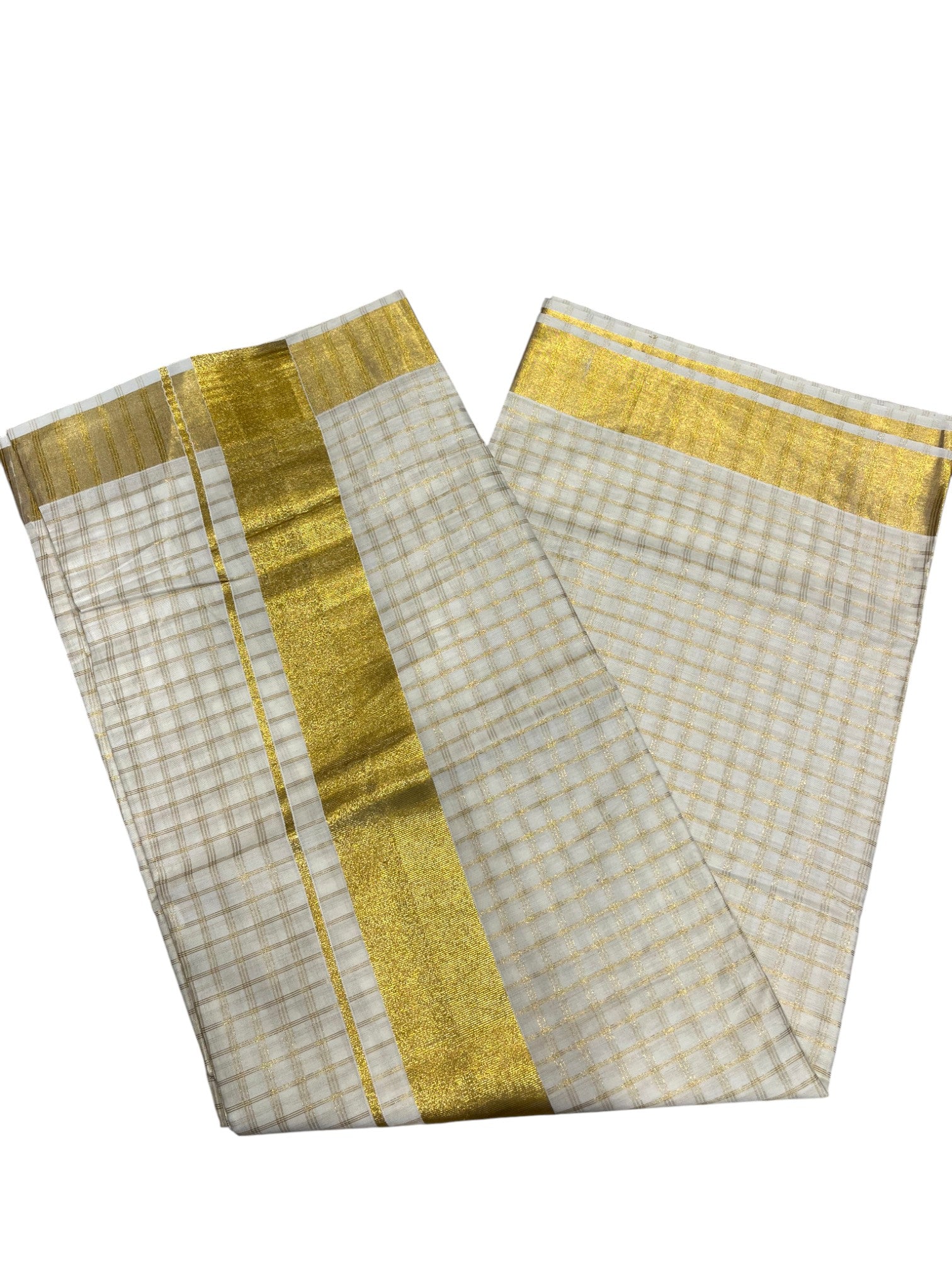 Southloom Pure Cotton Kerala Kasavu Check Saree with Woven Work