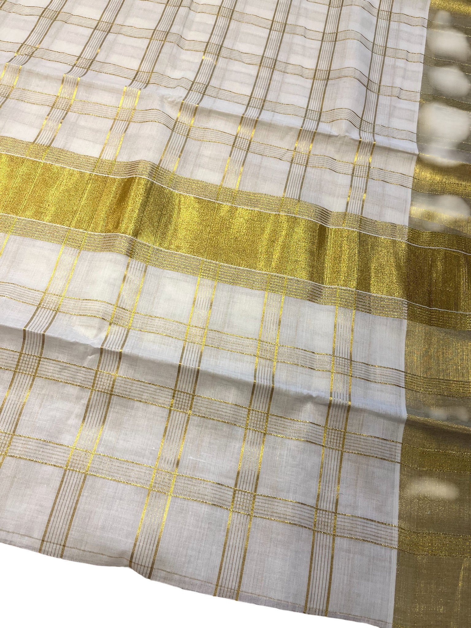 Southloom Pure Cotton Kerala Kasavu Check Saree