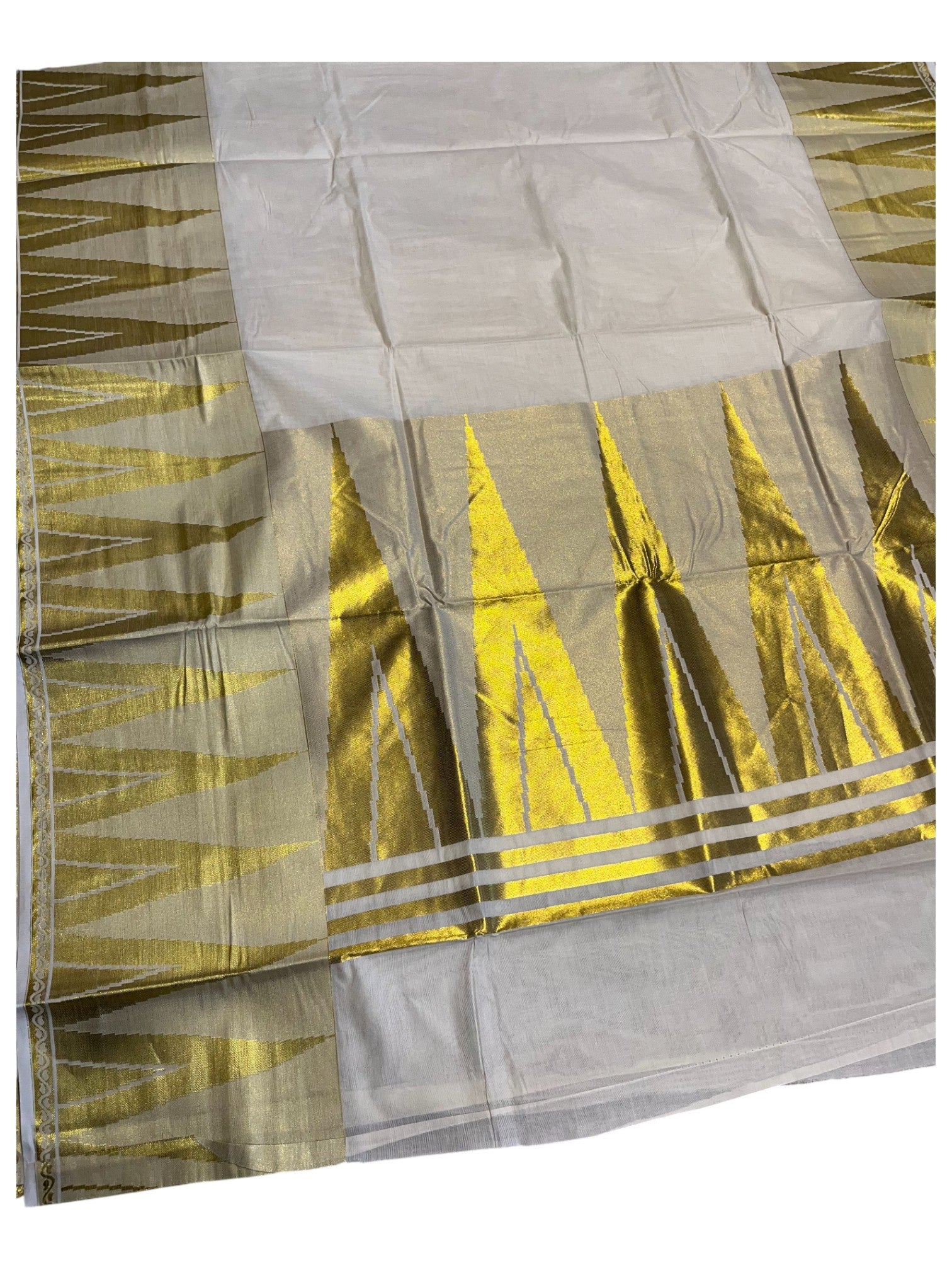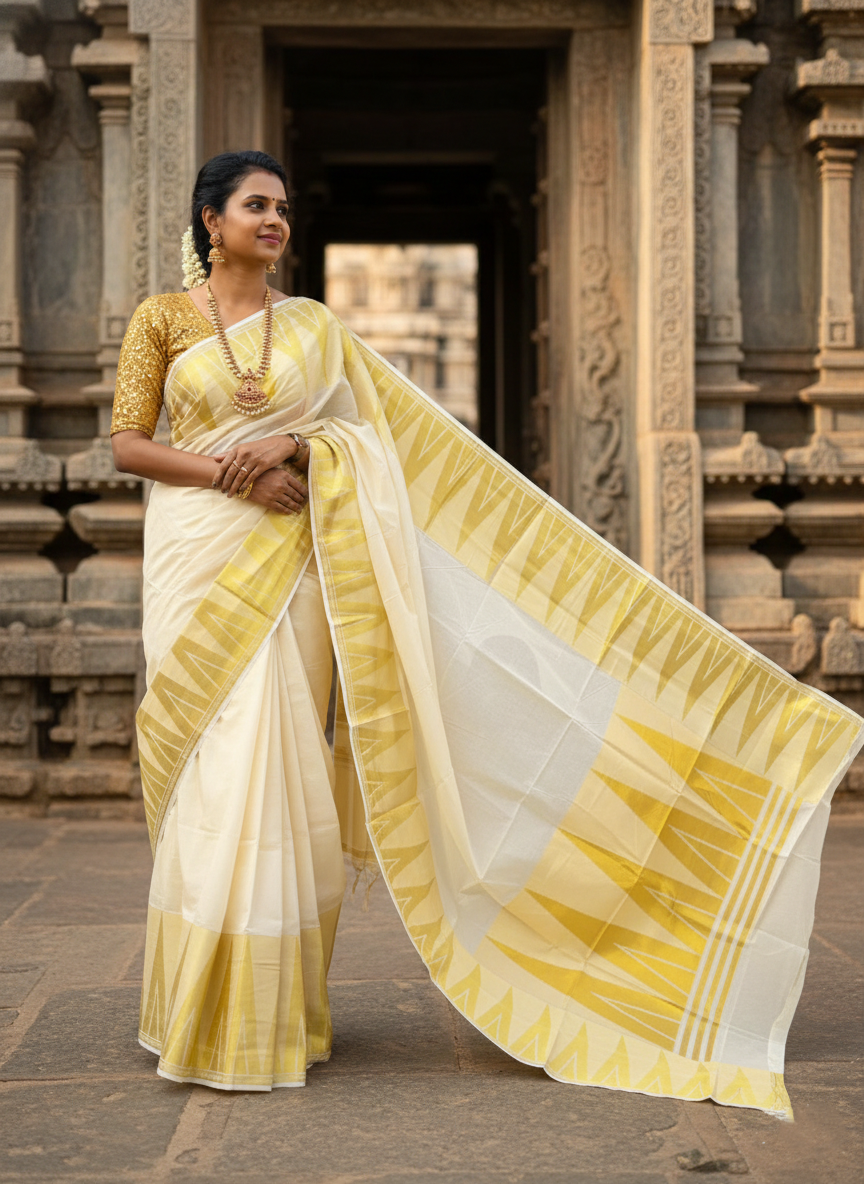 Southloom Pure Cotton Kerala Kasavu Saree with Temple Border