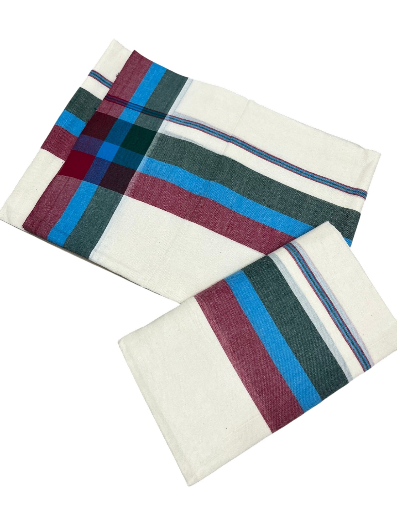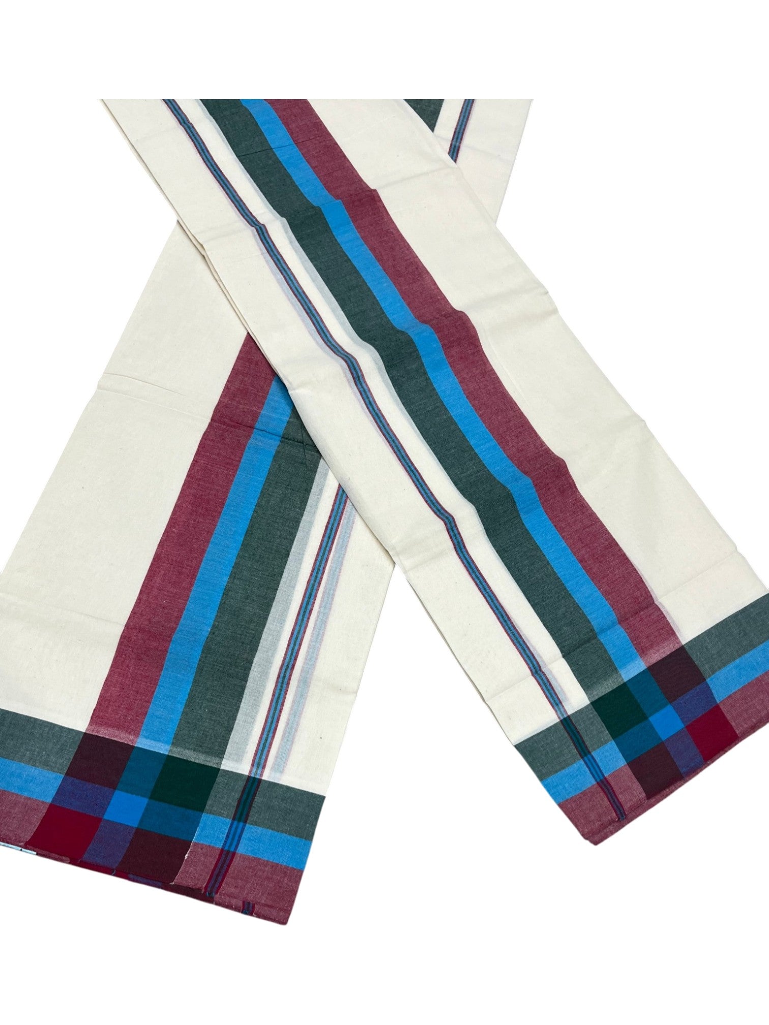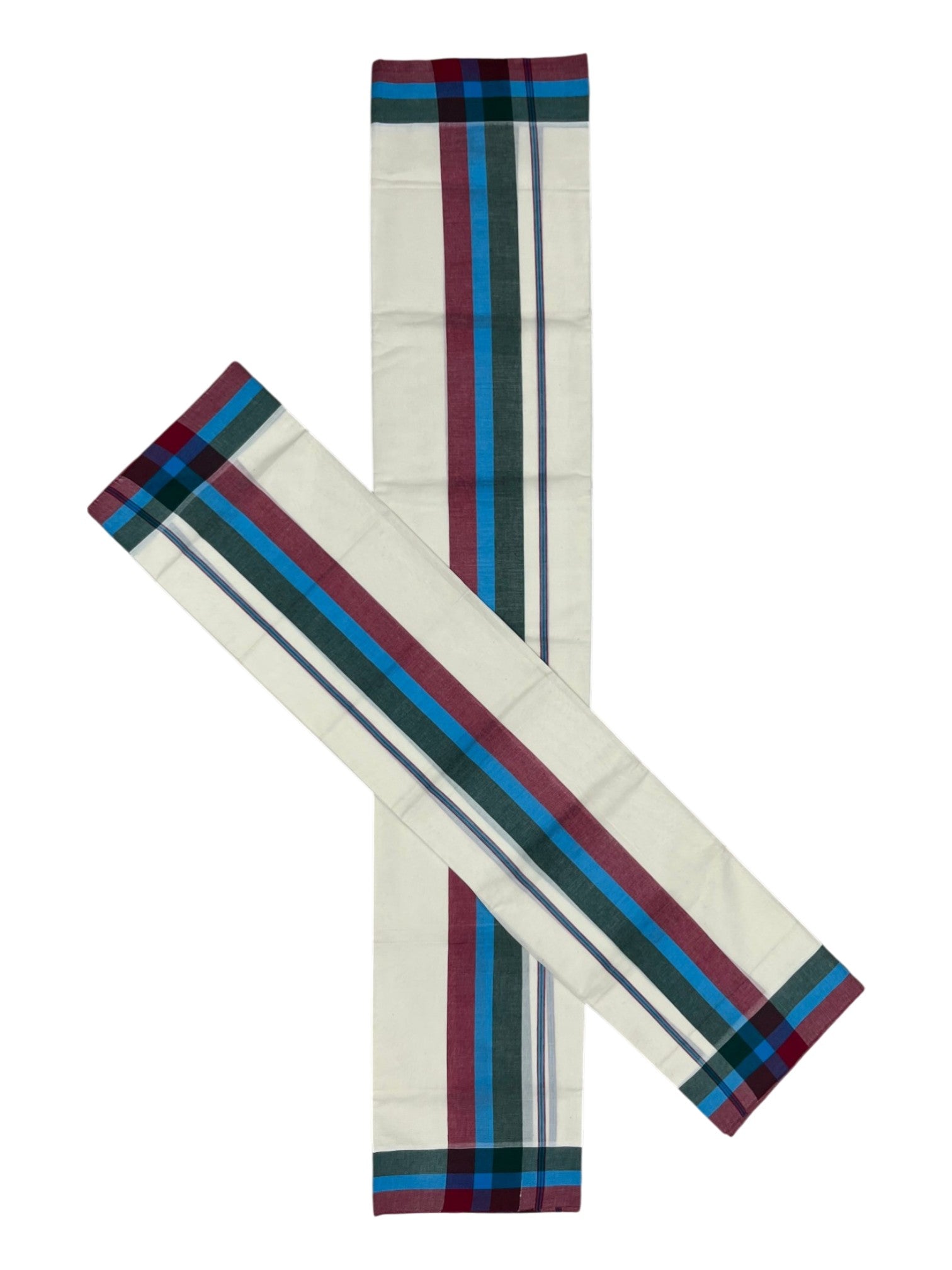 Southloom Pure Cotton Kerala Single Mulloth Set Mundu (Mundum Neriyathum) Red & Green Border in 2.50 mtrs SL243