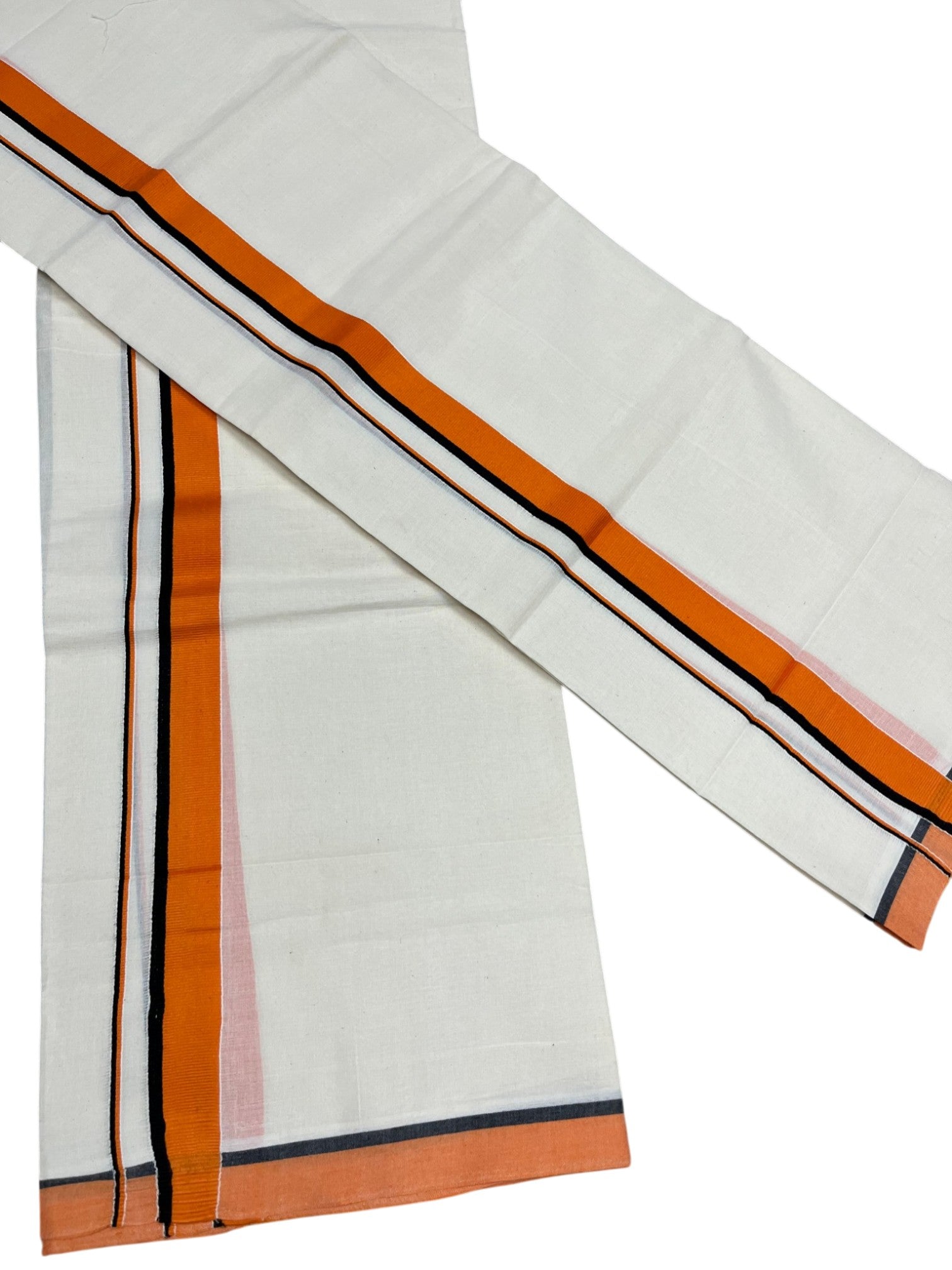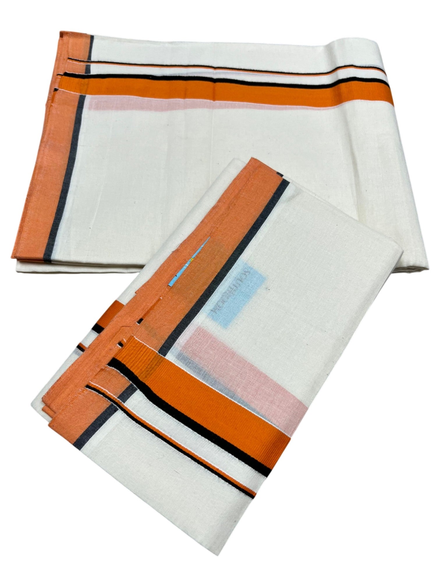Southloom Pure Cotton Kerala Single Set Mundu (Mundum Neriyathum) with Orange & Black Border in 2.80 Mtrs in 2.80 Mtrs