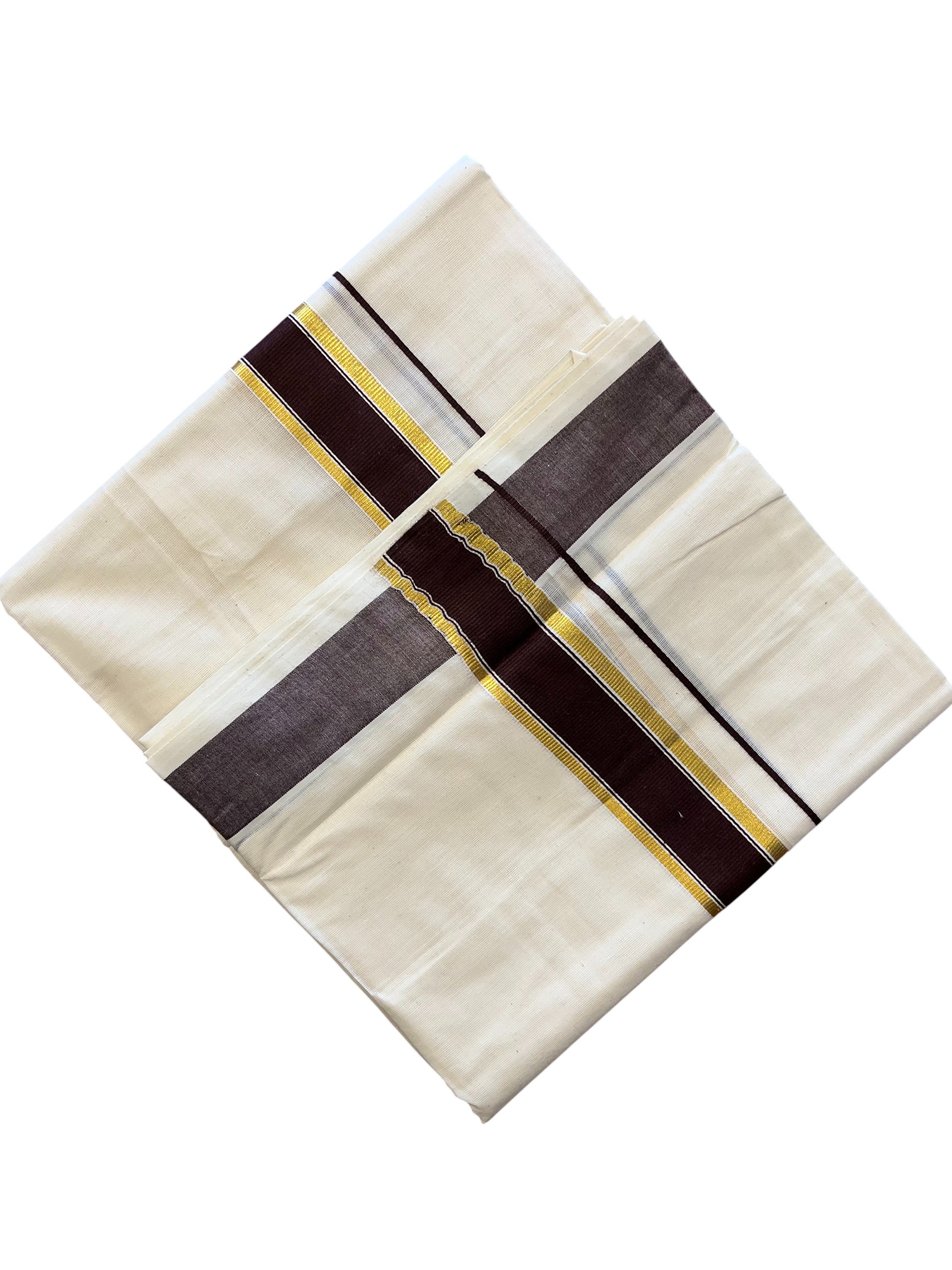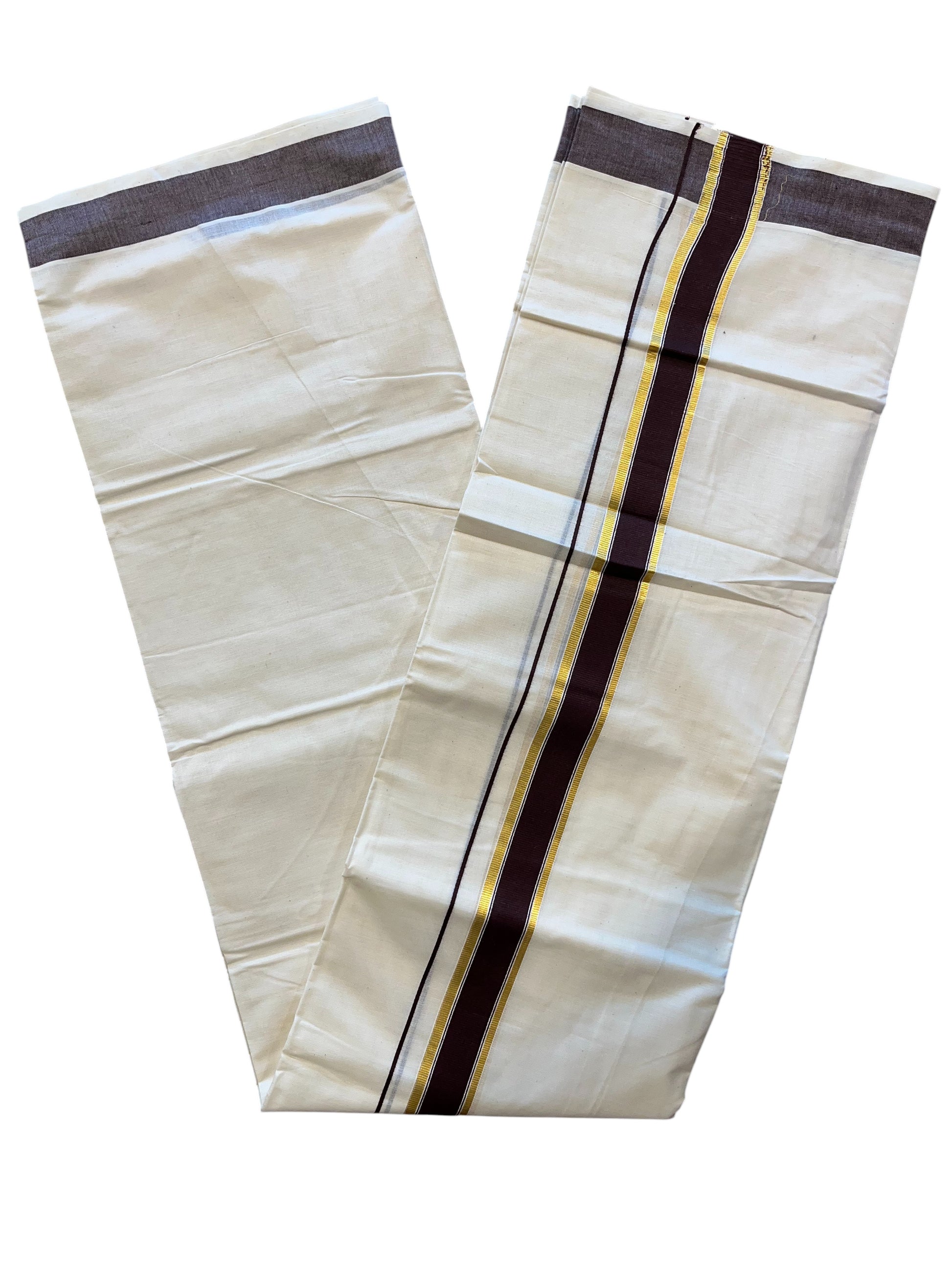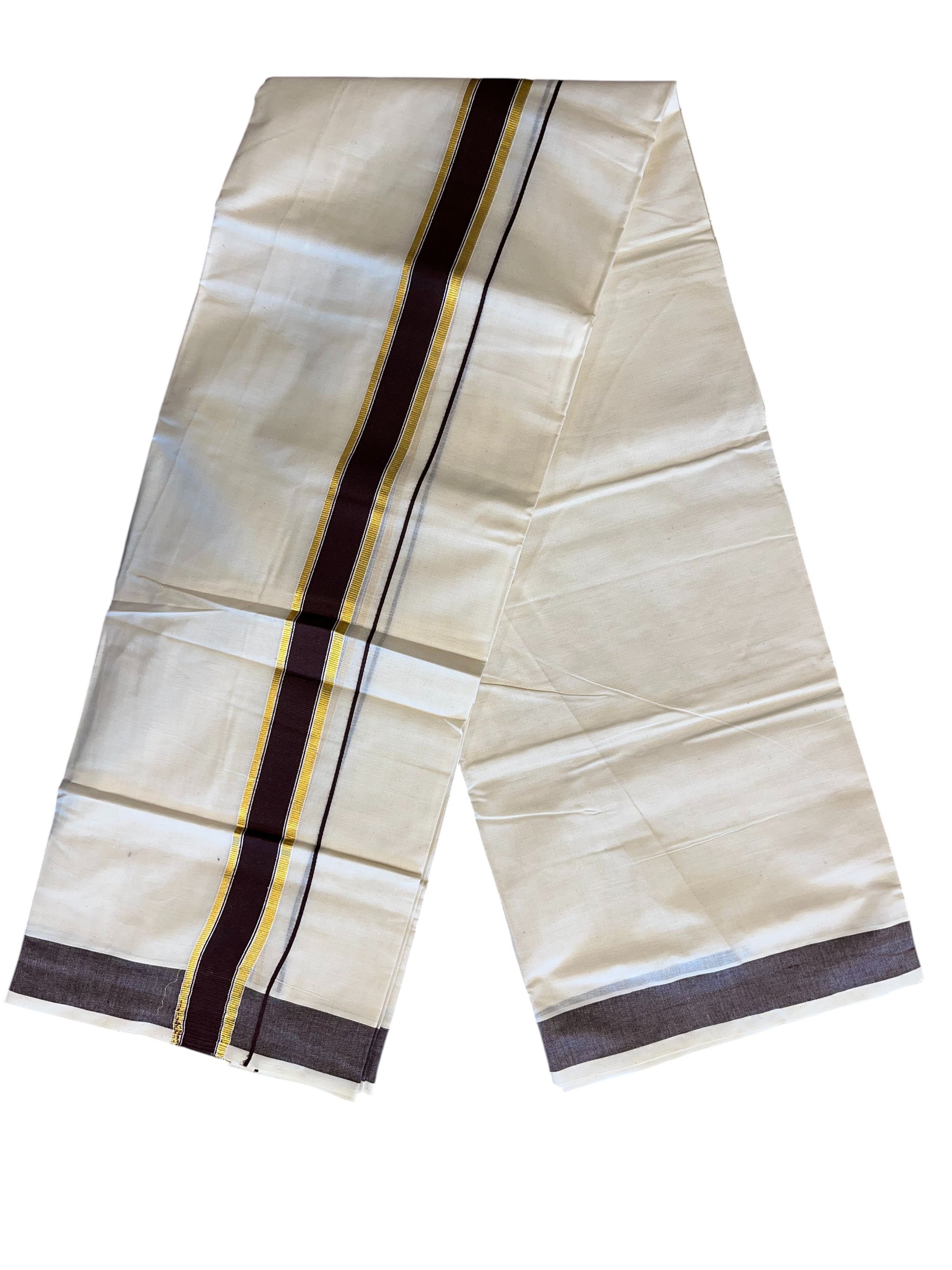 Southloom Pure Cotton Mundu with Gold Kasavu and Brown Colour Border (South Indian Kerala Dhoti)