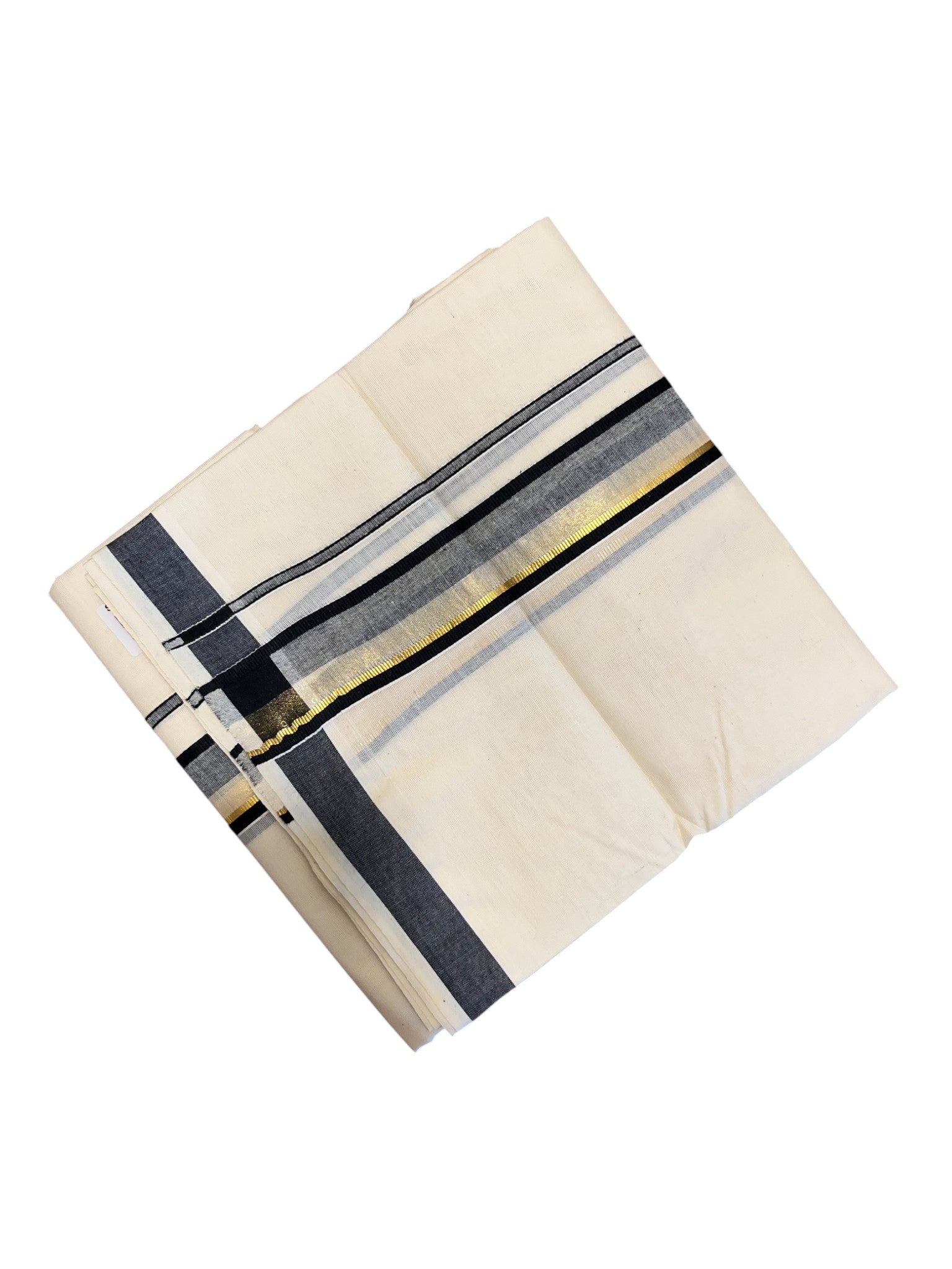 Southloom Pure Cotton Double Mundu With Gold Kasavu And Black & Gray Border (South Indian Kerala Dhoti)