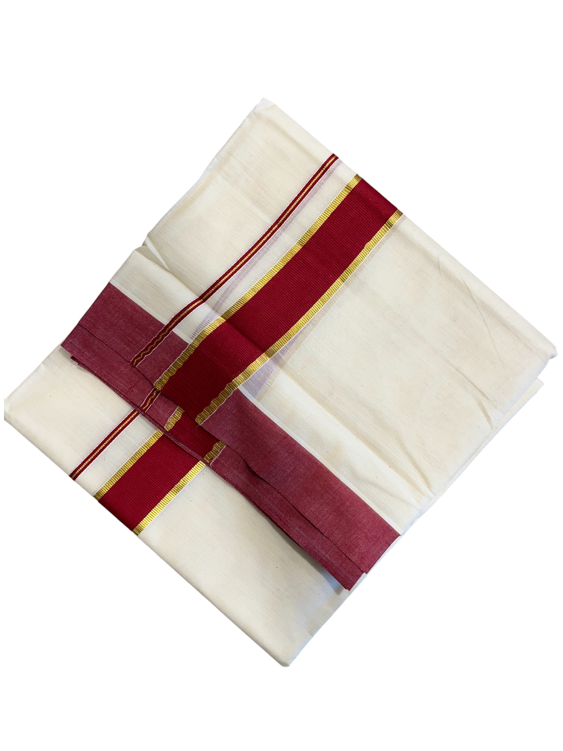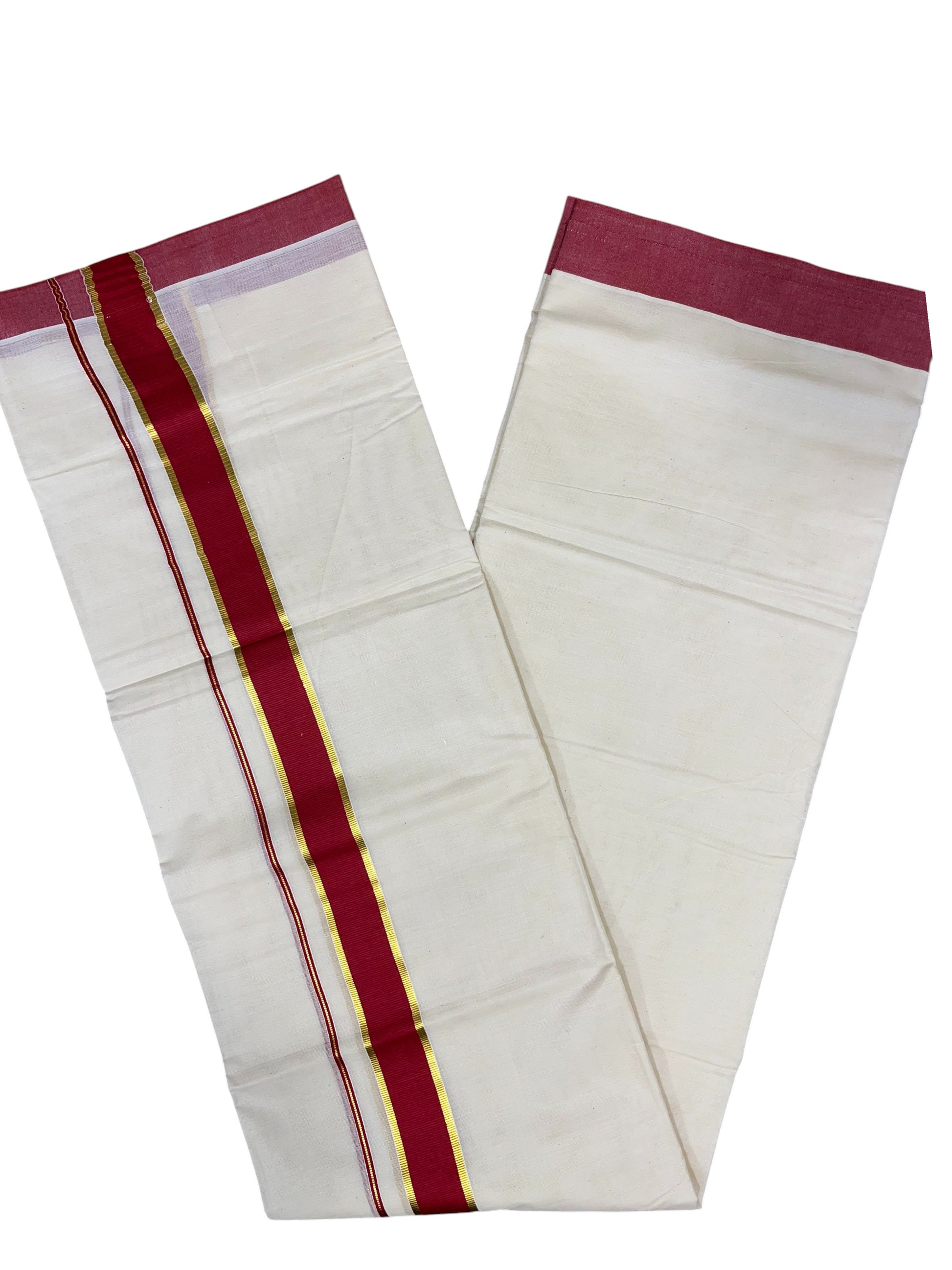 Southloom Pure Cotton Mundu with Gold Kasavu and Red Colour Border (South Indian Kerala Dhoti)