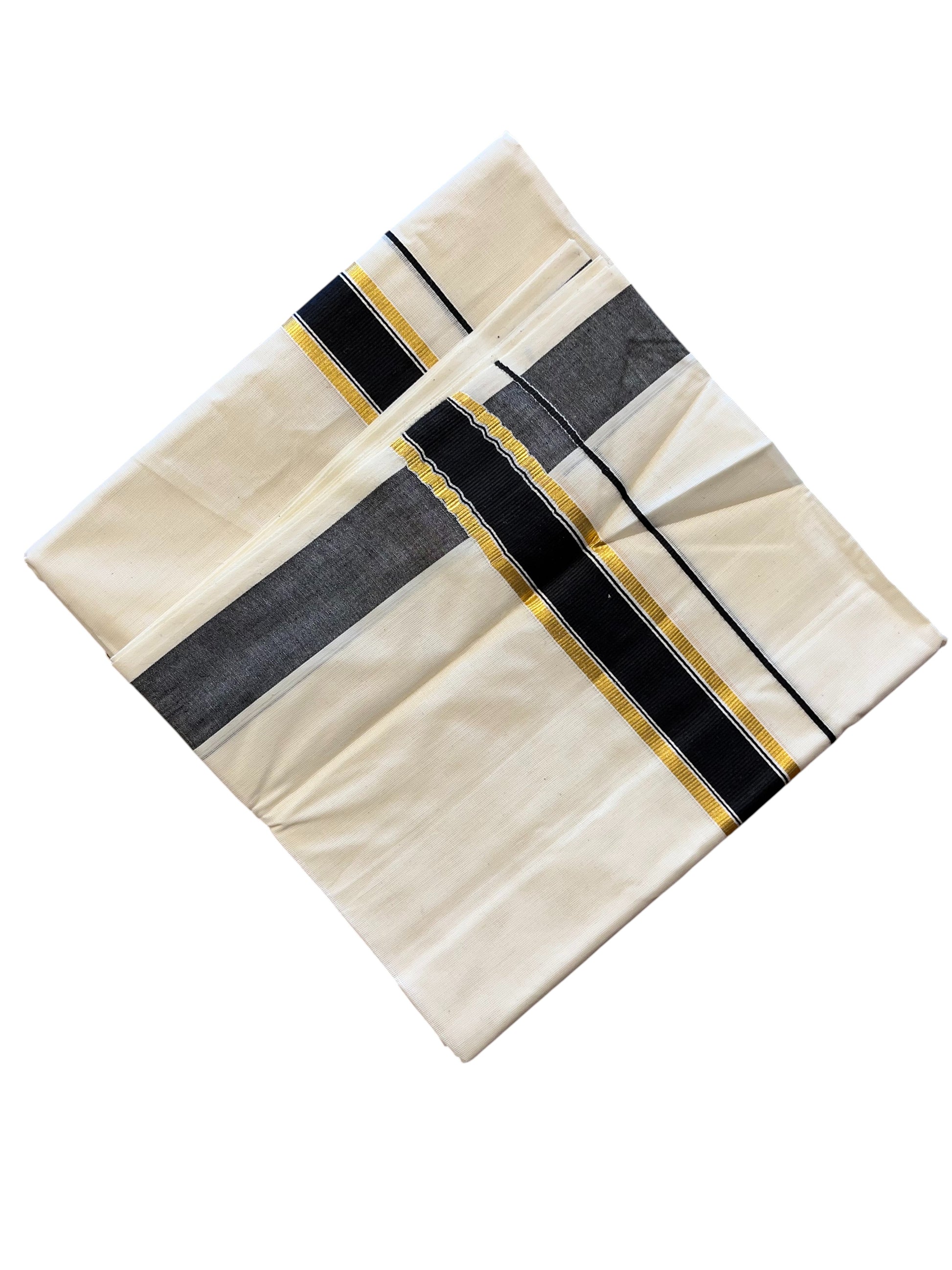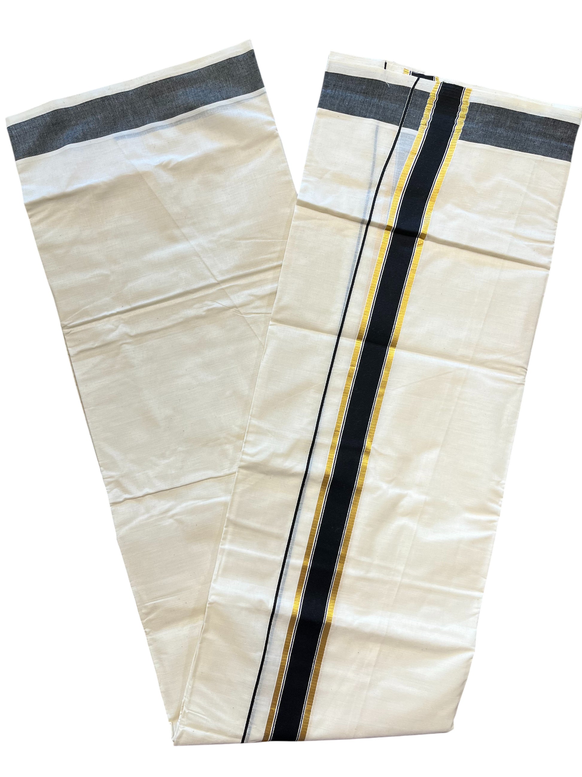 Southloom Pure Cotton Mundu with Gold Kasavu and Black Colour Border (South Indian Kerala Dhoti)