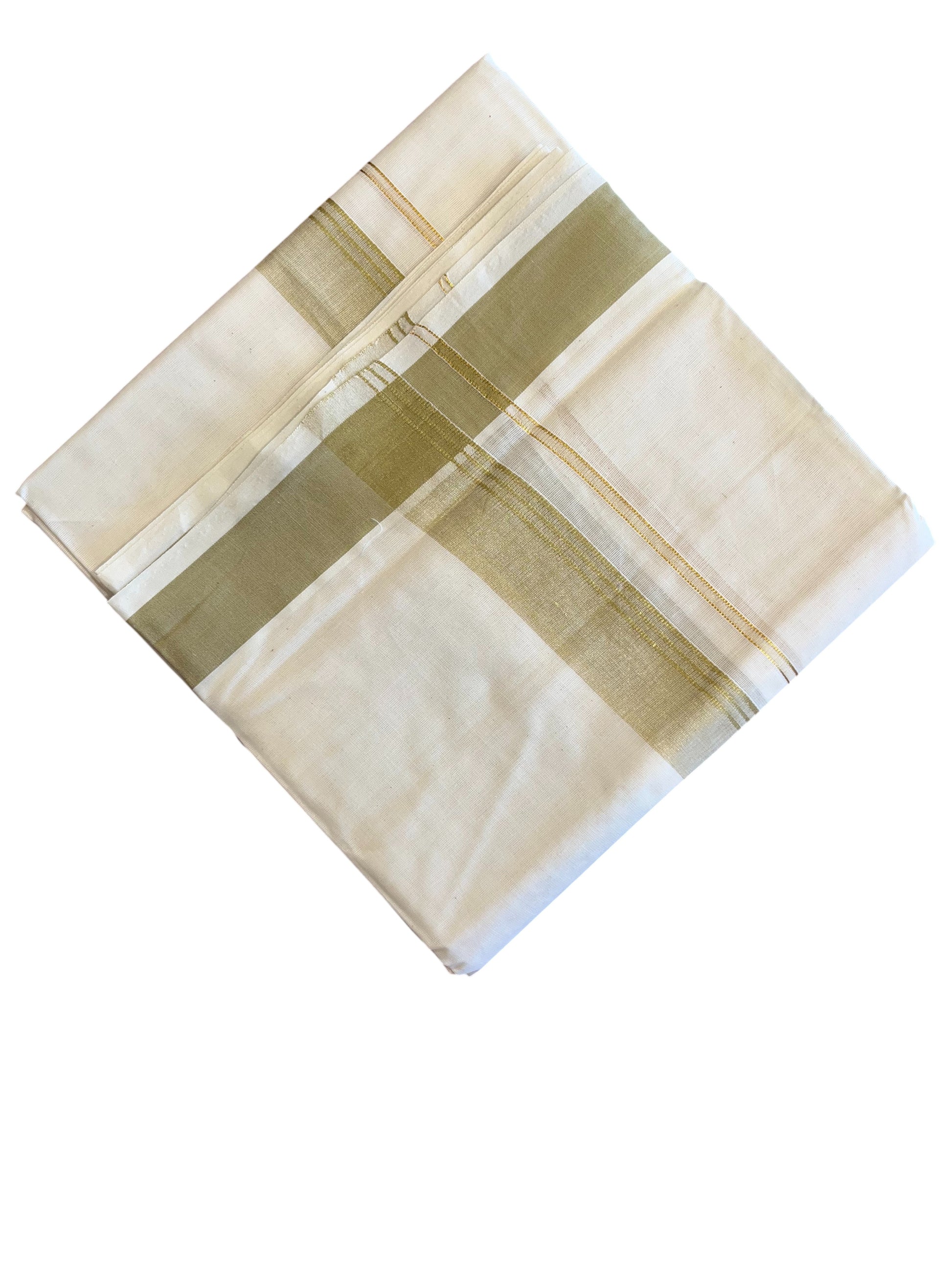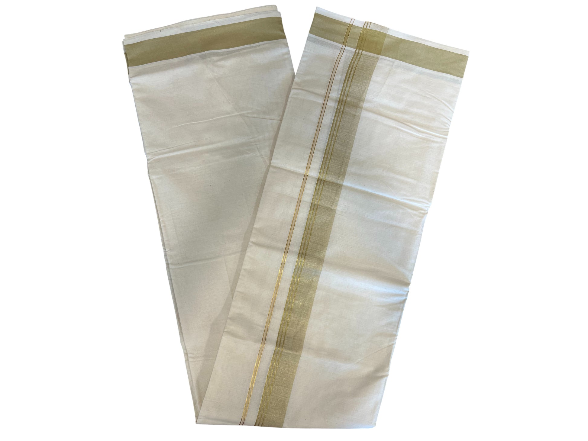 Southloom Pure Cotton Mundu with Beige Lines and Beige Border (South Indian Kerala Dhoti)