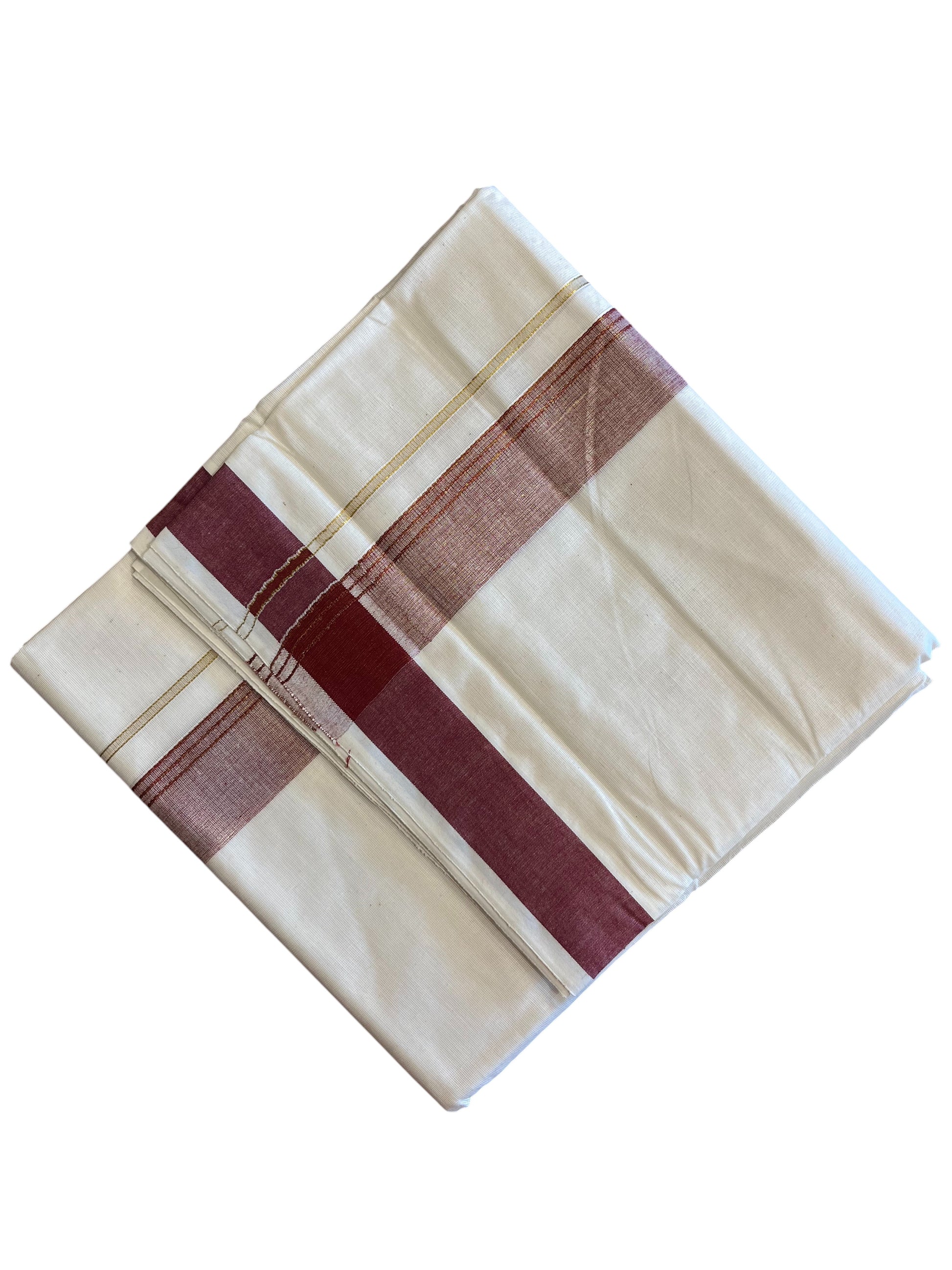 Southloom Pure Cotton Mundu with Maroon Lines and Maroon Border (South Indian Kerala Dhoti)