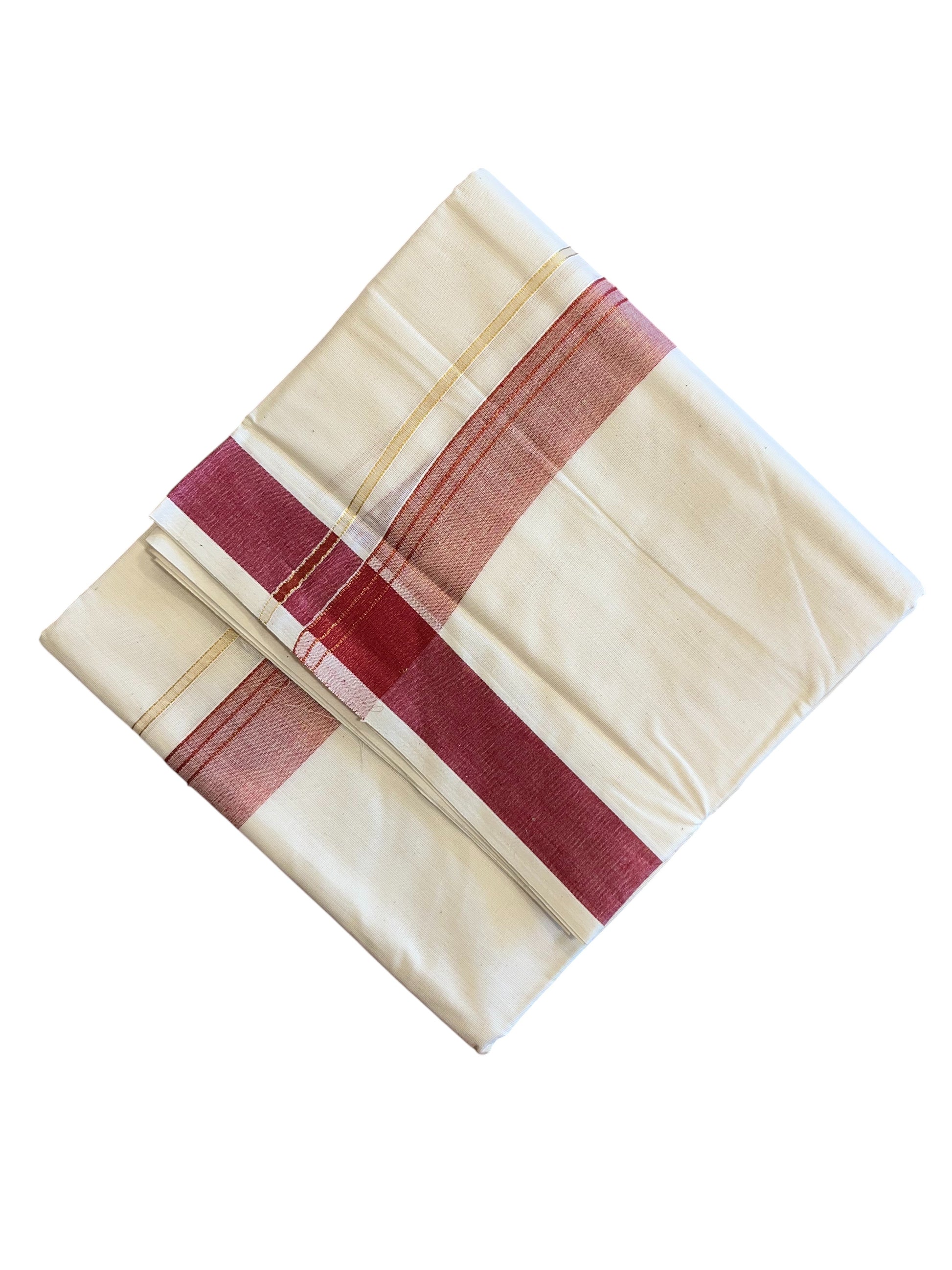 Southloom Pure Cotton Mundu with Red Lines and Red Border (South Indian Kerala Dhoti)