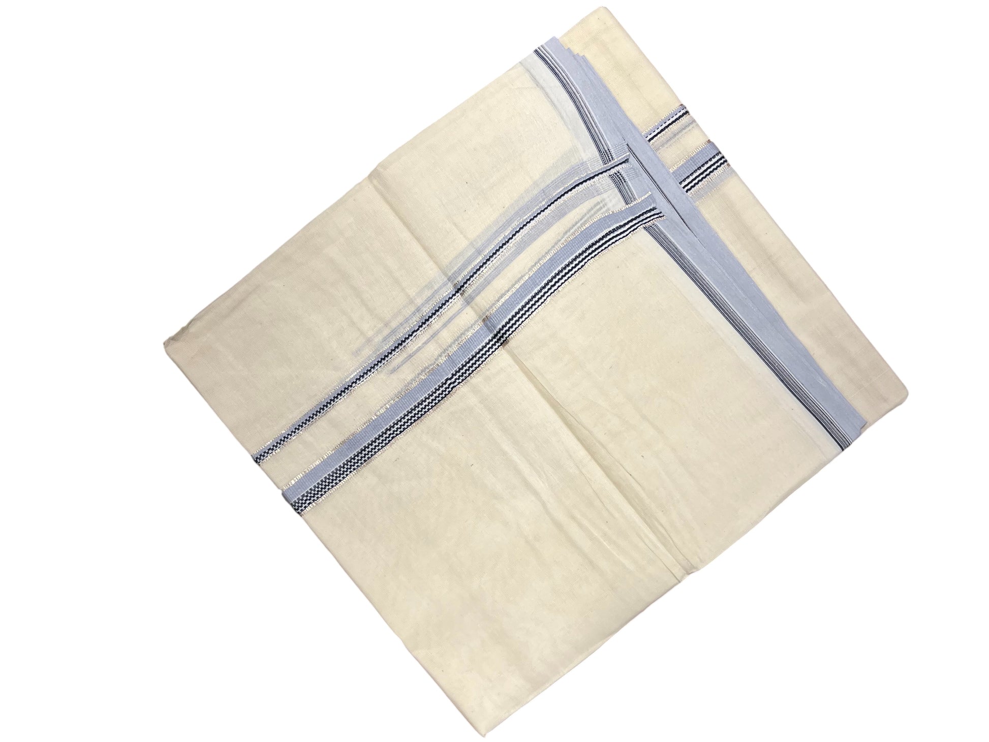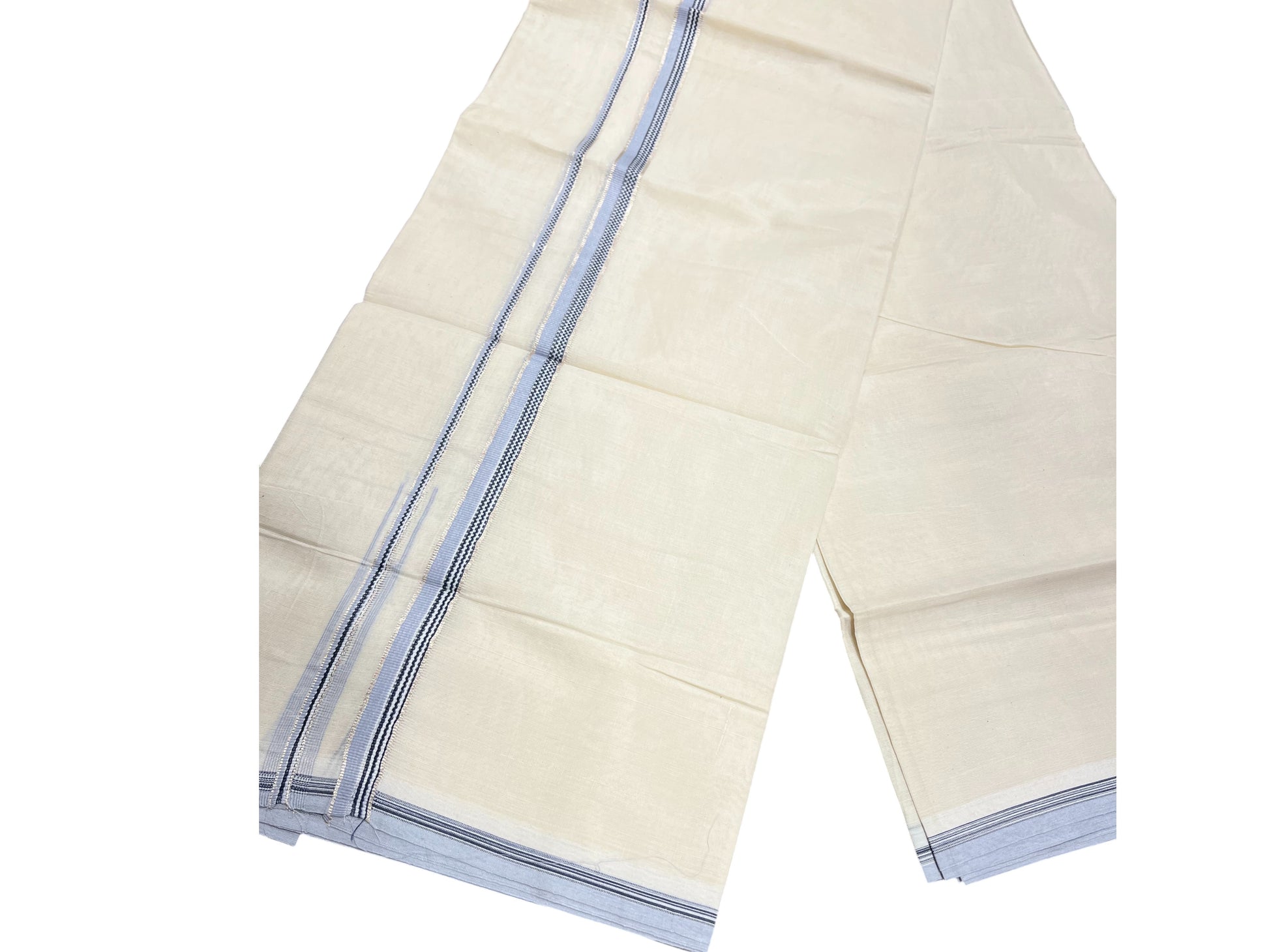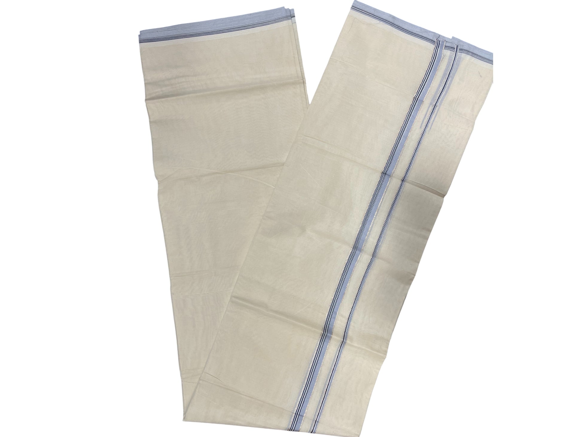 Southloom Pure Cotton Mundu with silver and Light Blue Border (South Indian Kerala Dhoti)
