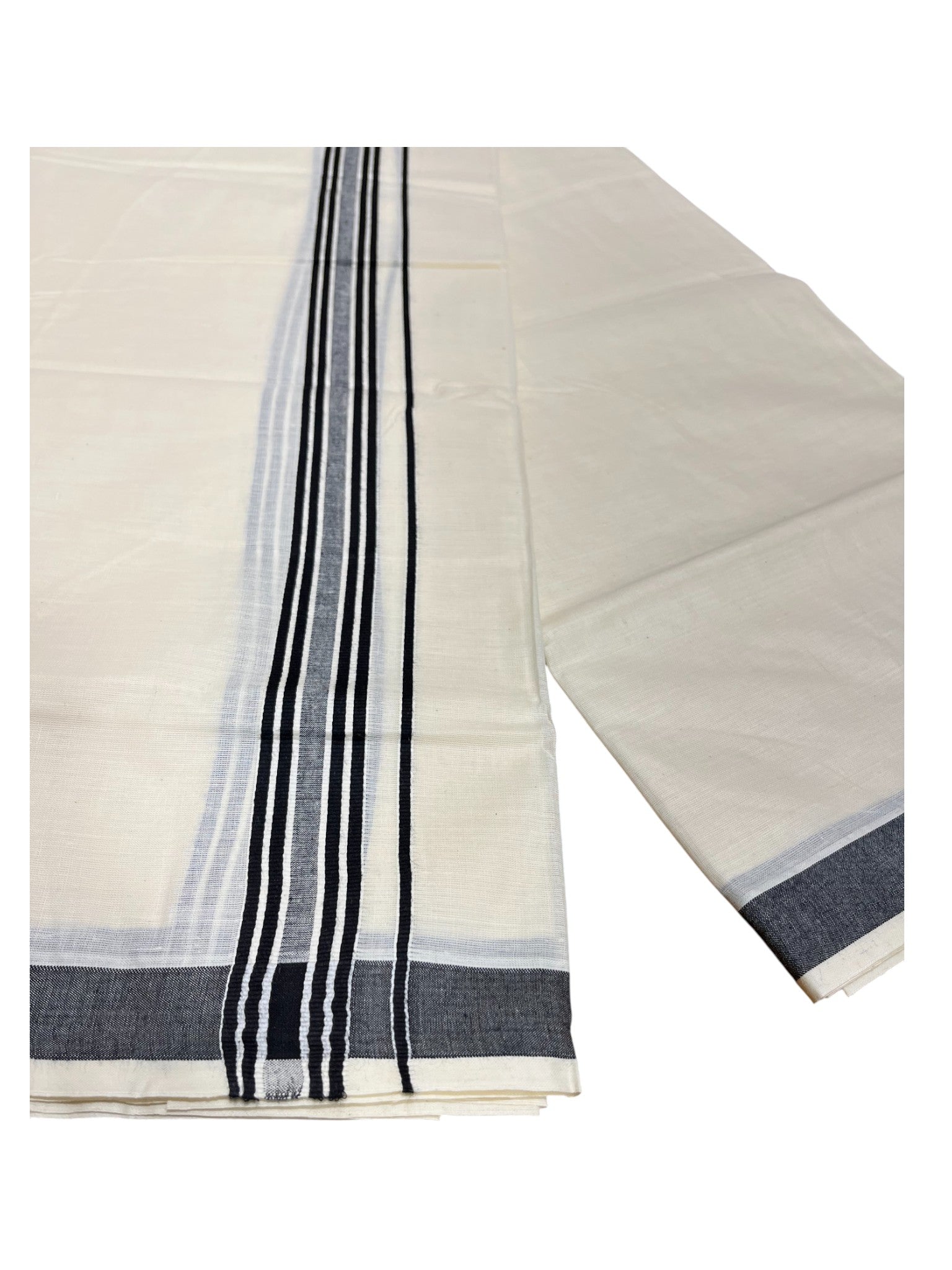 Southloom Pure Cotton Double Mundu With White Lines & Black Border (South Indian Kerala Dhoti)