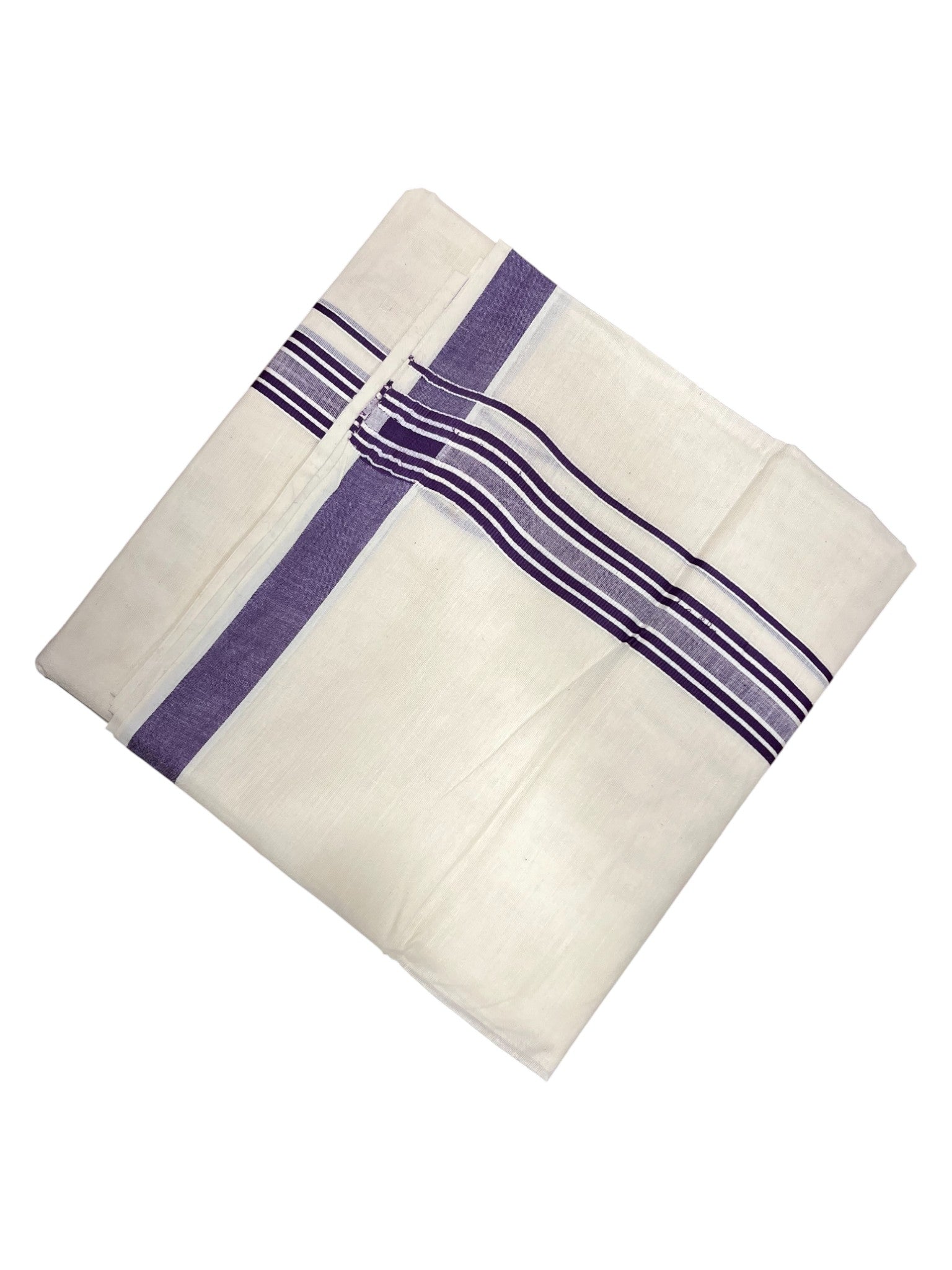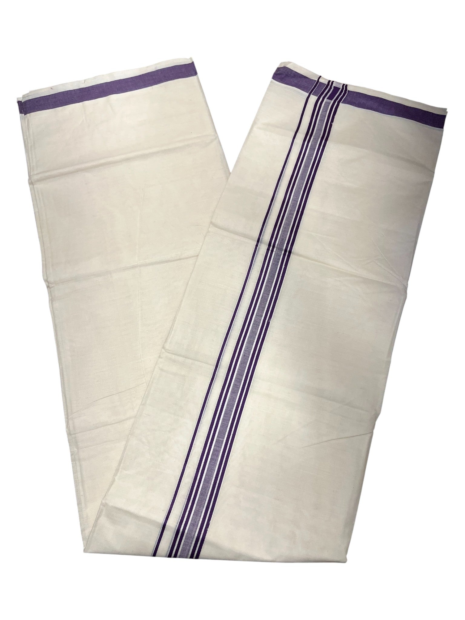 Southloom Pure Cotton Double Mundu With White Lines &Violet Border (South Indian Kerala Dhoti)