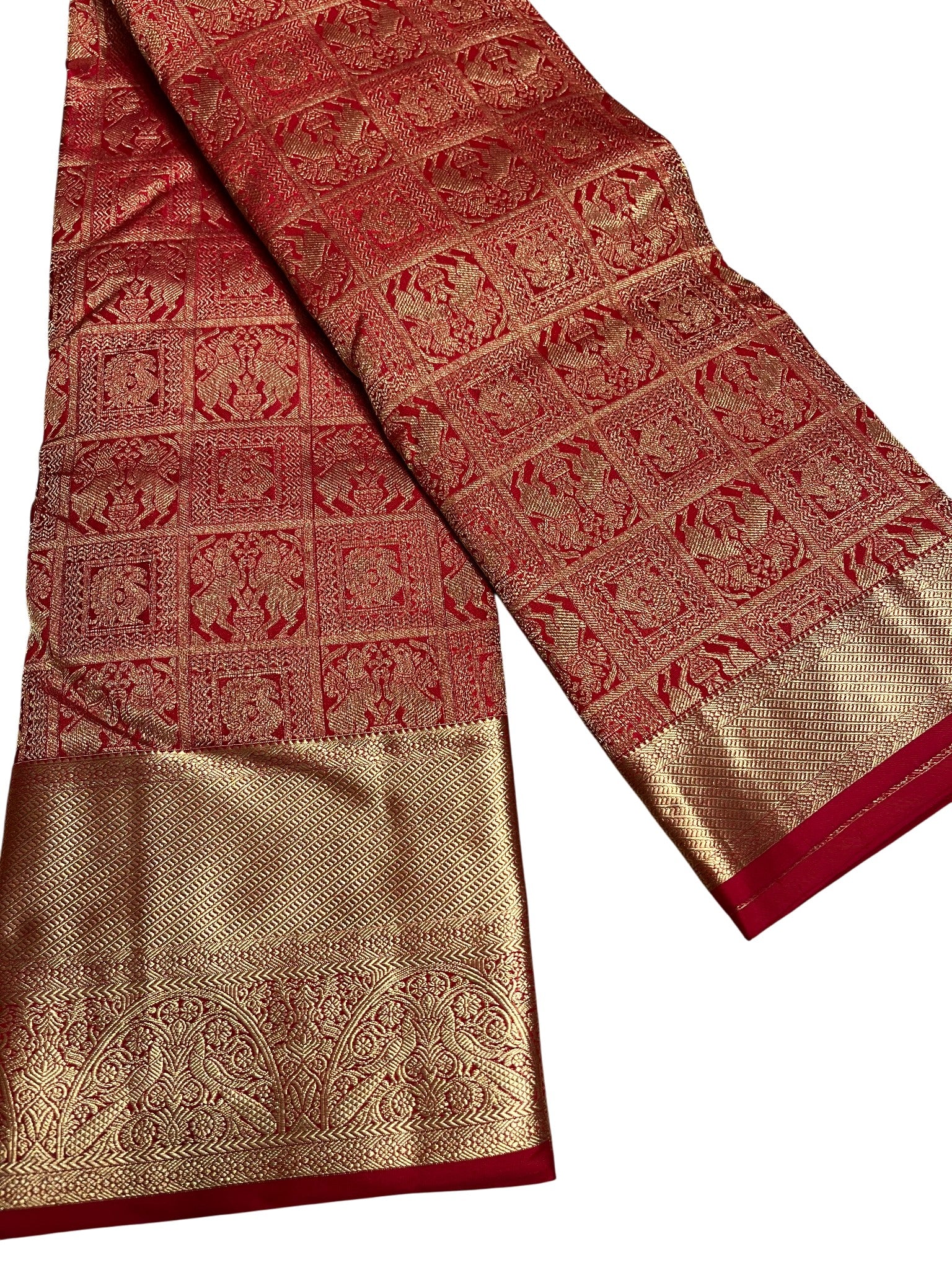 Material: 100% Pure Kanchipuram Silk with a lustrous finish