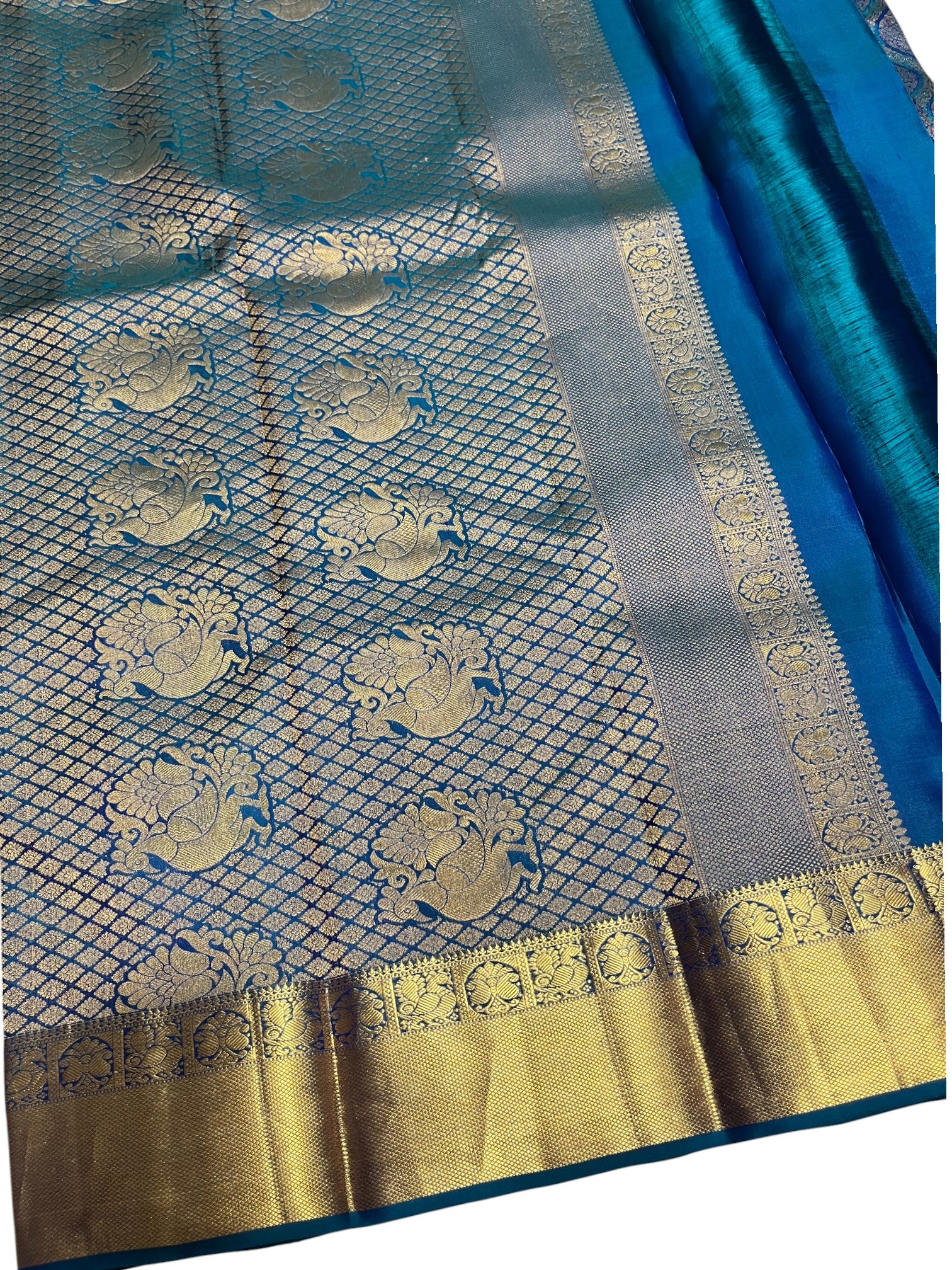 Southloom Pure Handloom Bridal Kanchipuram Silk Saree with Korvai Work (Blue)
