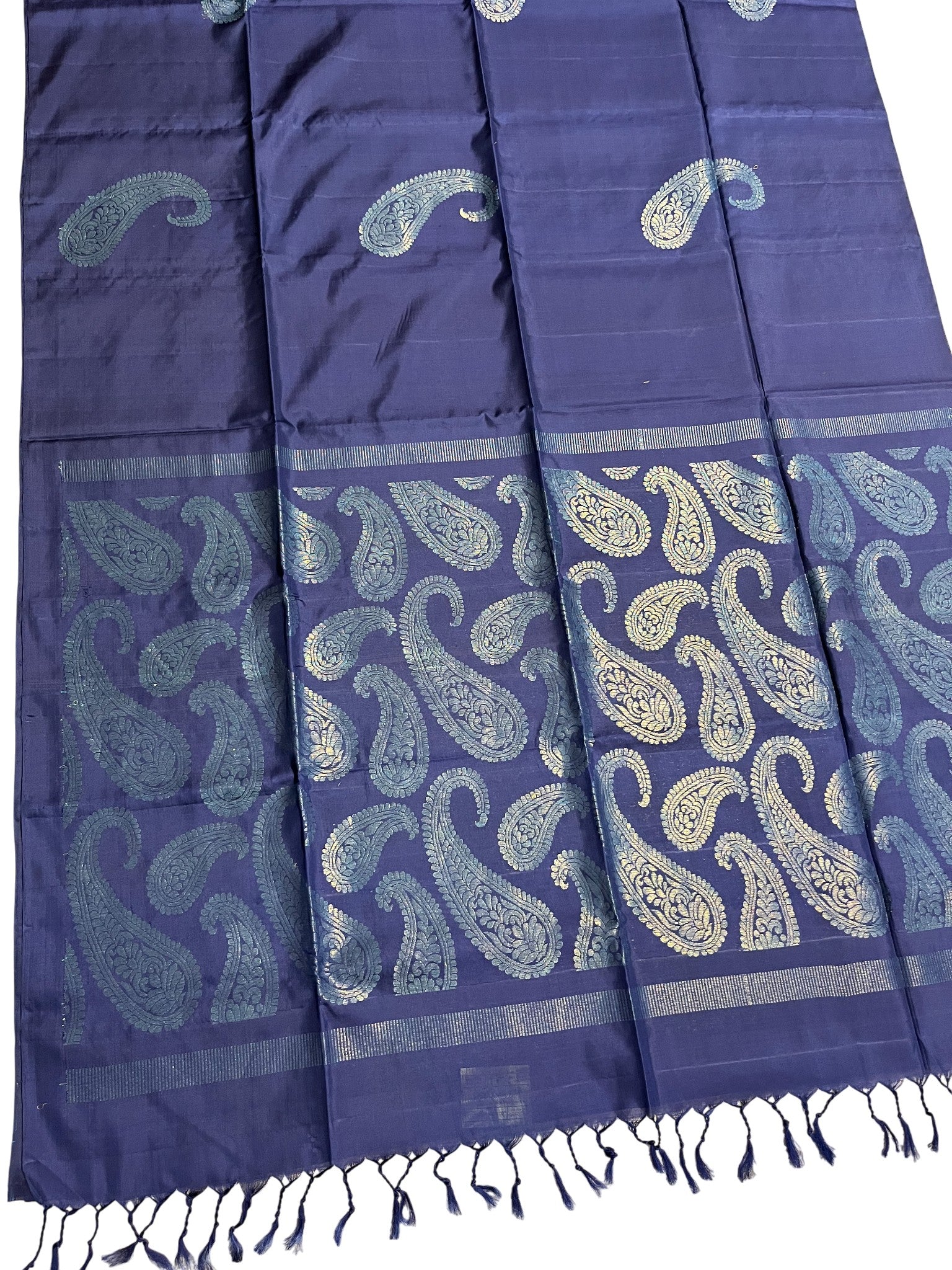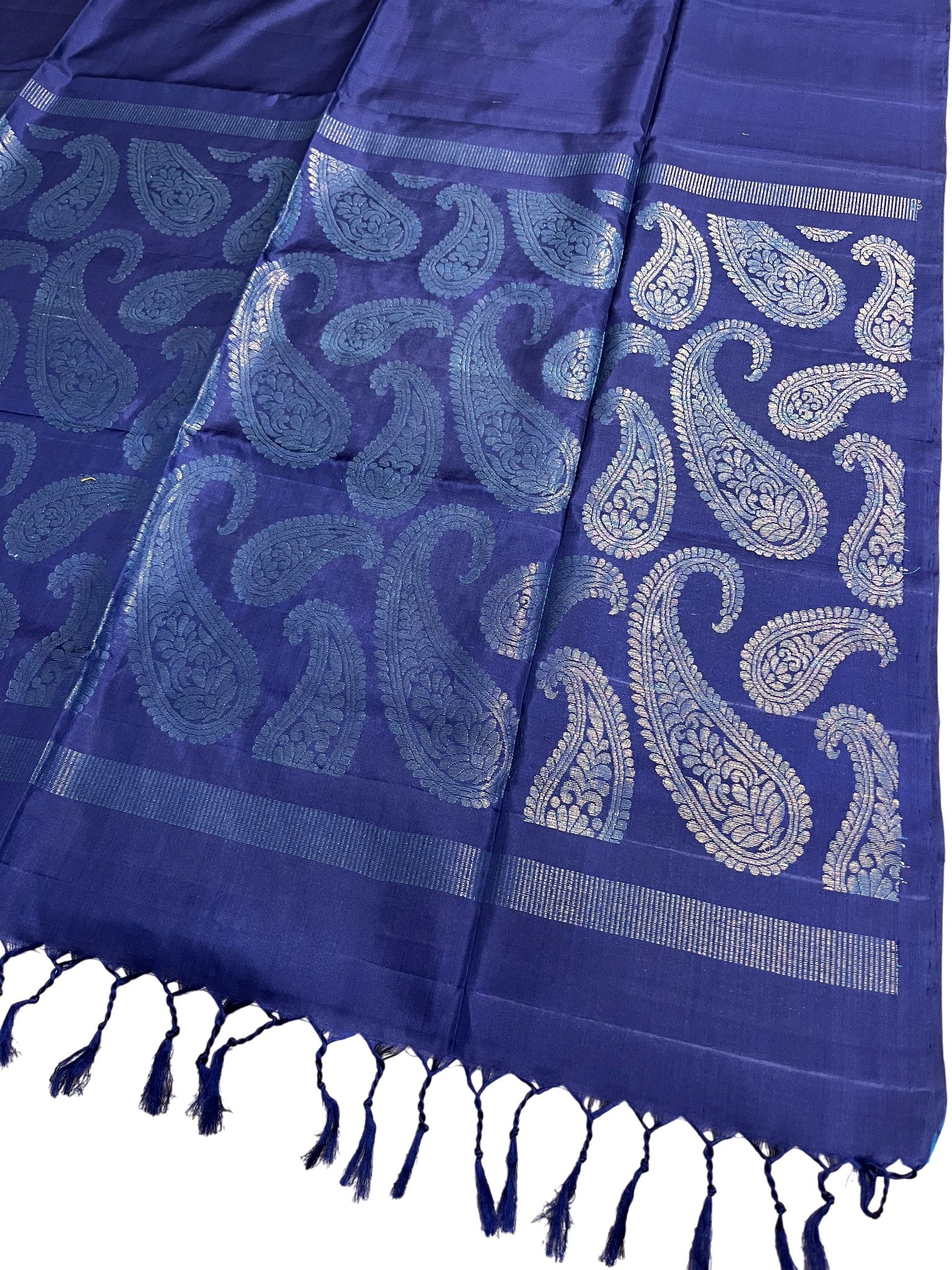 Southloom Pure Handloom Bridal Kanchipuram Silk Saree with Korvai Work (Blue)