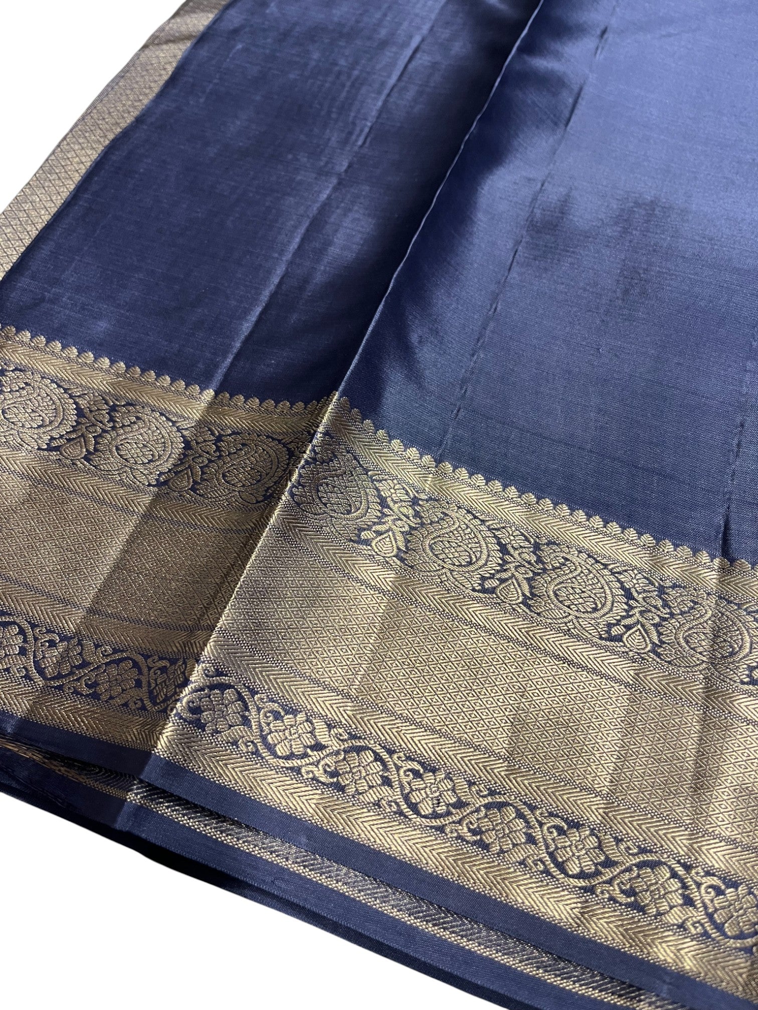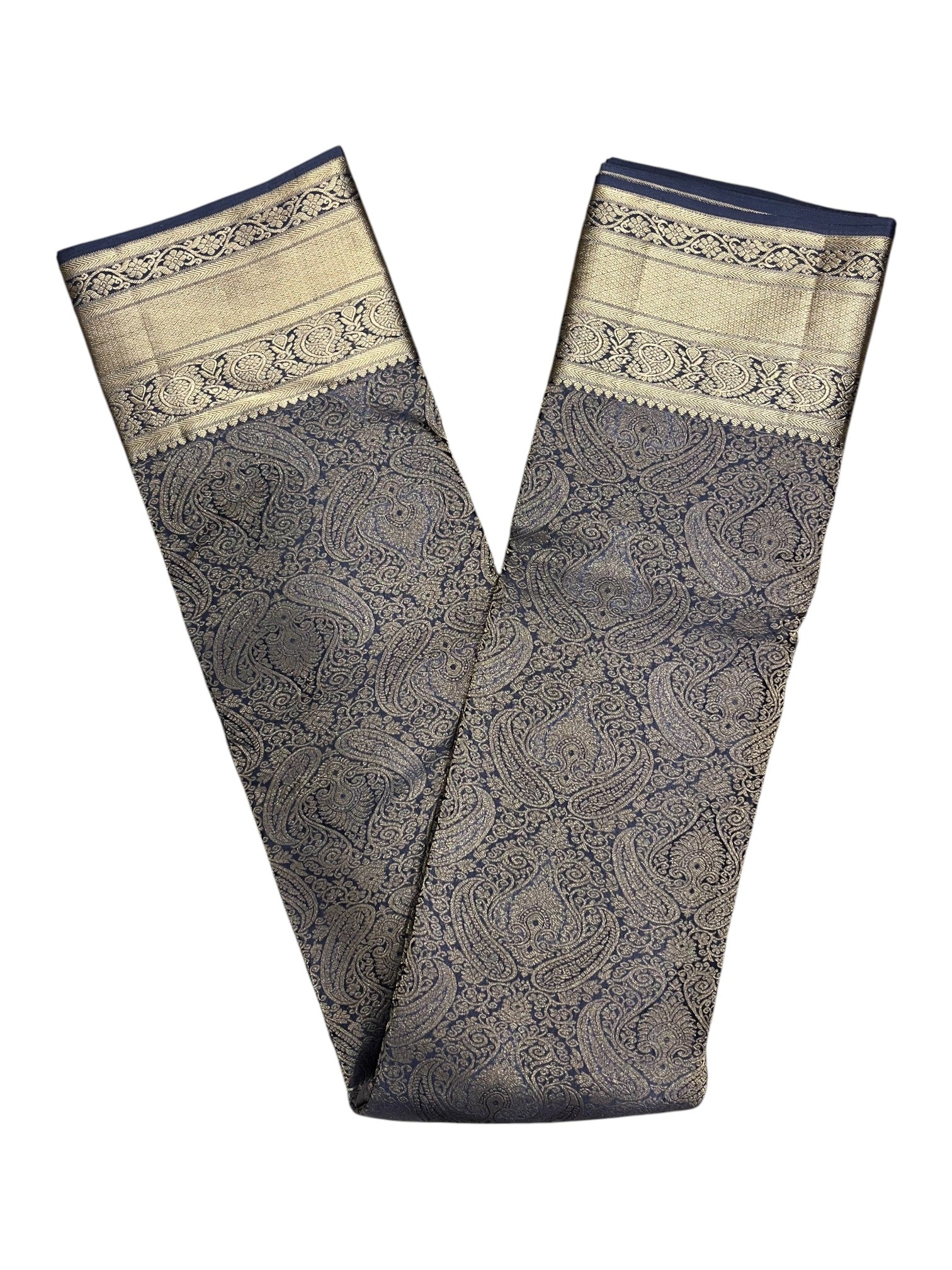 Southloom Pure Handloom Bridal Kanchipuram Silk Saree with Korvai Work (Blue)