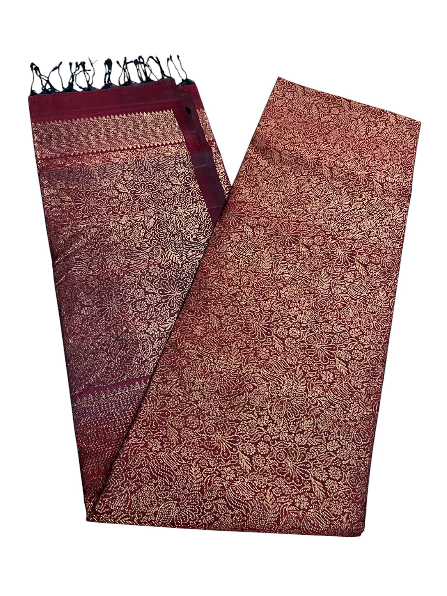 Southloom Pure Handloom Bridal Kanchipuram Silk Saree with Korvai Work (Maroon)