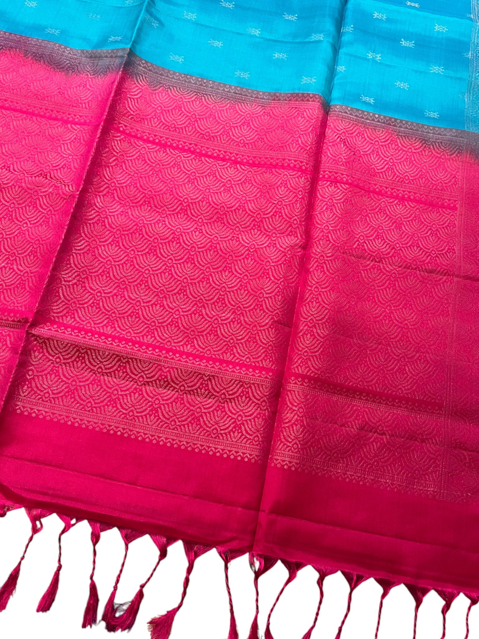 Southloom Pure Handloom Bridal Kanchipuram Silk Saree with Korvai Work (Blue & Magenta)