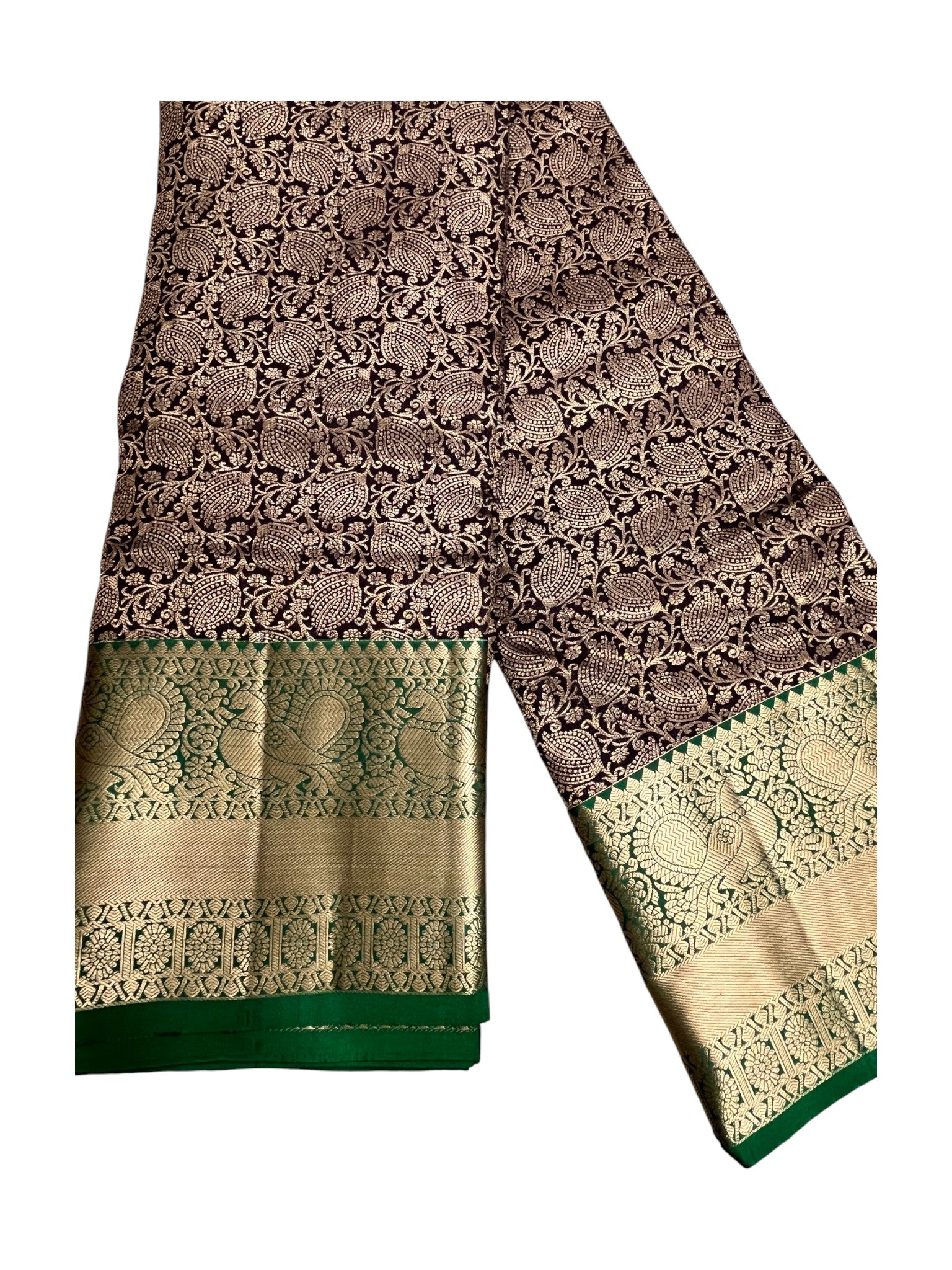 Southloom Pure Handloom Bridal Kanchipuram Silk Saree with Korvai Work (Brown & Green)
