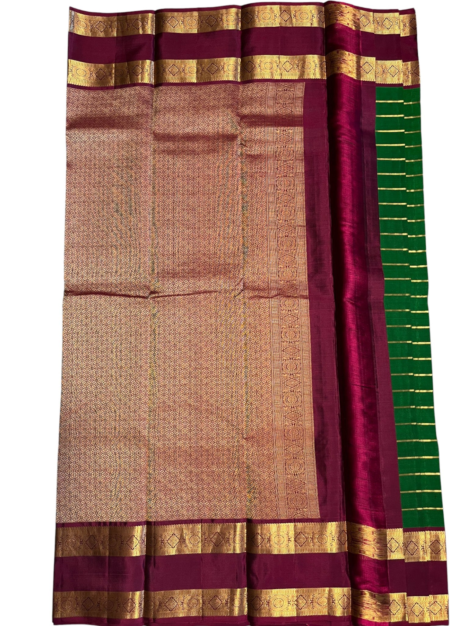 Southloom Pure Handloom Bridal Kanchipuram Silk Saree with Korvai Work (Green &Maroon)