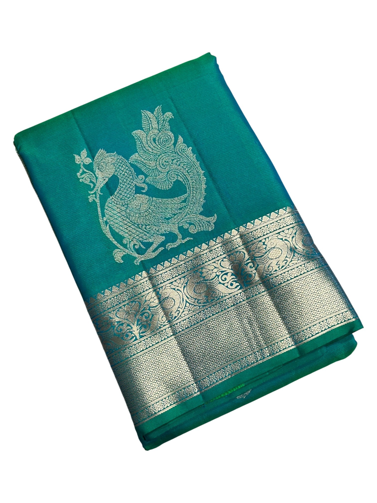 Southloom Pure Handloom Bridal Kanchipuram Silk Saree with Korvai Work (Green & Blue)