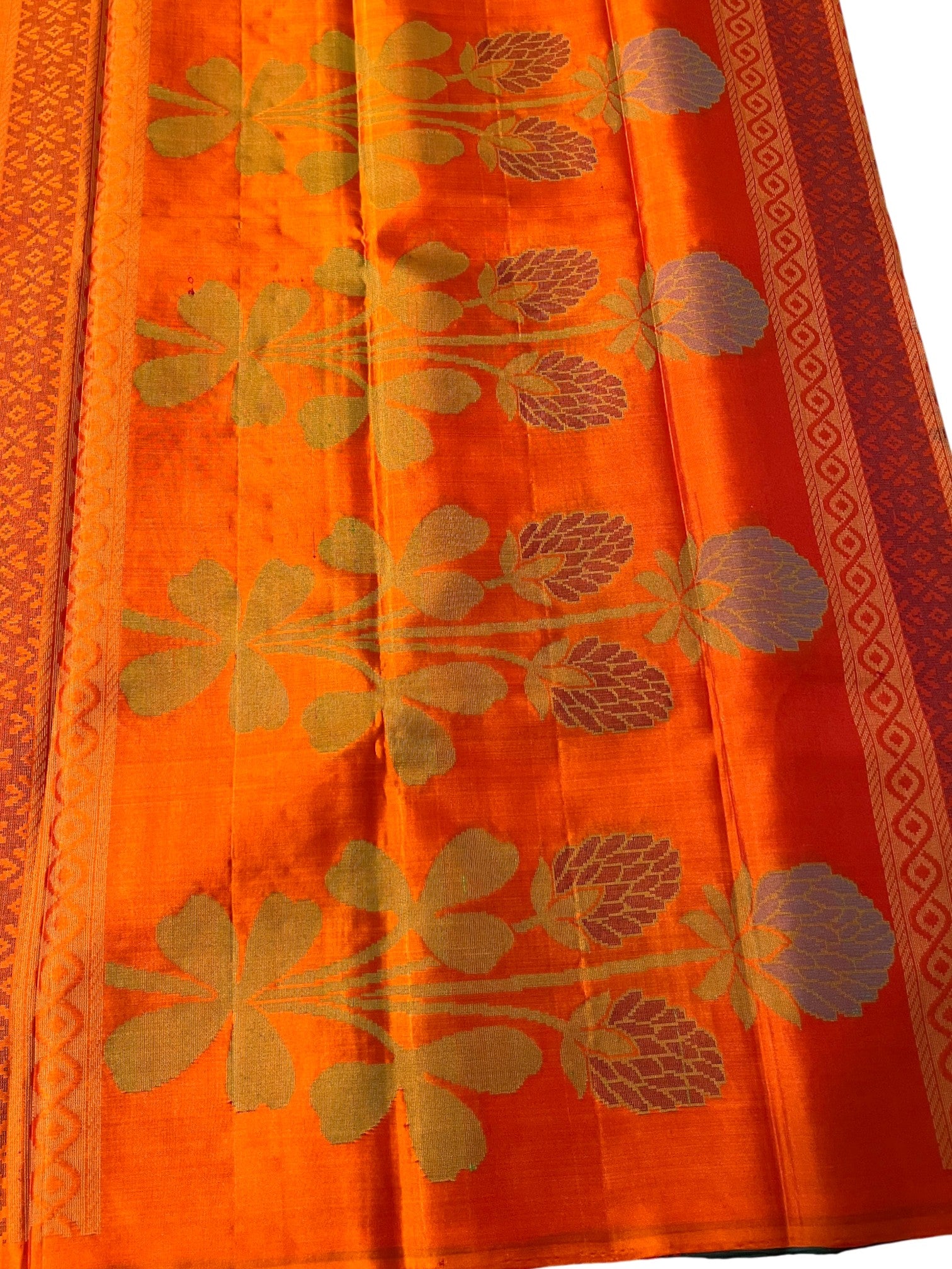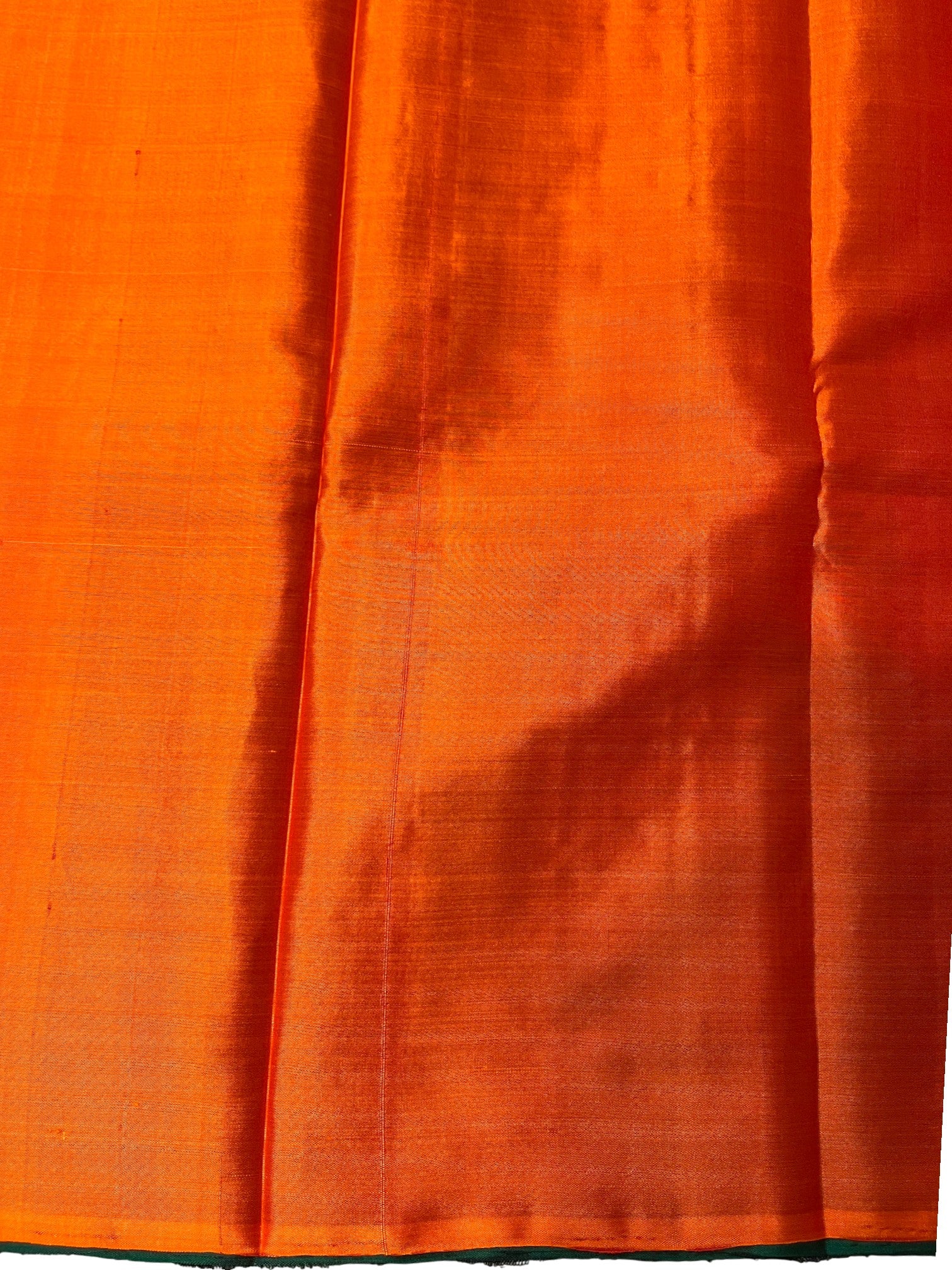 Southloom Pure Handloom Bridal Kanchipuram Silk Saree with Korvai Work (Green & Orange)