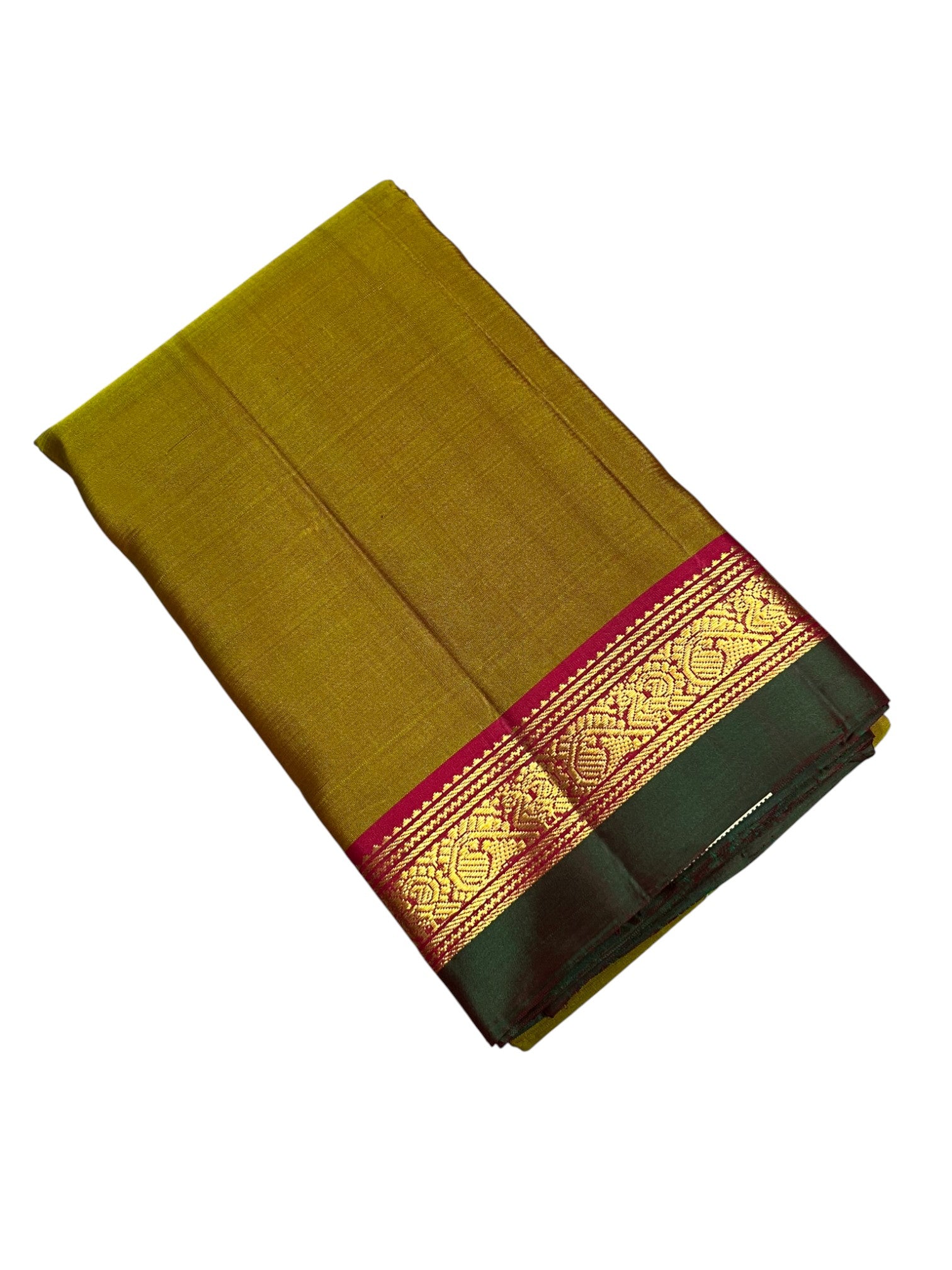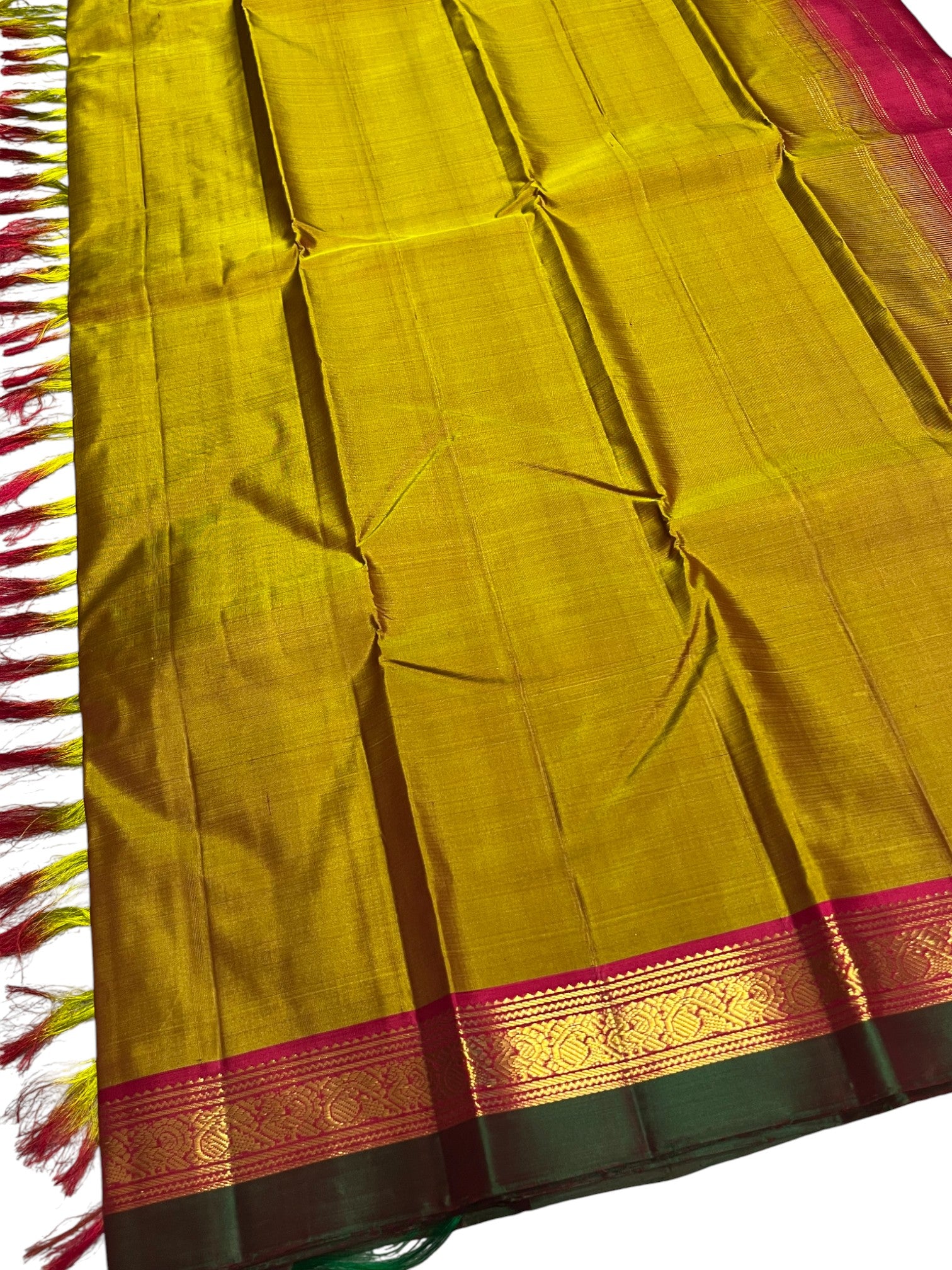 Southloom Pure Handloom Bridal Kanchipuram Silk Saree with Korvai Work (Green & Pink)