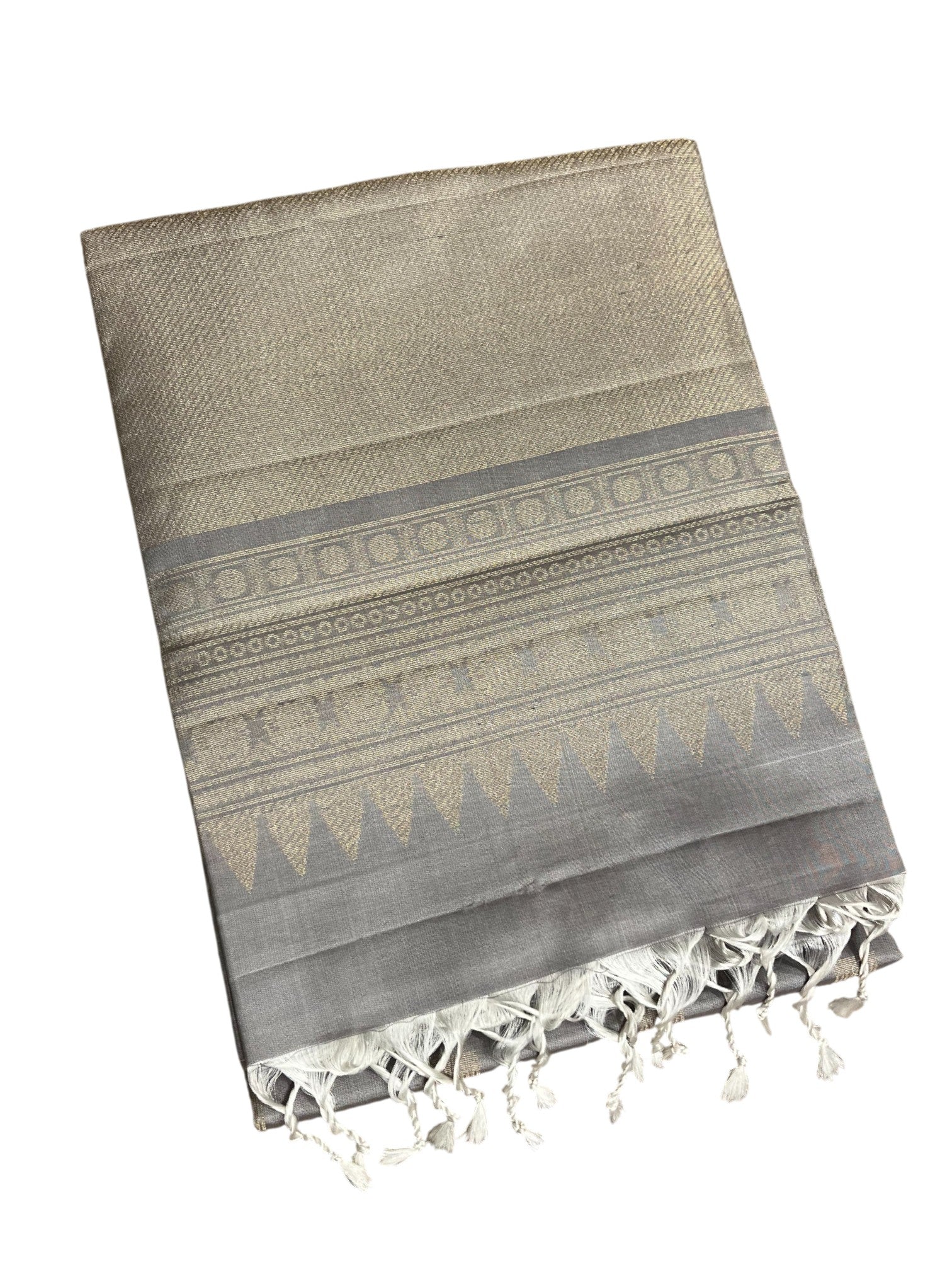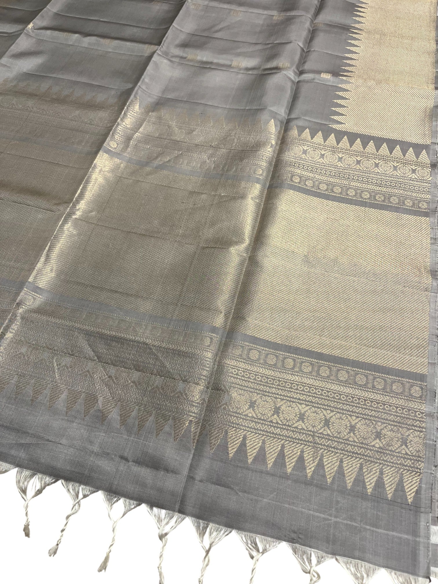 Southloom Pure Handloom Bridal Kanchipuram Silk Saree with Korvai Work (Grey)