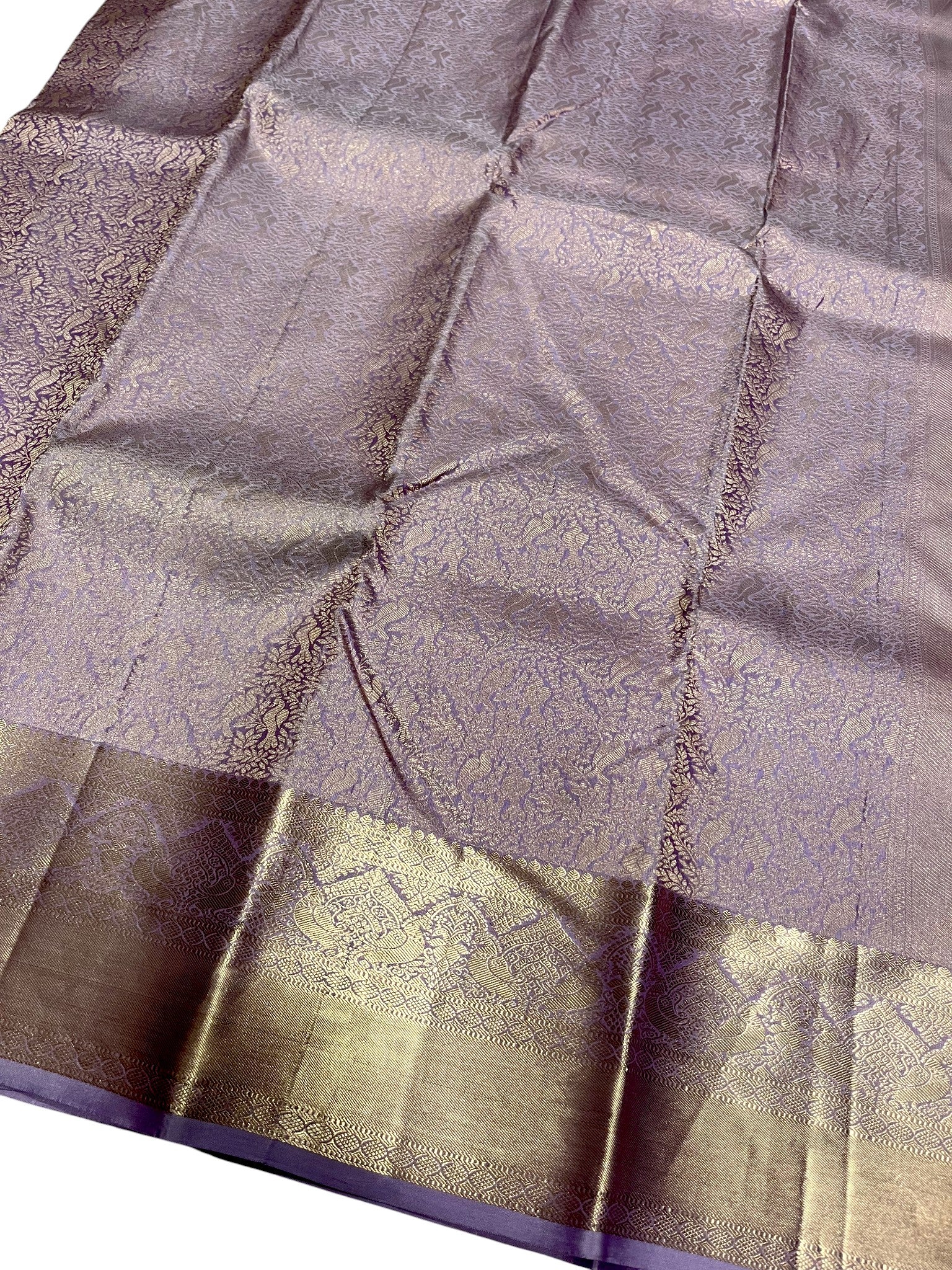 Southloom Pure Handloom Bridal Kanchipuram Silk Saree with Korvai Work (Lavendar)
