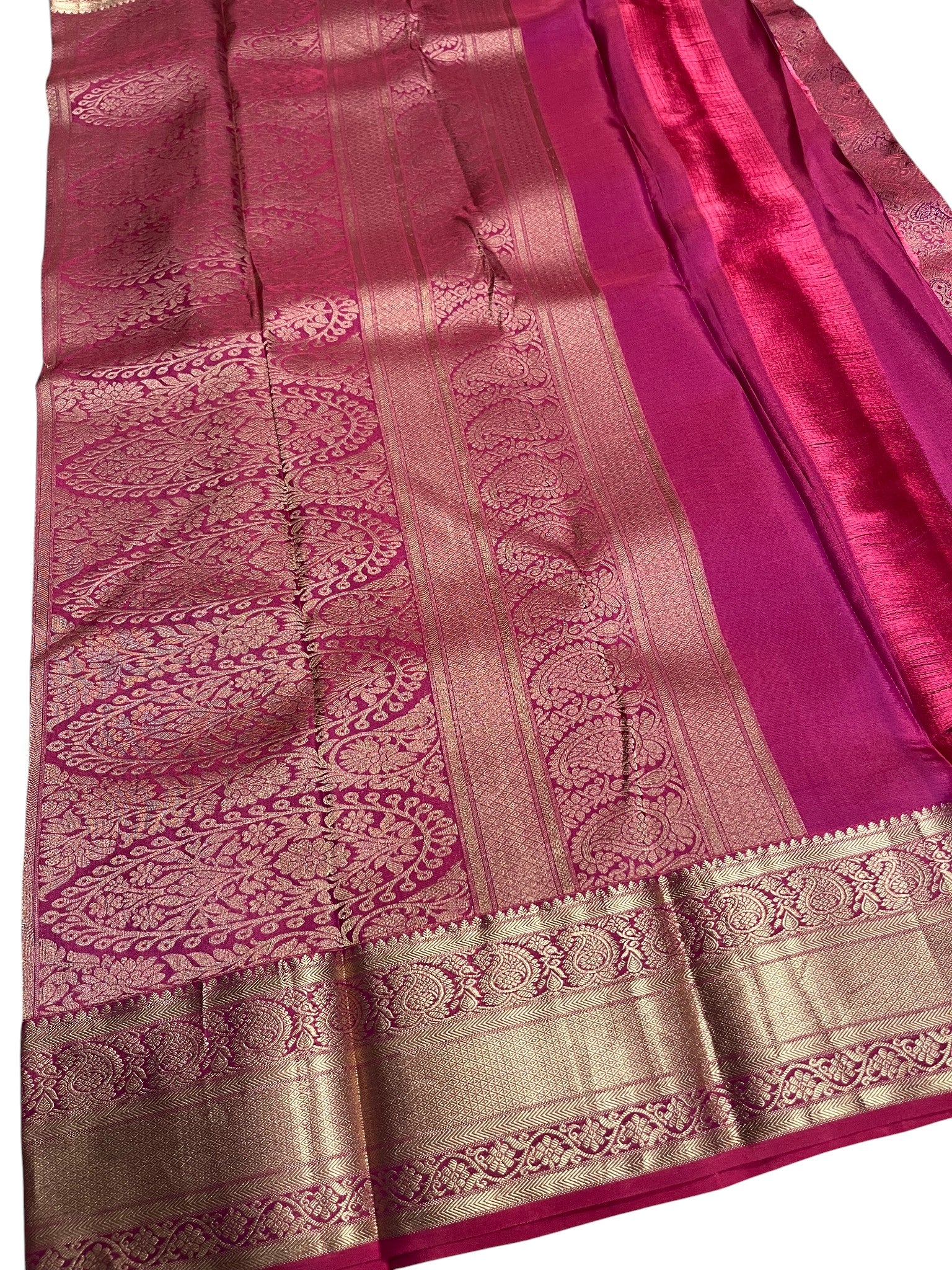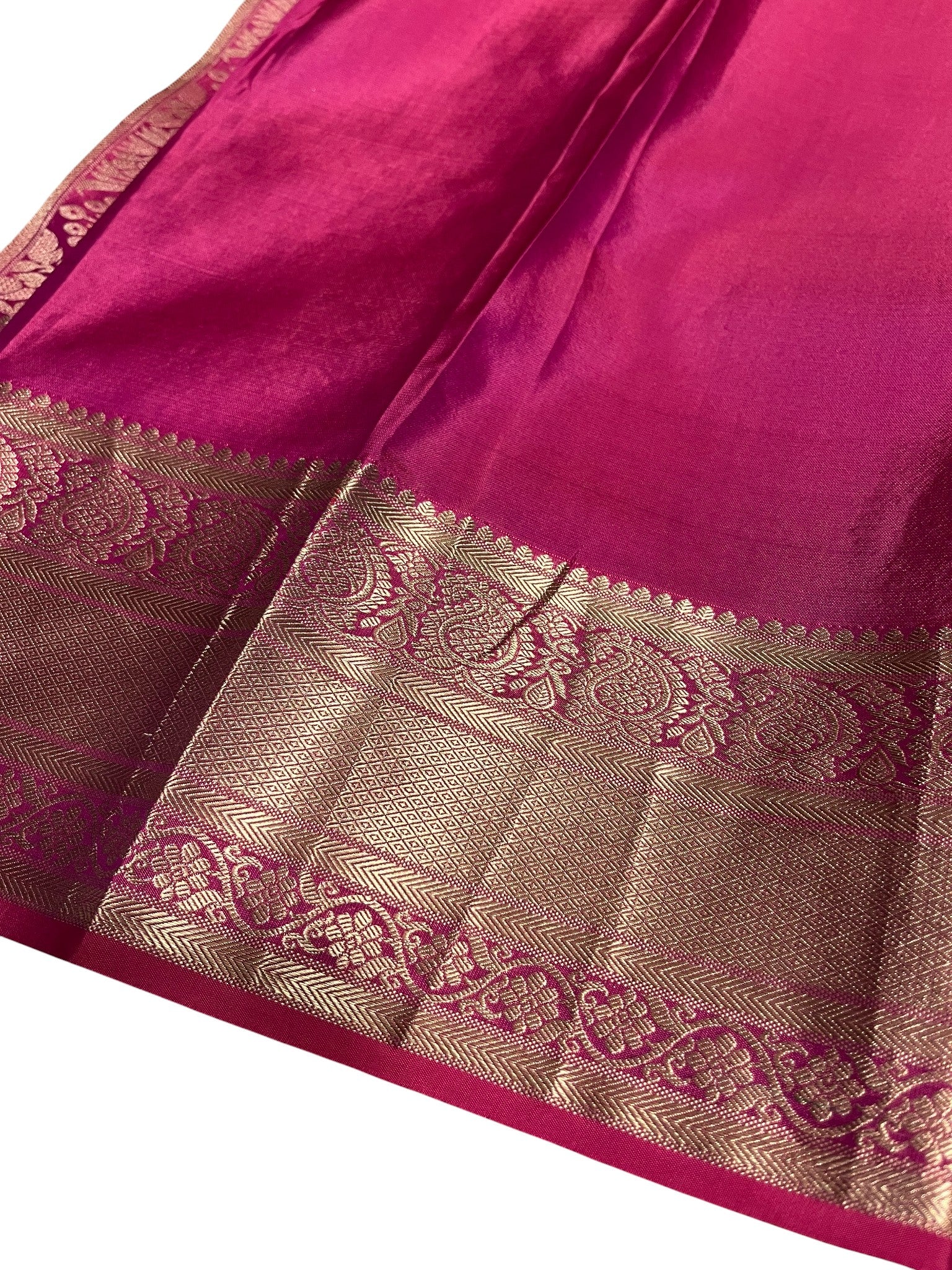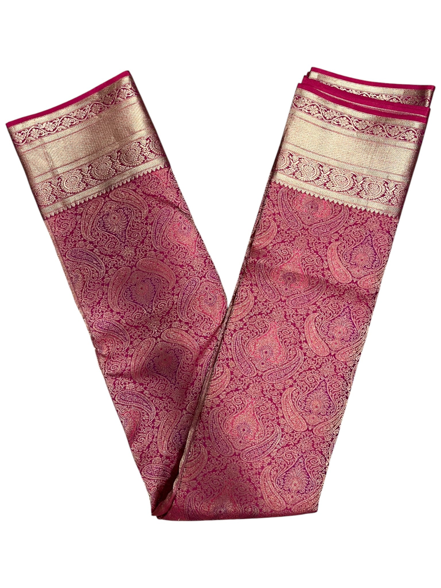 Southloom Pure Handloom Bridal Kanchipuram Silk Saree with Korvai Work (Magenta)