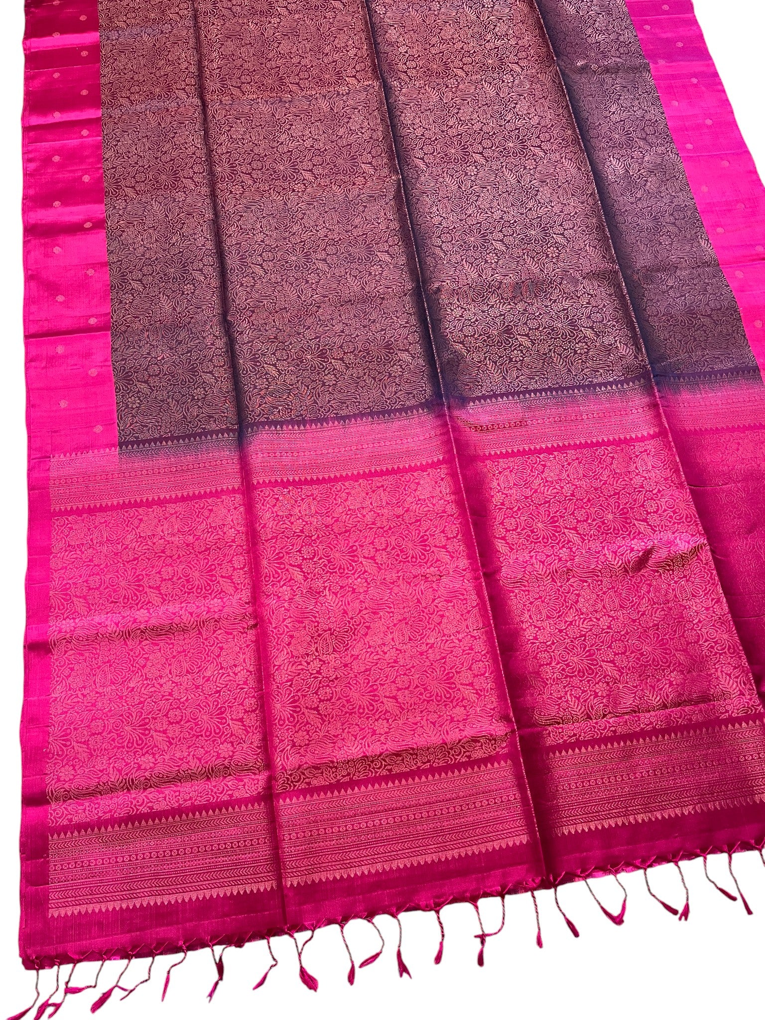 Southloom Pure Handloom Bridal Kanchipuram Silk Saree with Korvai Work (Magenta & Purple )