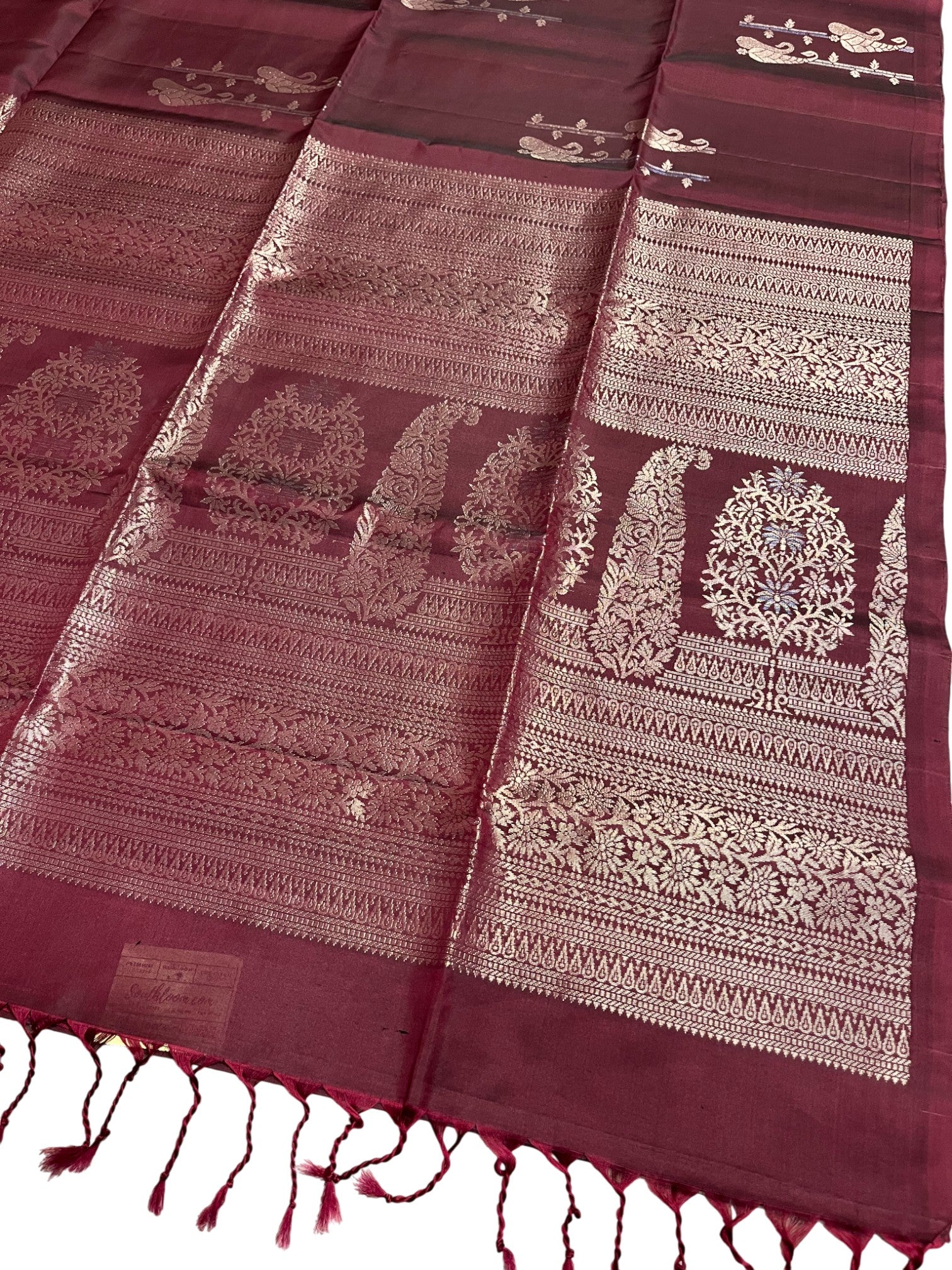 Southloom Pure Handloom Bridal Kanchipuram Silk Saree with Korvai Work (Maroon)