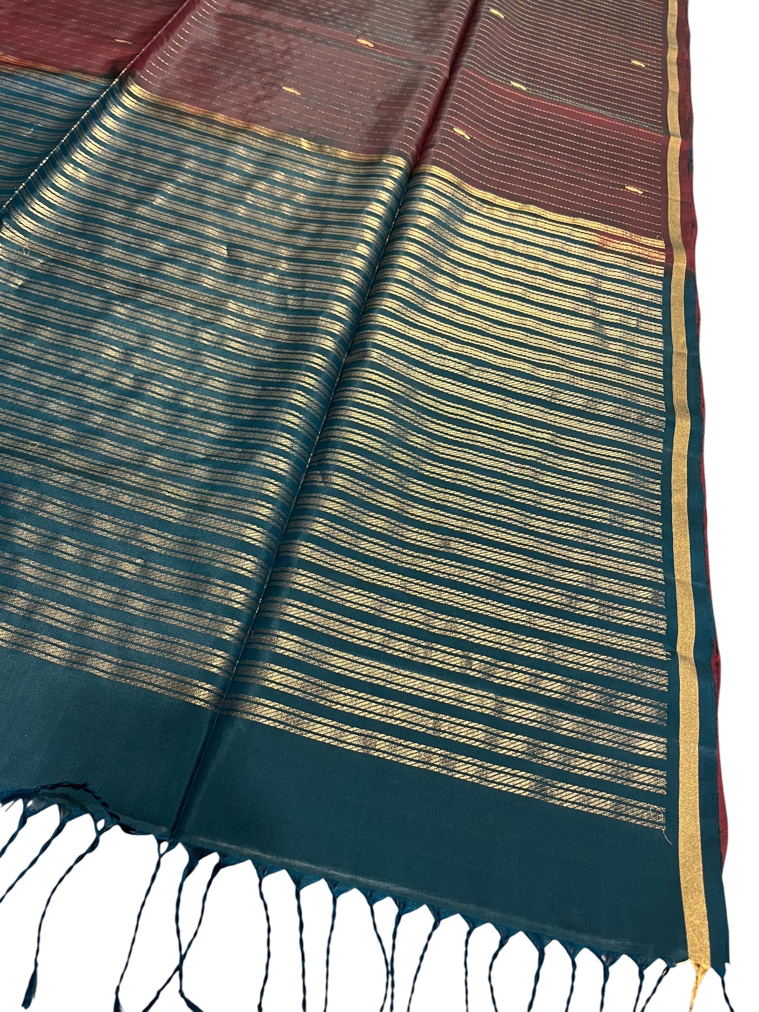 Southloom Pure Handloom Bridal Kanchipuram Silk Saree with Korvai Work (Maroon & Blue)